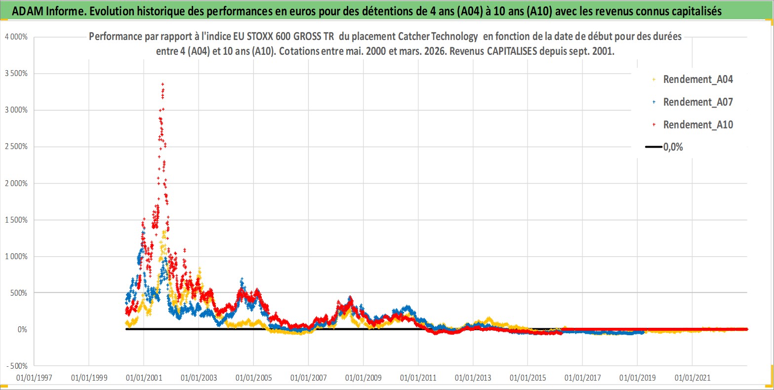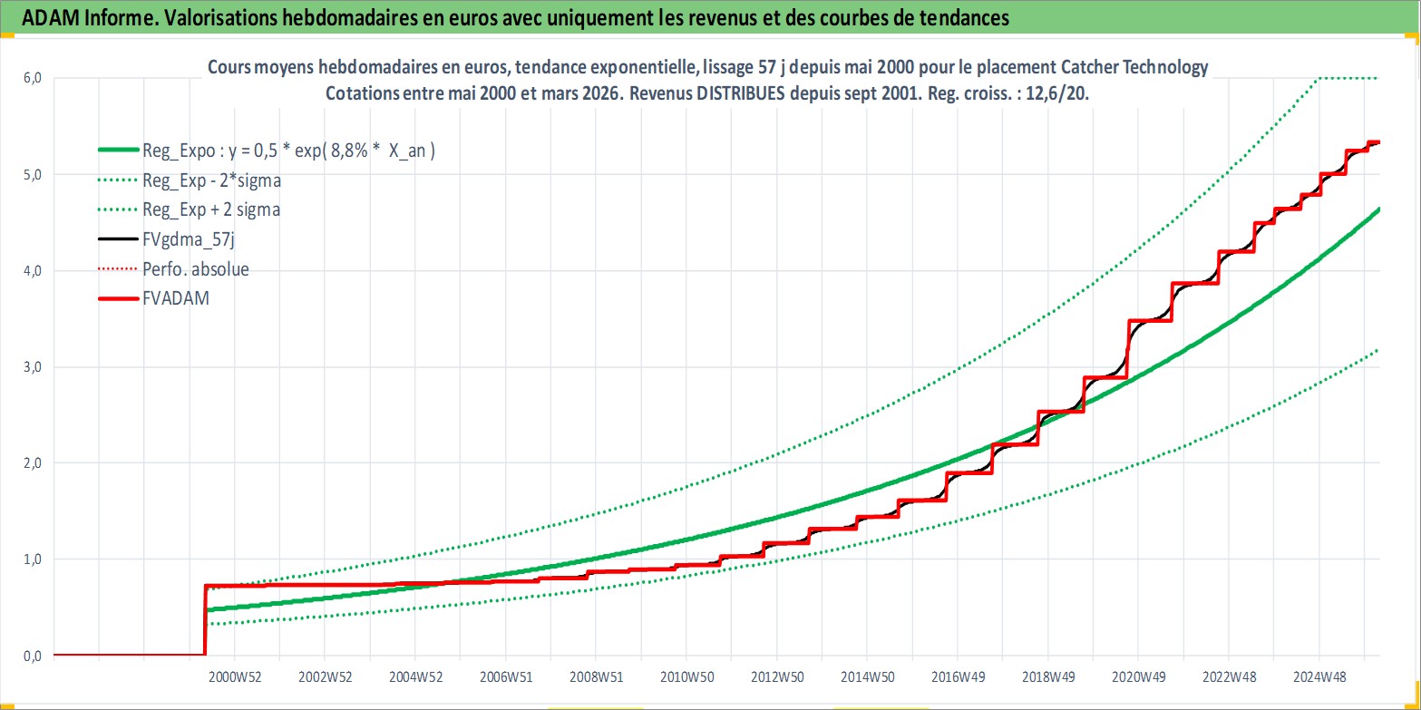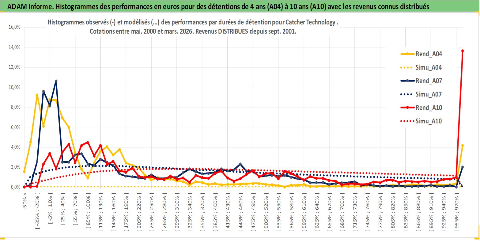 Site dédié aux investisseursPage dédiée sur site financeAnalyse des valorisations hebdomadaires de l'action Catcher Technology . Cet actif est cote en TWD. Les valorisations sont en contrevaleur EURO et couvrent les semaines 2000W18 a 2026W13. Les revenus de cet actif financier sont pris en compte depuis la semaine 2001W36. La note globale ESG de cet actif est estimee a 12.0 (apres rebasage entre 0 et 20).