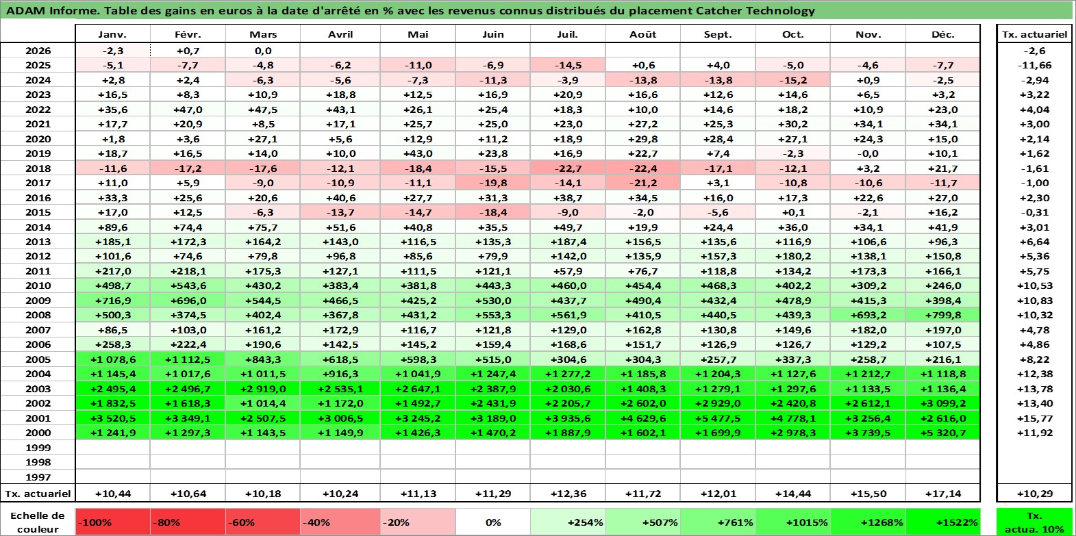 Dernière perfo 10 ans en %