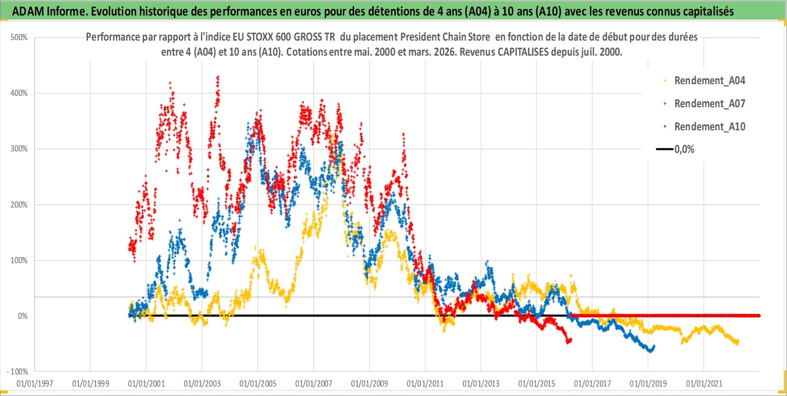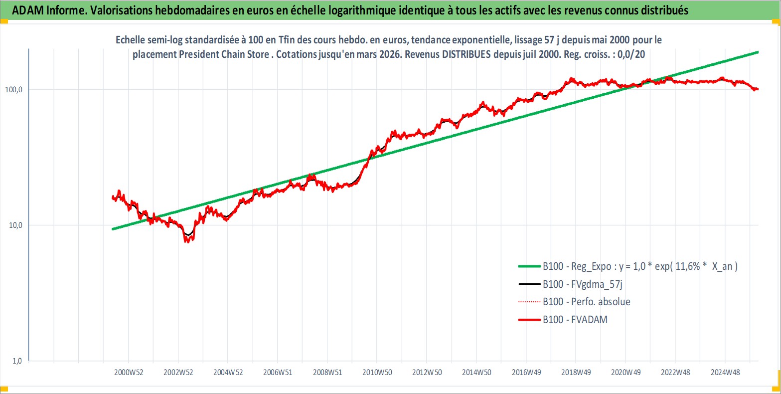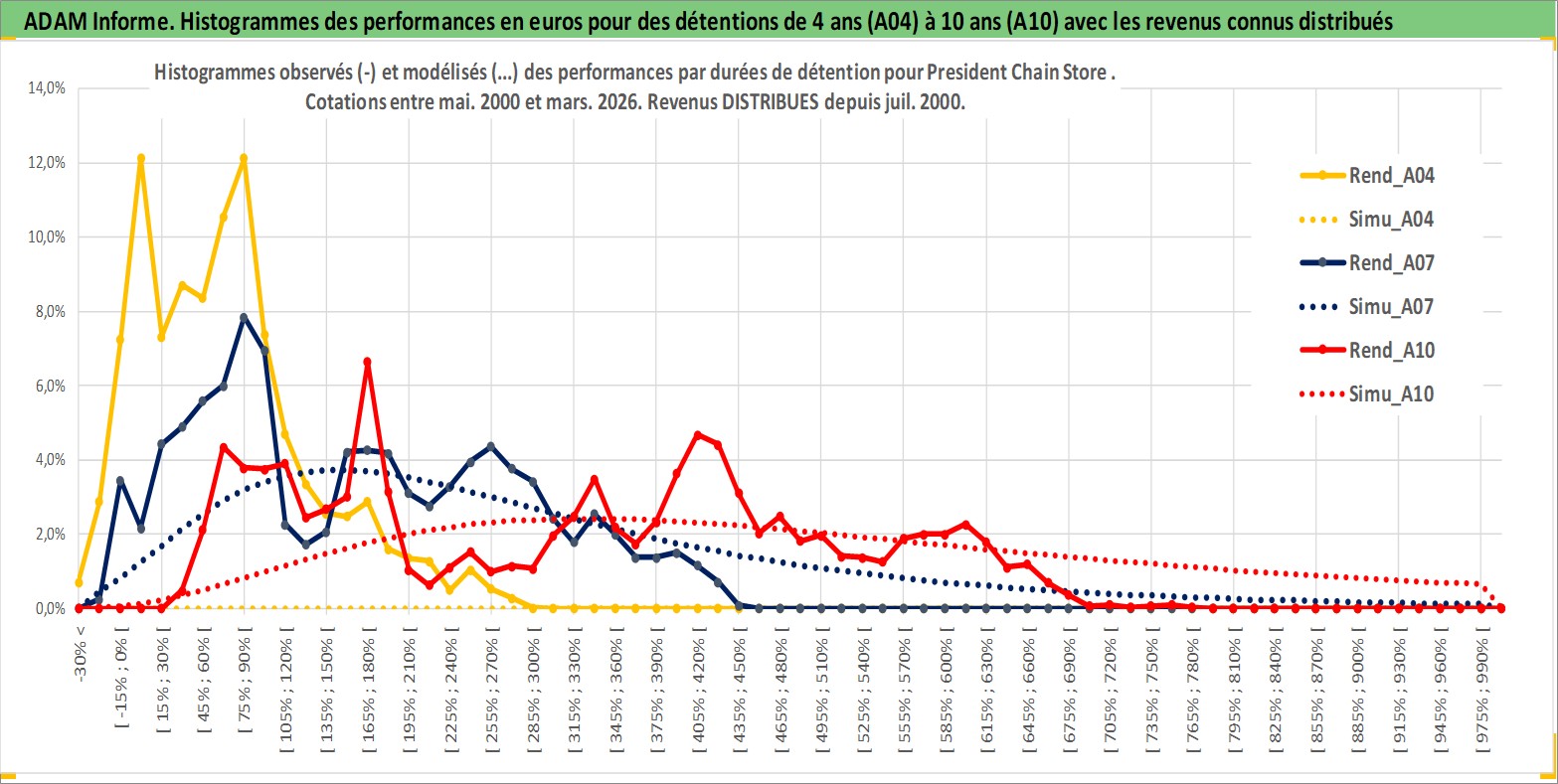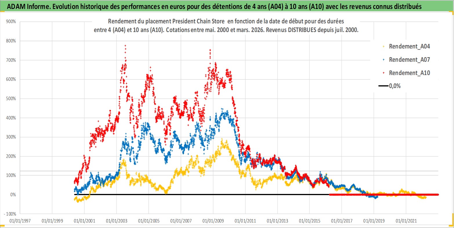 Site dédié aux investisseursPage dédiée sur site financeAnalyse des valorisations hebdomadaires de l'action President Chain Store . Cet actif est cote en TWD. Les valorisations sont en contrevaleur EURO et couvrent les semaines 2000W19 a 2026W13. Les revenus de cet actif financier sont pris en compte depuis la semaine 2000W30. La note globale ESG de cet actif est estimee a 8.0 (apres rebasage entre 0 et 20).