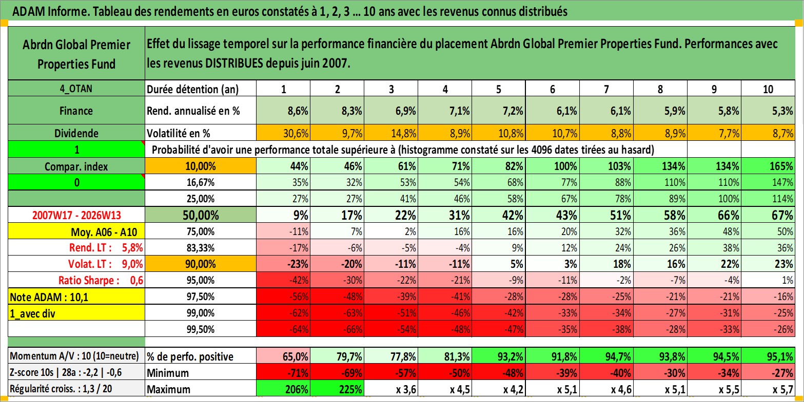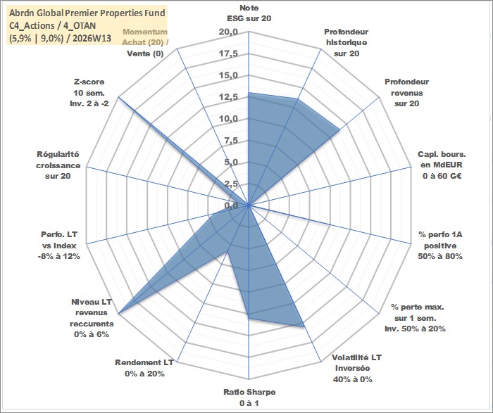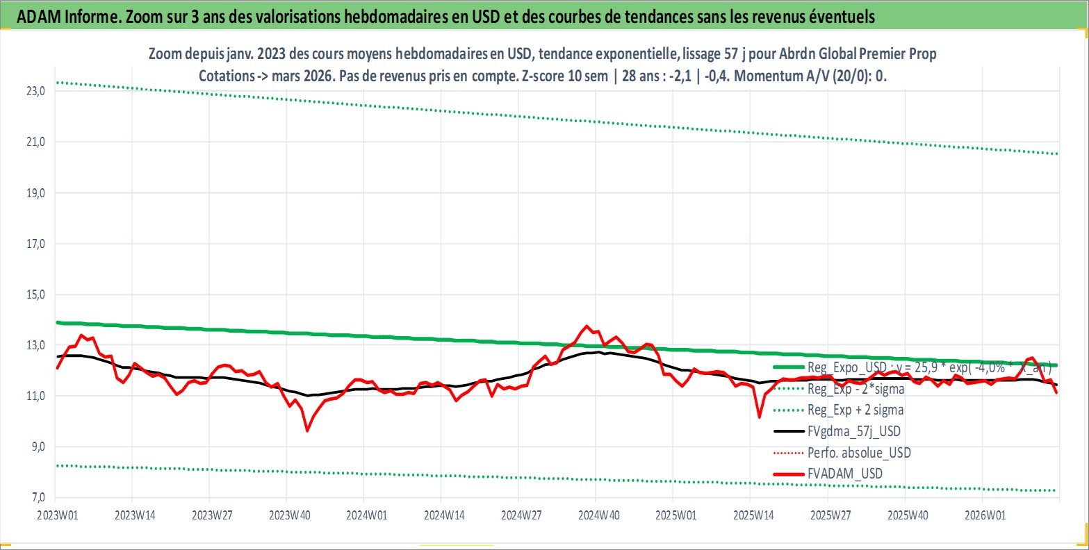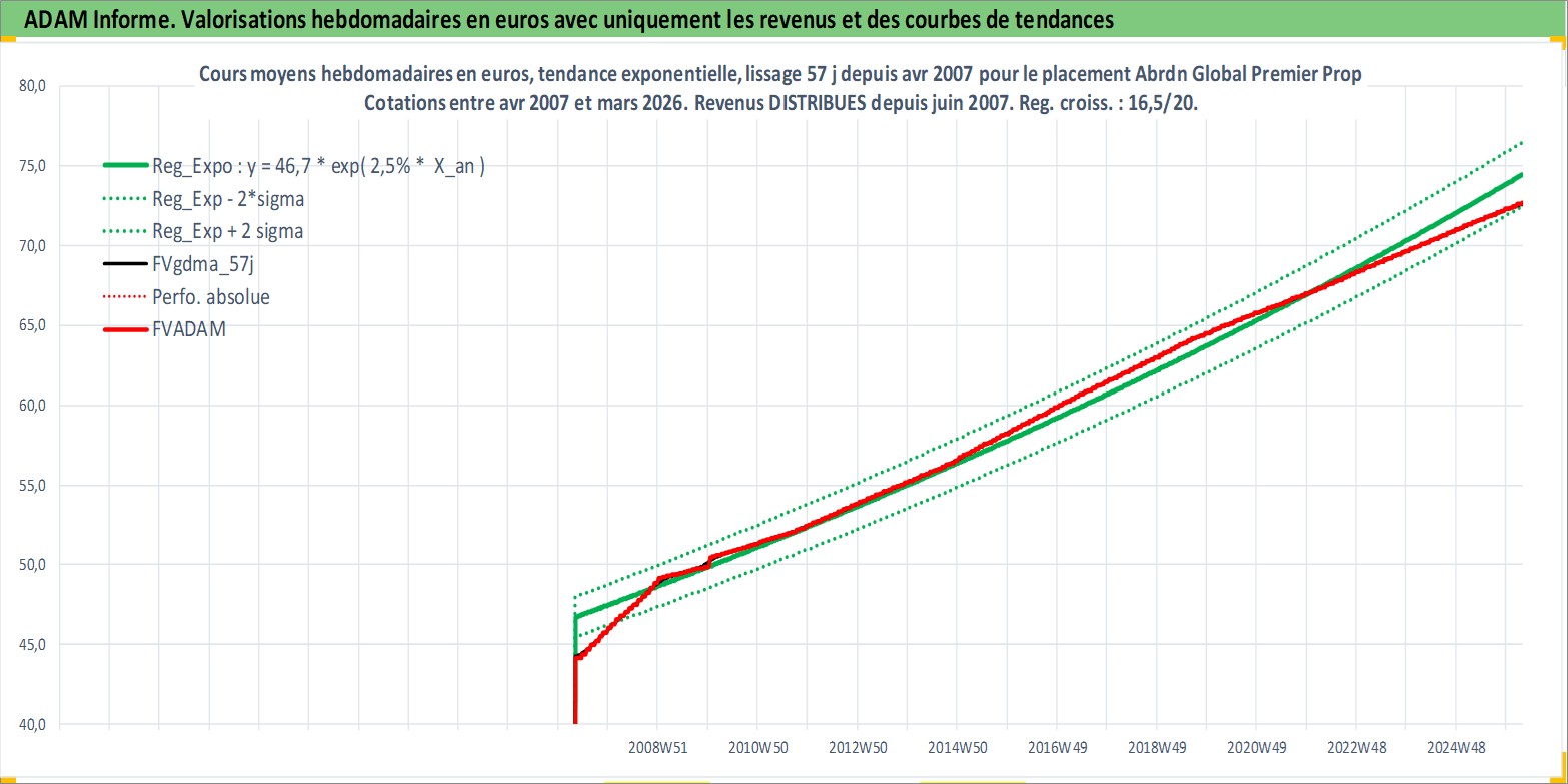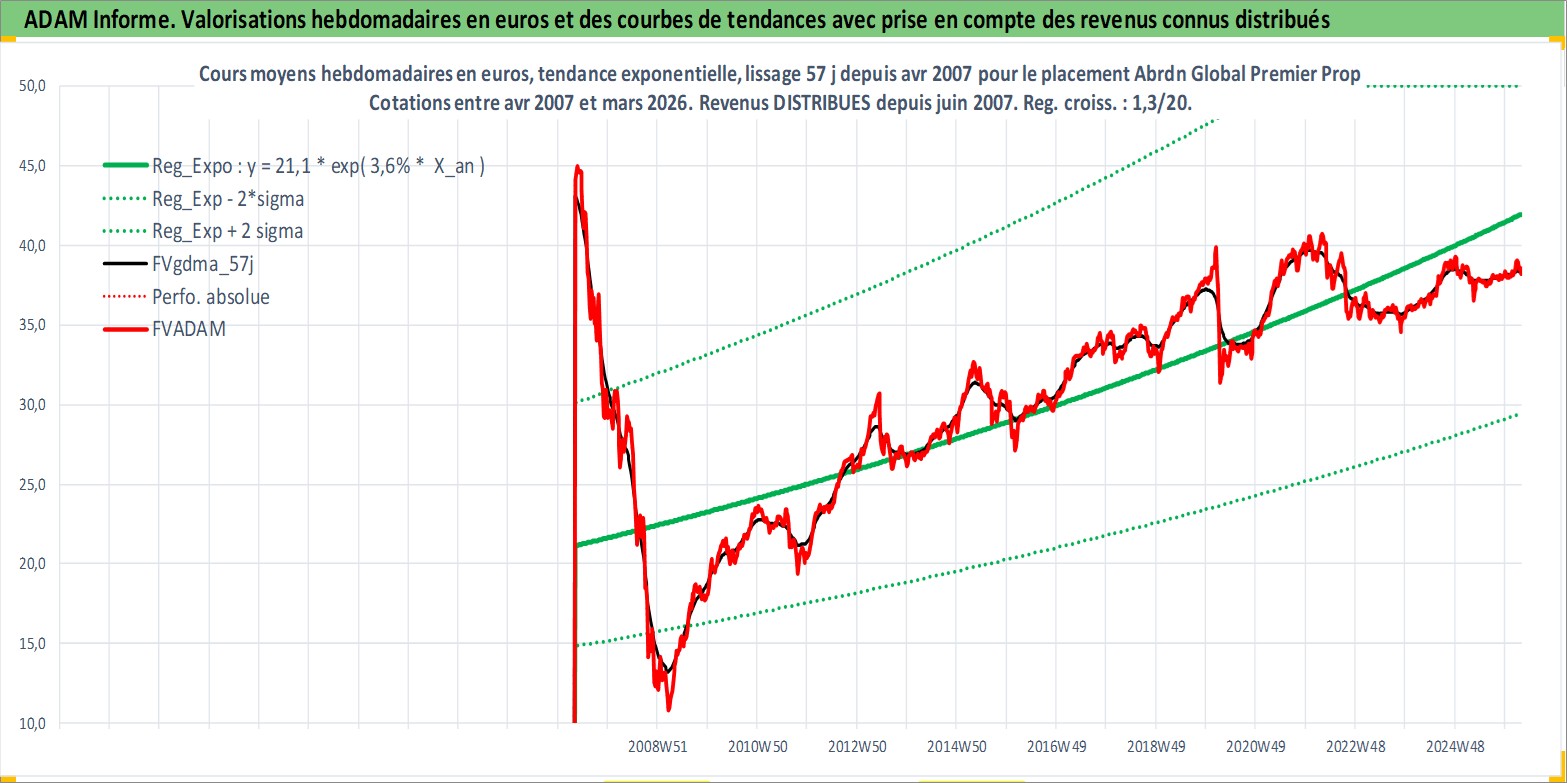 Site dédié aux investisseursPage dédiée sur site financeAnalyse des valorisations hebdomadaires de l'action Abrdn Global Premier Properties Fund. Cet actif est cote en USD. Les valorisations sont en contrevaleur EURO et couvrent les semaines 2007W17 a 2026W13. Les revenus de cet actif financier sont pris en compte depuis la semaine 2007W24. La note globale ESG de cet actif est estimee a 13.0 (apres rebasage entre 0 et 20).
