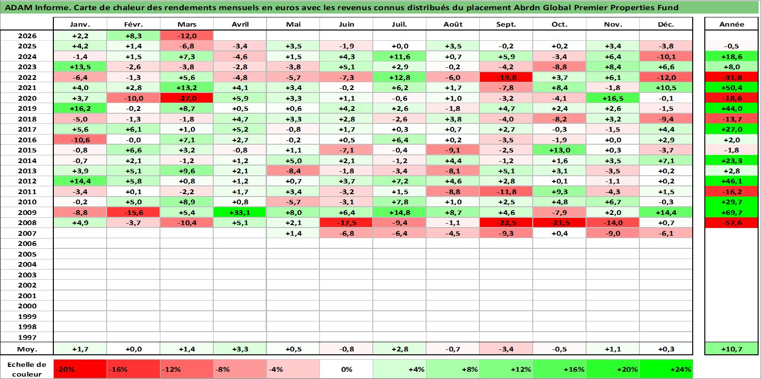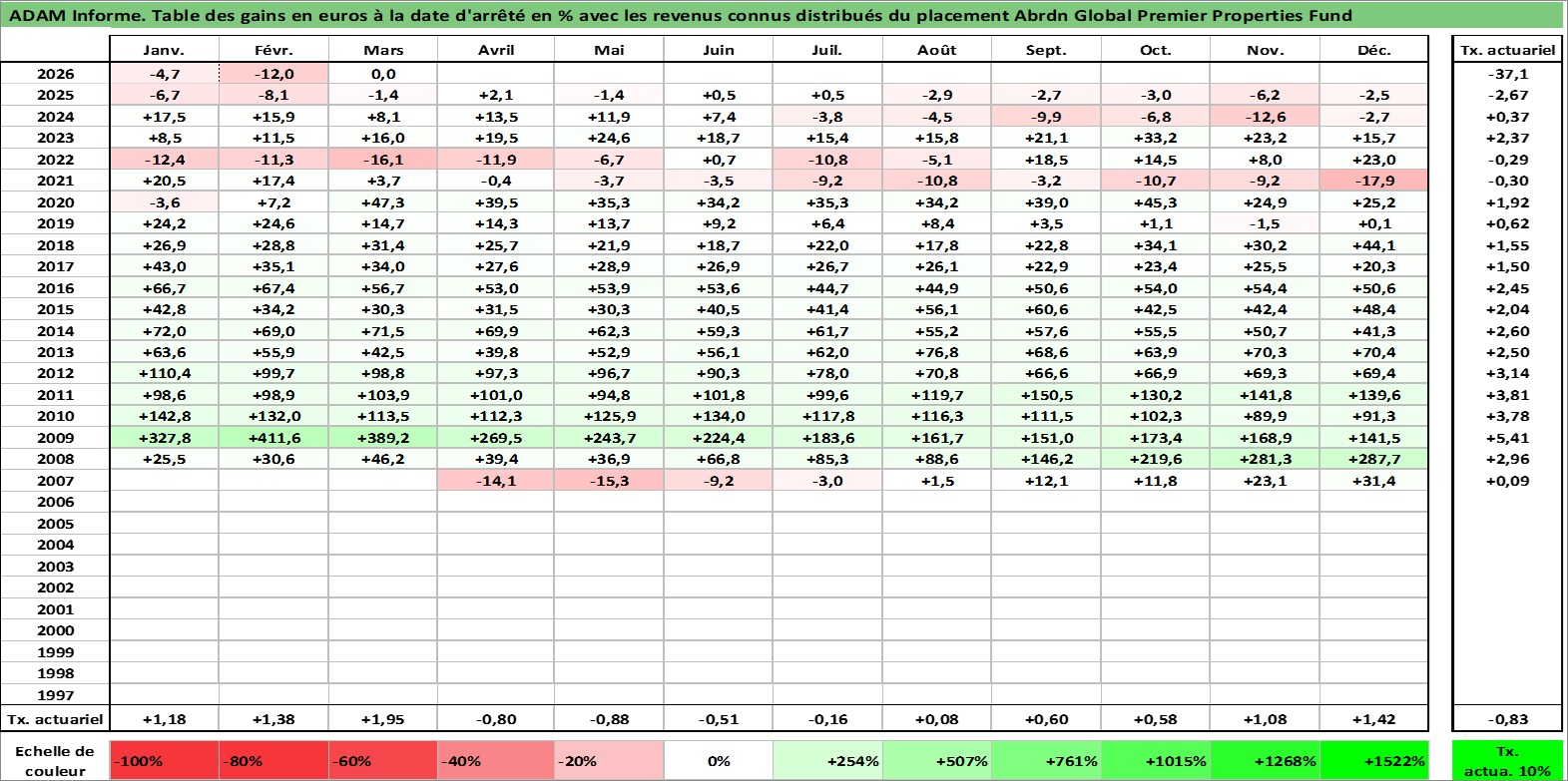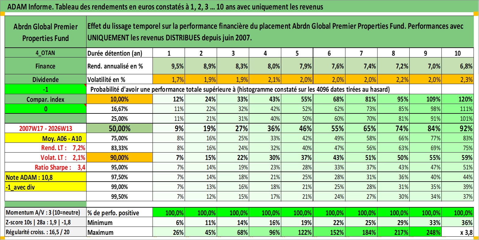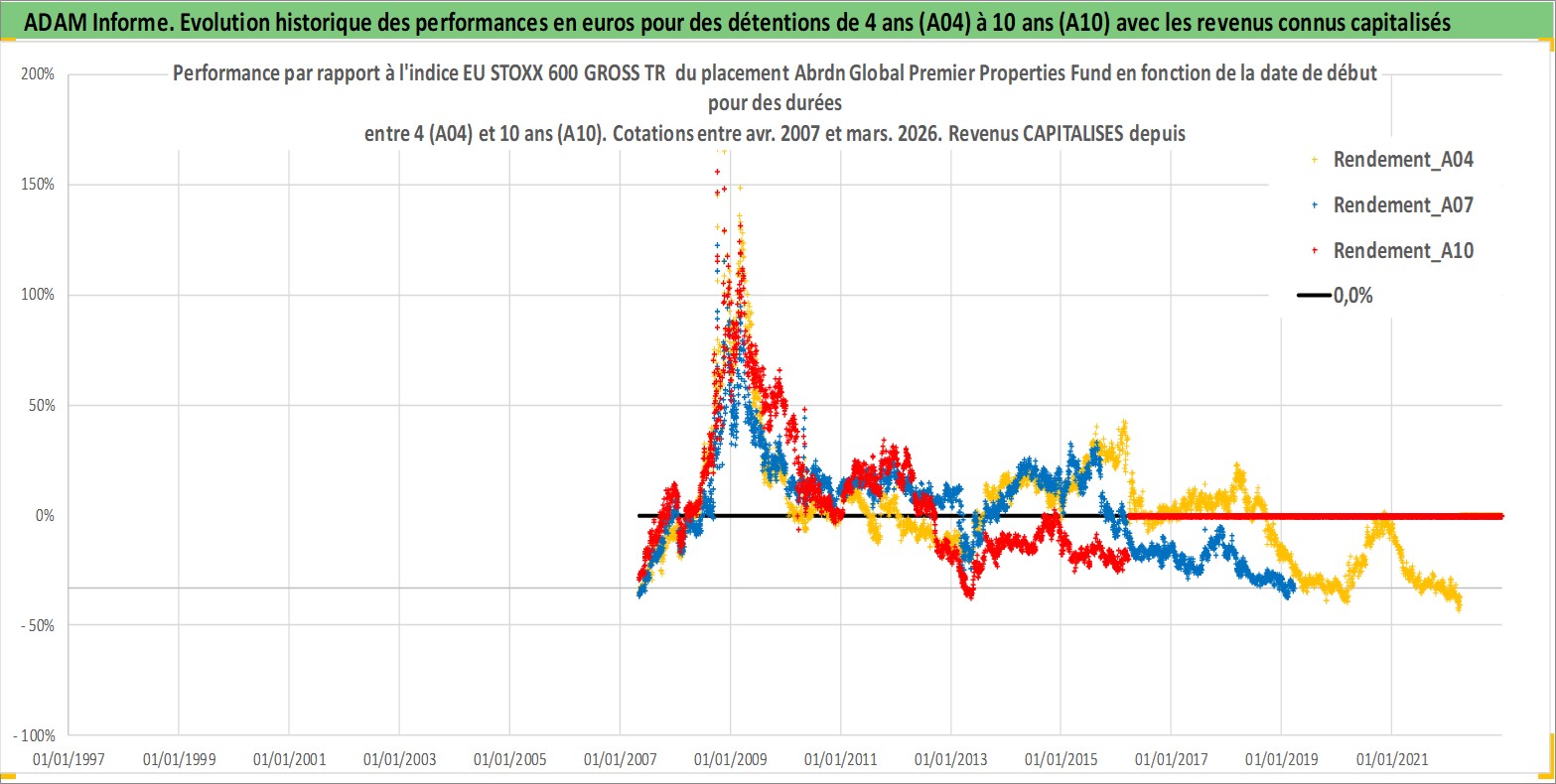 Site dédié aux investisseursPage dédiée sur site financeAnalyse des valorisations hebdomadaires de l'action Abrdn Global Premier Properties Fund. Cet actif est cote en USD. Les valorisations sont en contrevaleur EURO et couvrent les semaines 2007W17 a 2026W13. Les revenus de cet actif financier sont pris en compte depuis la semaine 2007W24. La note globale ESG de cet actif est estimee a 13.0 (apres rebasage entre 0 et 20).