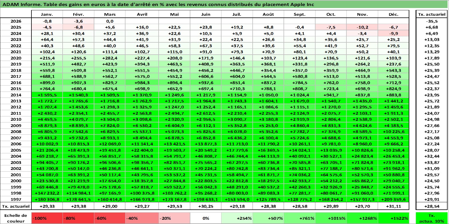 Dernière perfo 10 ans en %