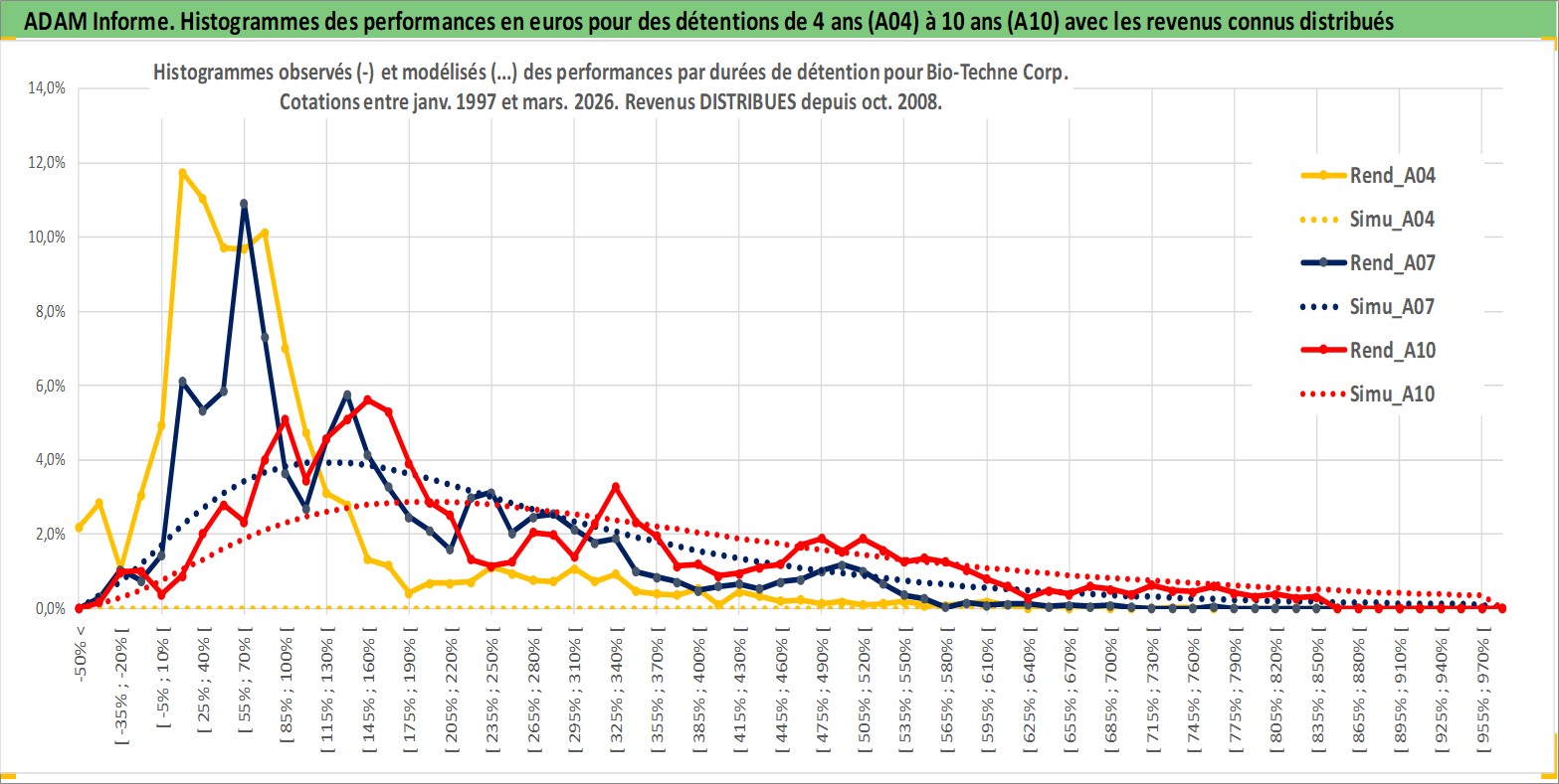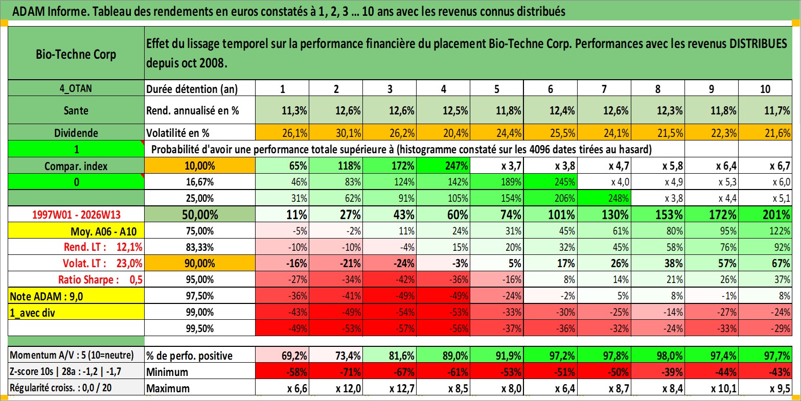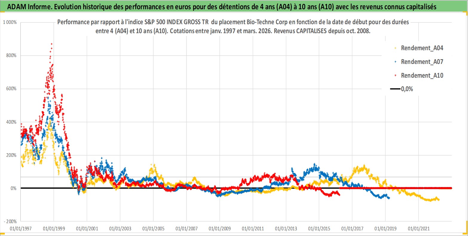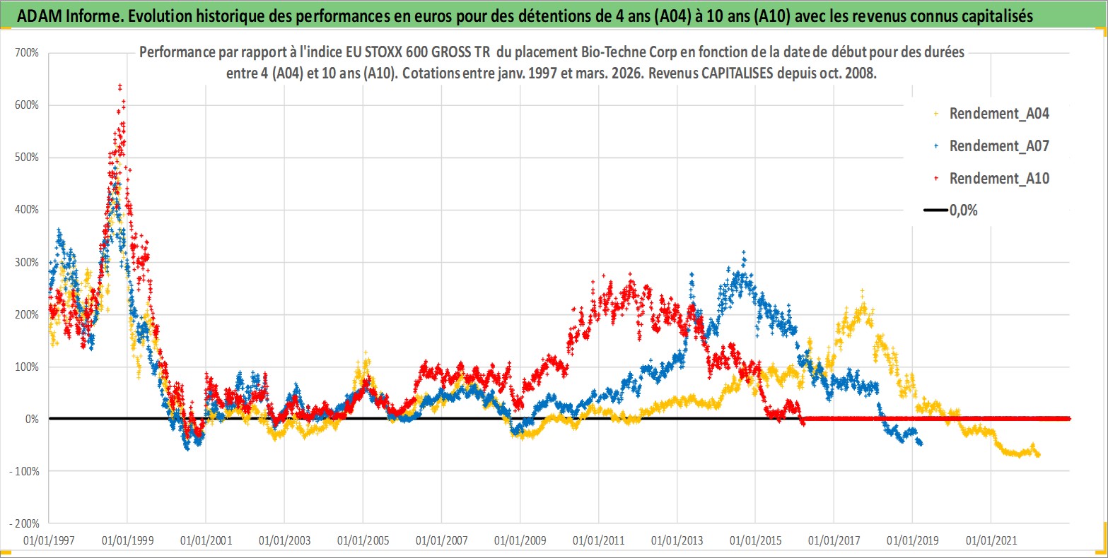 Site dédié aux investisseursPage dédiée sur site financeAnalyse des valorisations hebdomadaires de l'action Bio-Techne Corp. Cet actif est cote en USD. Les valorisations sont en contrevaleur EURO et couvrent les semaines 1997W01 a 2026W13. Les revenus de cet actif financier sont pris en compte depuis la semaine 2008W44. La note ESG de cet actif n'est pas connue.