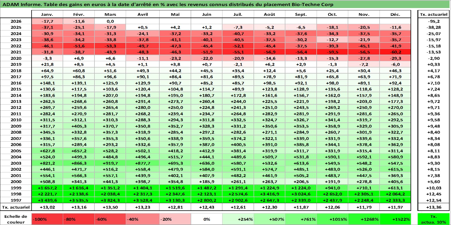 Dernière perfo 10 ans en %