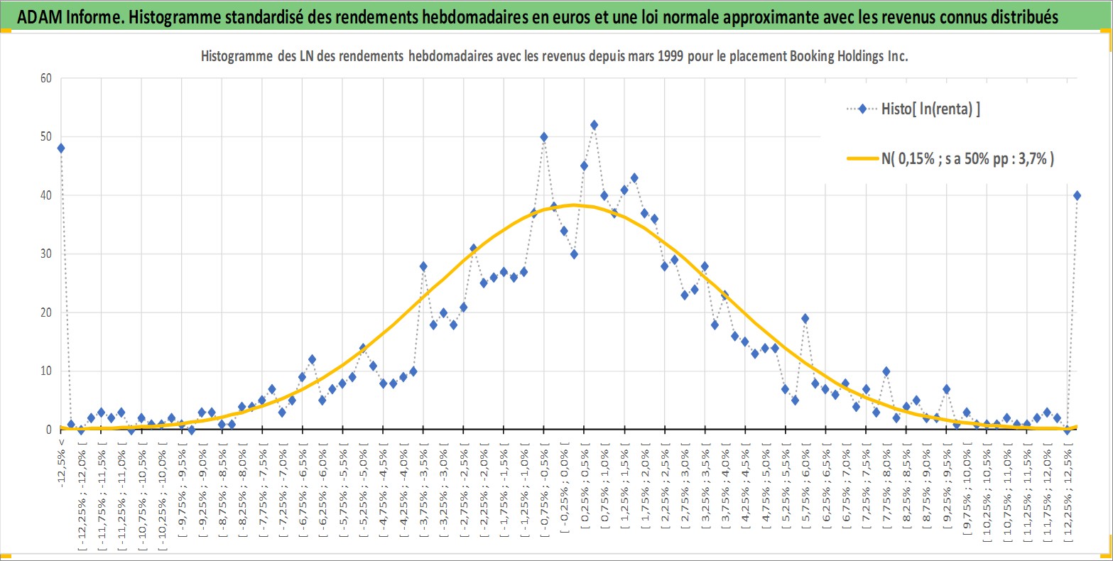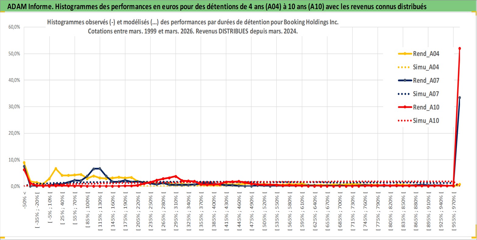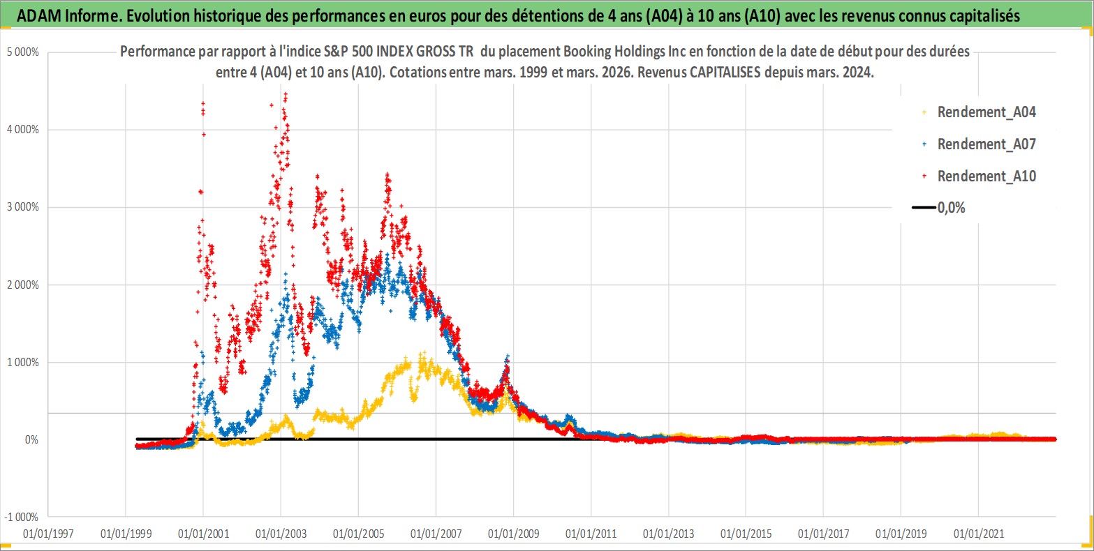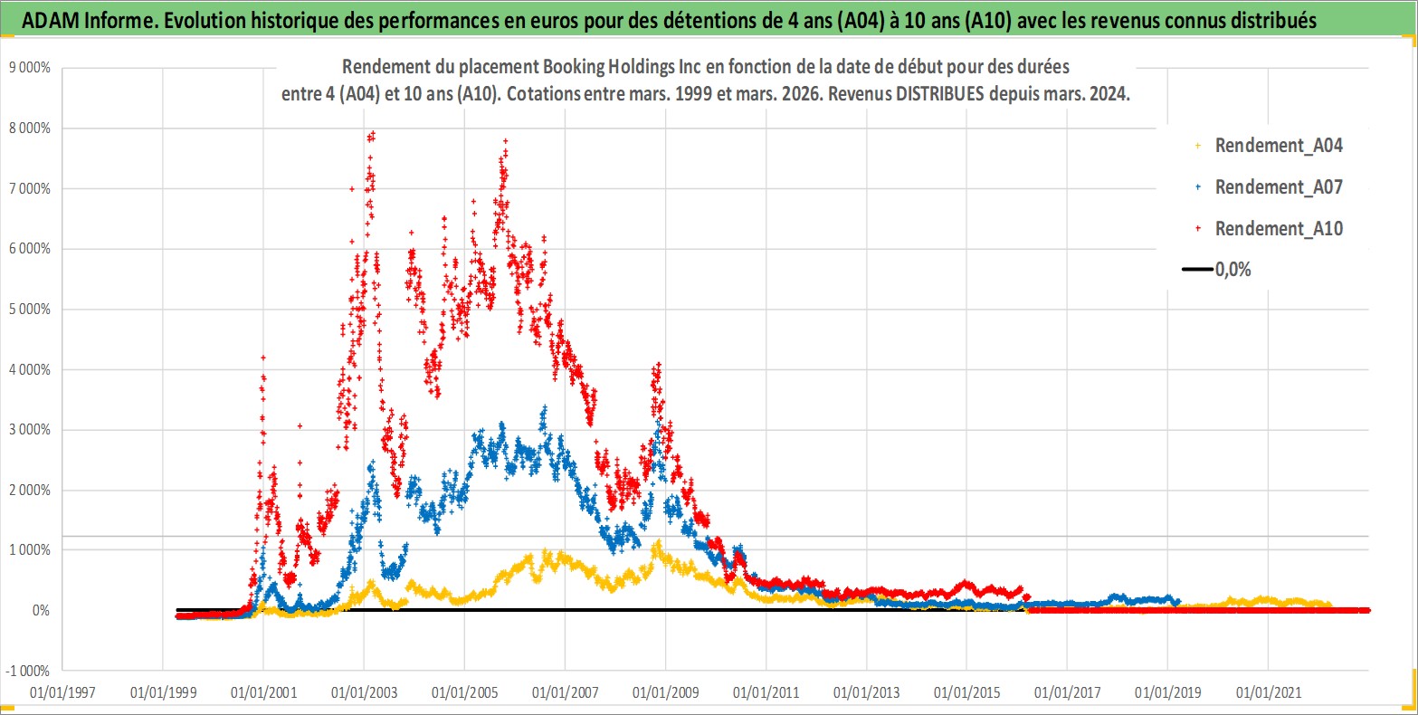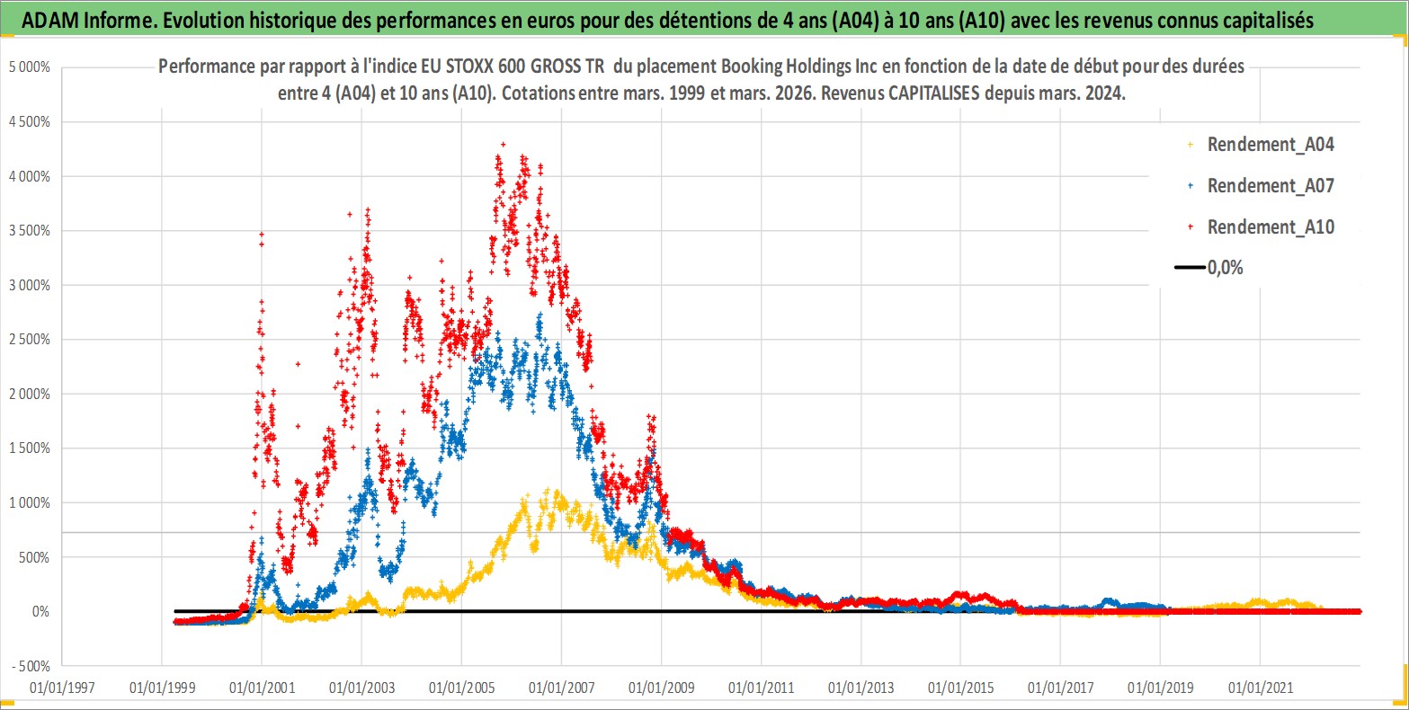 Site dédié aux investisseursPage dédiée sur site financeAnalyse des valorisations hebdomadaires de l'action Booking Holdings Inc. Cet actif est cote en USD. Les valorisations sont en contrevaleur EURO et couvrent les semaines 1999W13 a 2026W13. Les revenus de cet actif financier sont pris en compte depuis la semaine 2024W10. La note globale ESG de cet actif est estimee a 9.0 (apres rebasage entre 0 et 20).