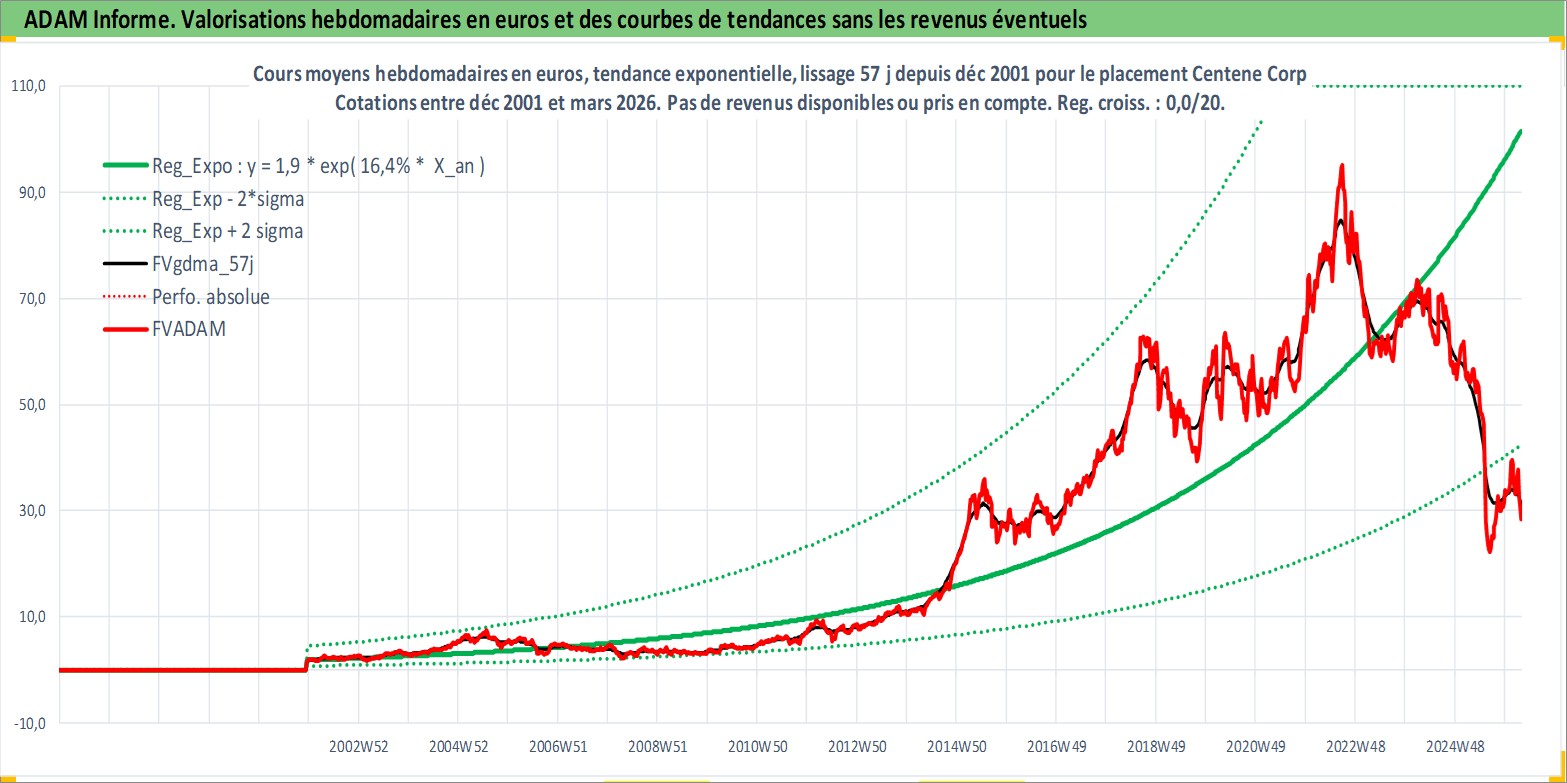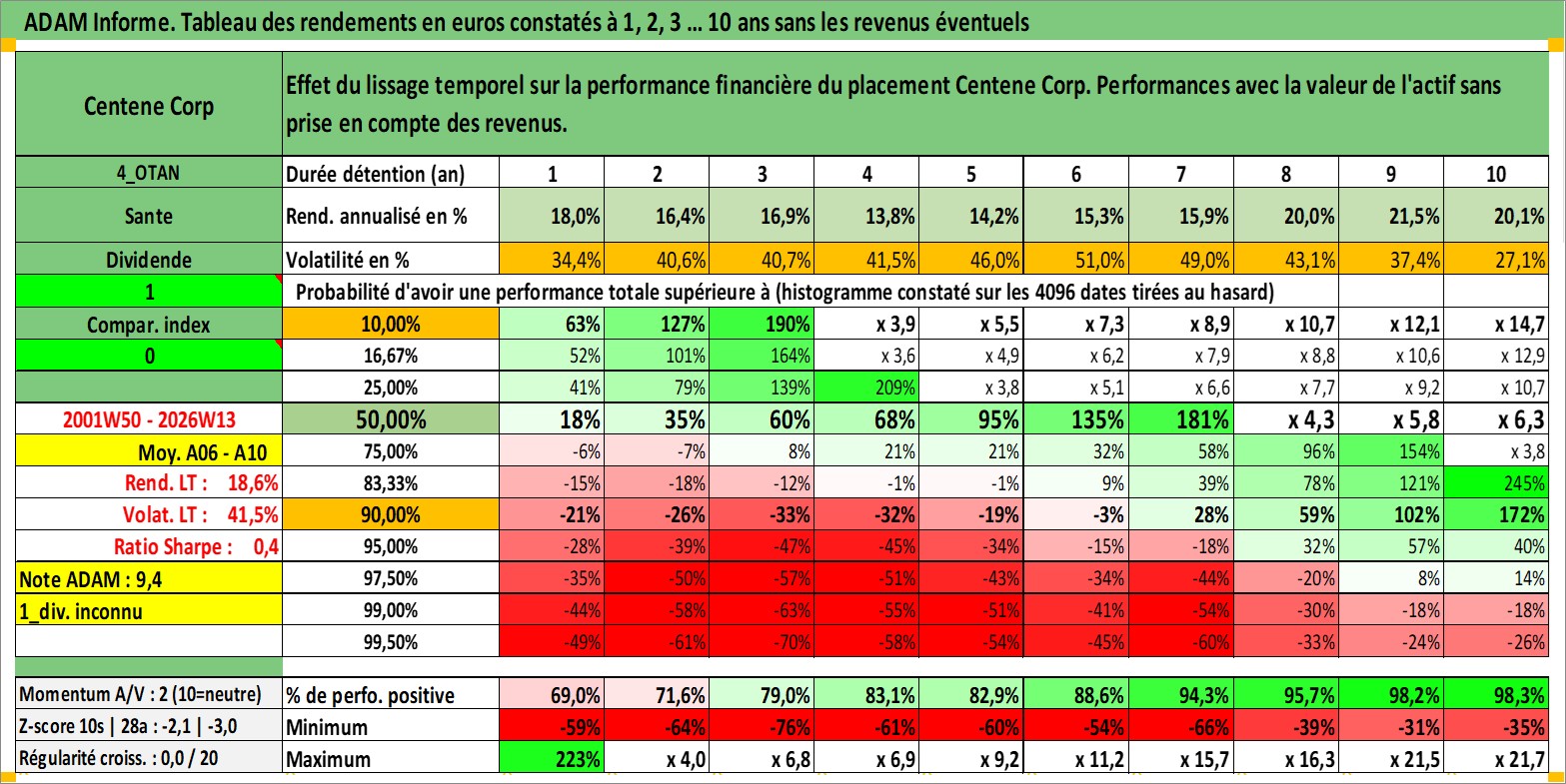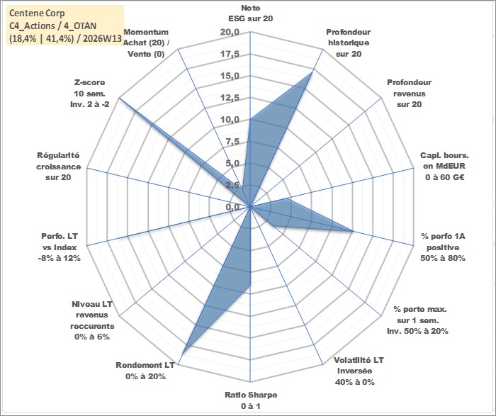 Site dédié aux investisseursPage dédiée sur site financeAnalyse des valorisations hebdomadaires de l'action Centene Corp. Cet actif est cote en USD. Les valorisations sont en contrevaleur EURO et couvrent les semaines 2001W50 a 2026W13. Les revenus de cet actif financier ne sont pas connus car non existants ou non disponibles sur le site Yahoo Finance. La note globale ESG de cet actif est estimee a 10.0 (apres rebasage entre 0 et 20).