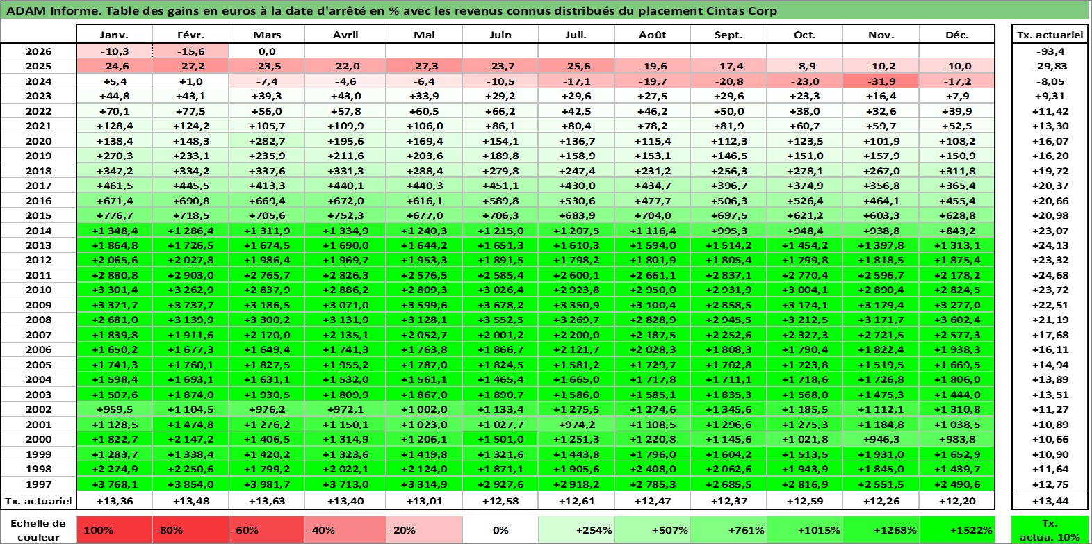 Dernière perfo 10 ans en %