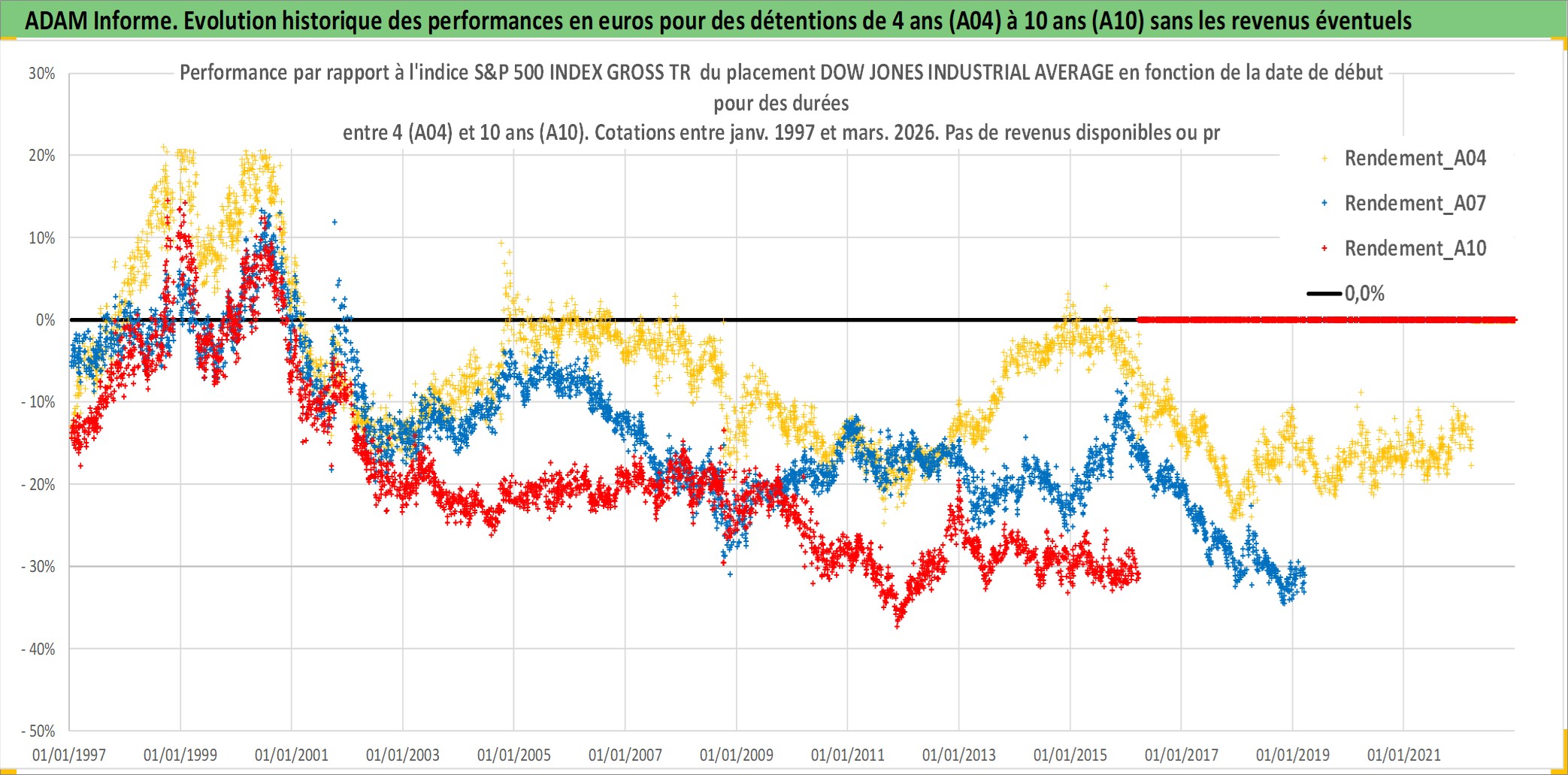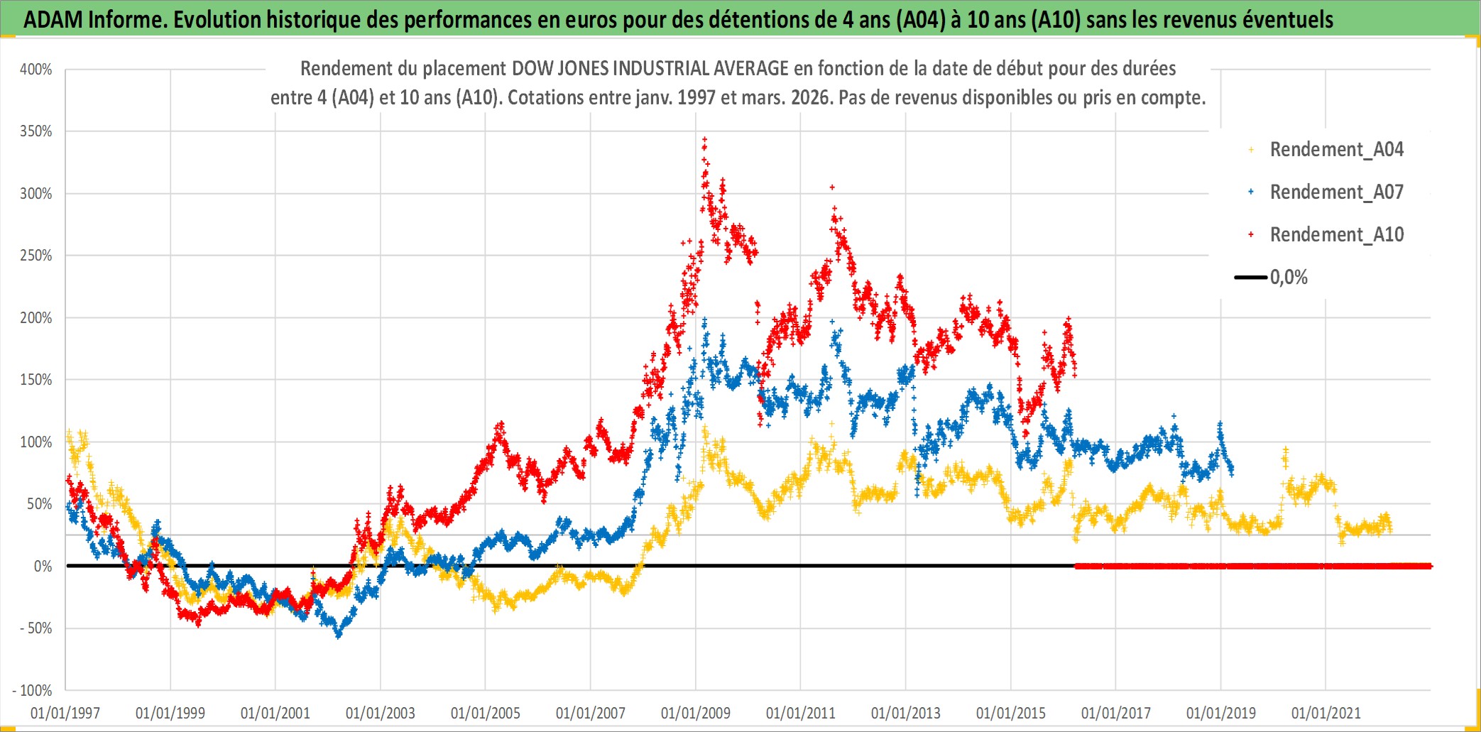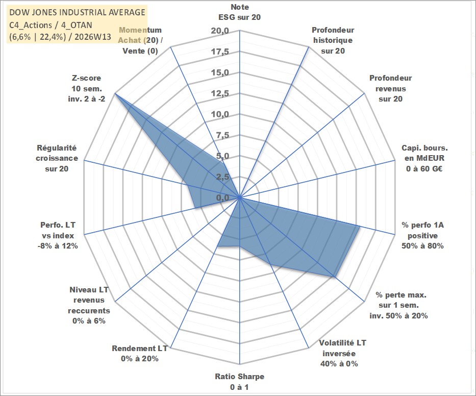 Site dédié aux investisseursPage dédiée sur site financeAnalyse des valorisations hebdomadaires de l'actif DOW JONES INDUSTRIAL AVERAGE. Cet actif est cote en USD. Les valorisations sont en contrevaleur EURO et couvrent les semaines 1997W01 a 2026W13. Les revenus de cet actif financier ne sont pas connus car non existants ou non disponibles sur le site Yahoo Finance. La note ESG de cet actif n'est pas connue.