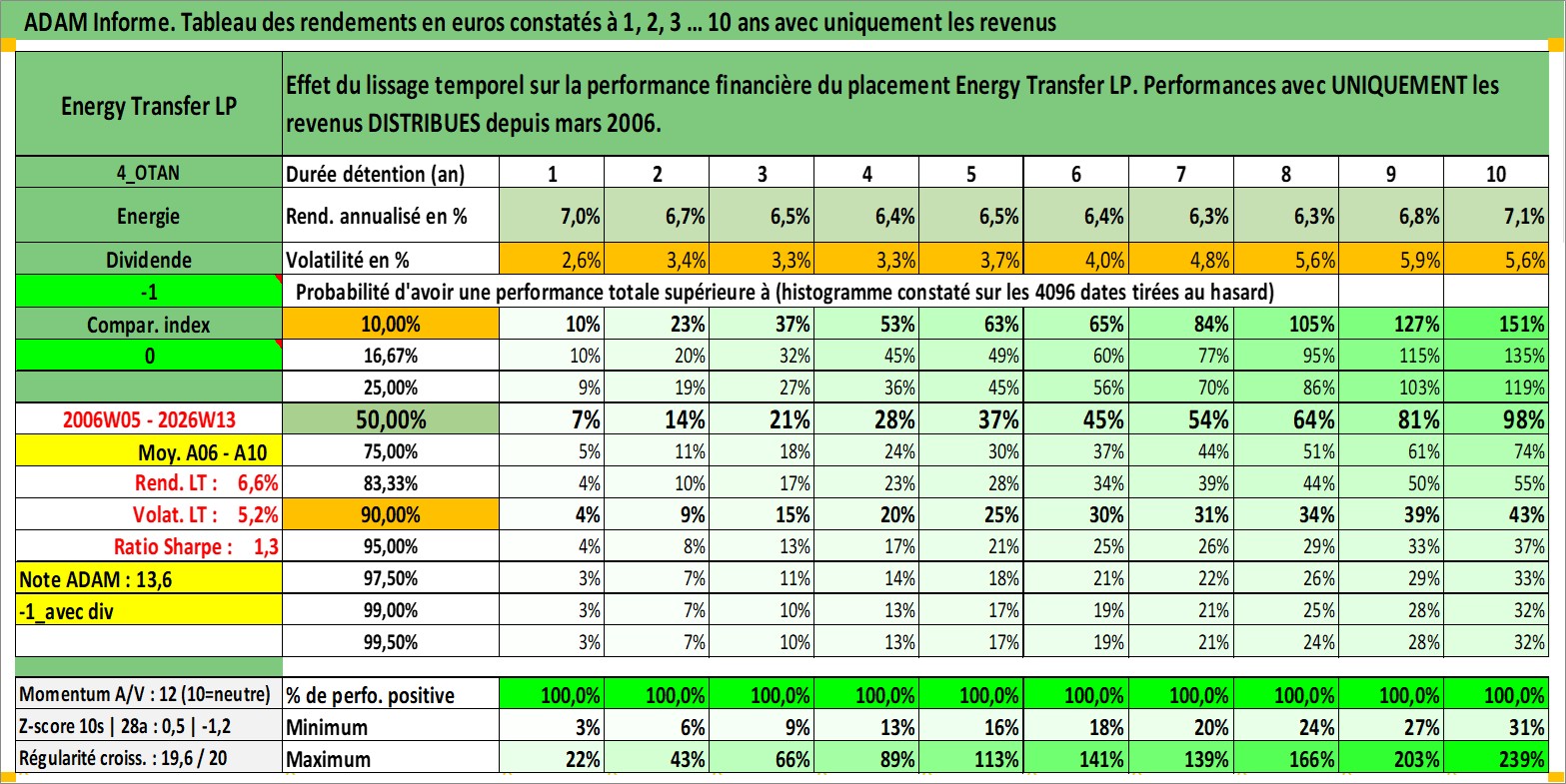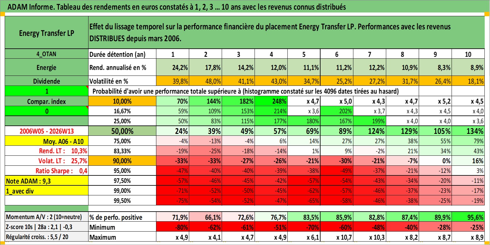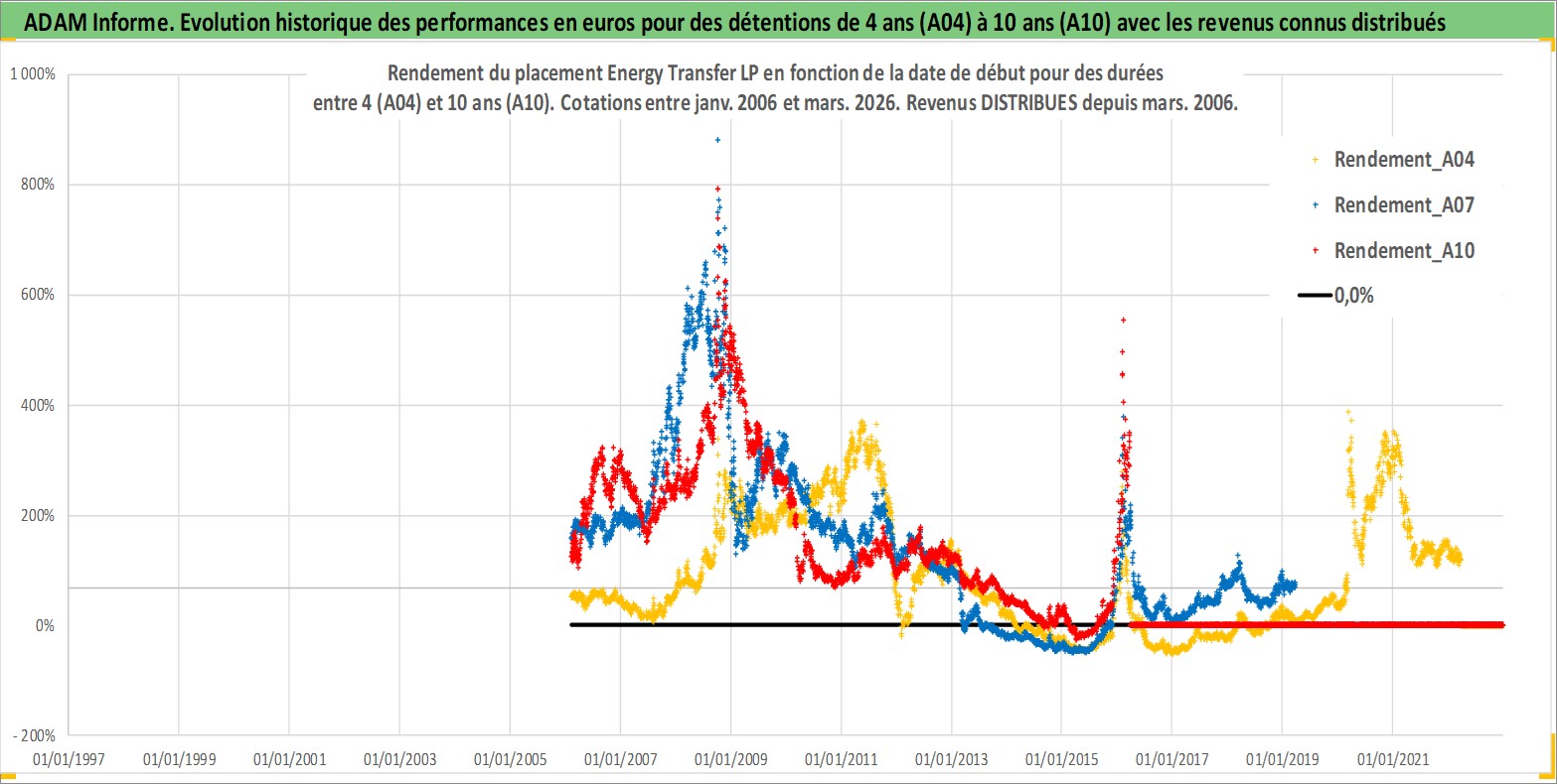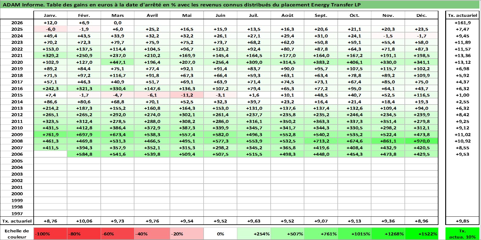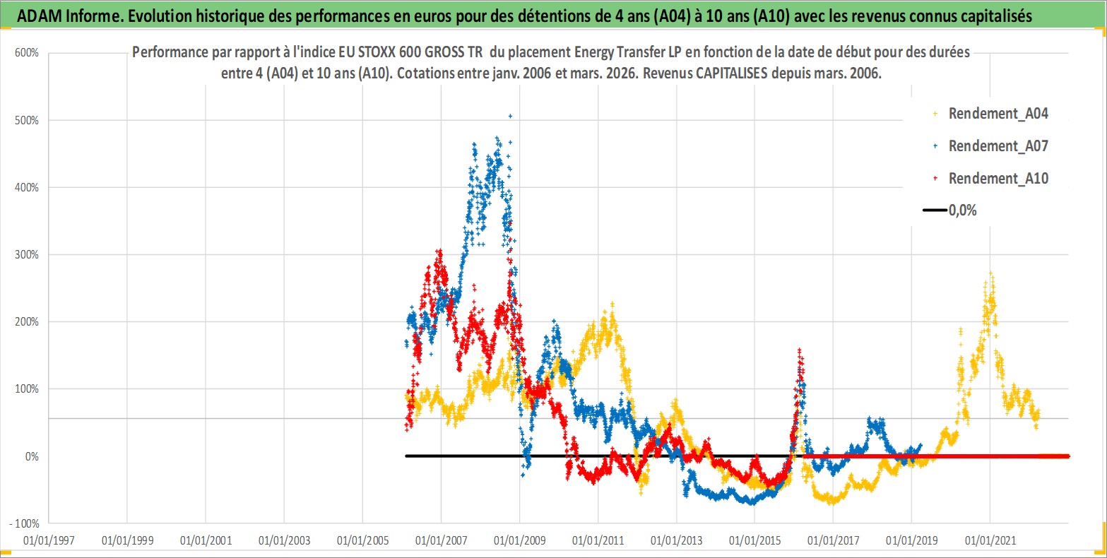 Site dédié aux investisseursPage dédiée sur site financeAnalyse des valorisations hebdomadaires de l'action Energy Transfer LP. Cet actif est cote en USD. Les valorisations sont en contrevaleur EURO et couvrent les semaines 2006W05 a 2026W13. Les revenus de cet actif financier sont pris en compte depuis la semaine 2006W13. La note ESG de cet actif n'est pas connue.