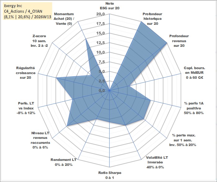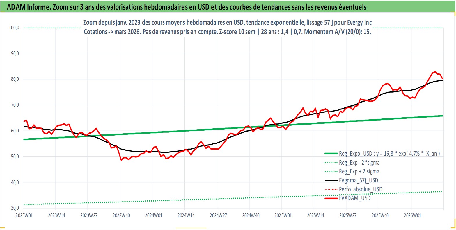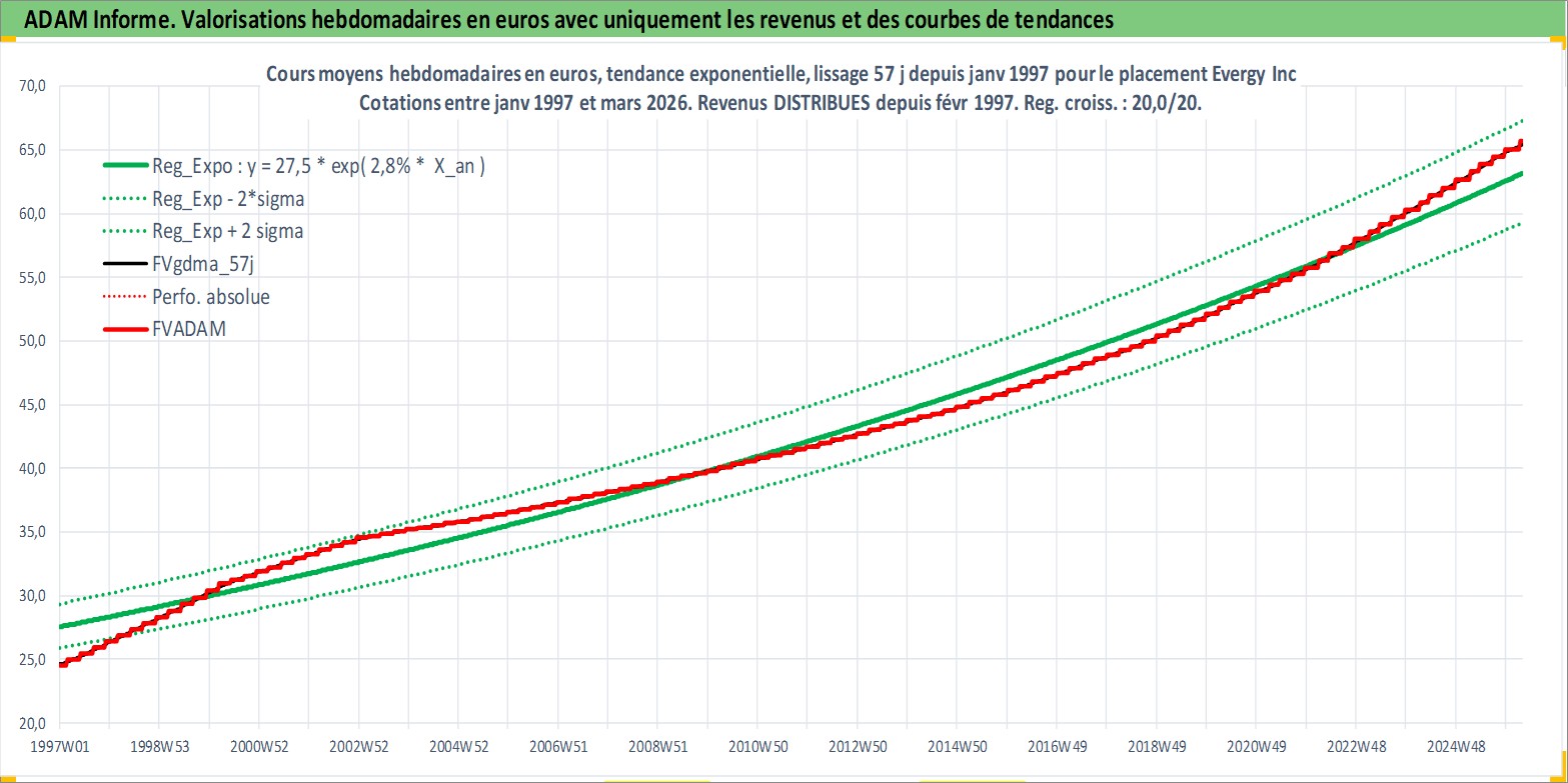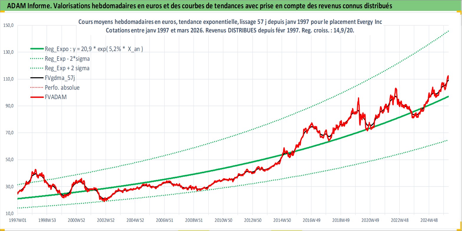 Site dédié aux investisseursPage dédiée sur site financeAnalyse des valorisations hebdomadaires de l'action Evergy Inc. Cet actif est cote en USD. Les valorisations sont en contrevaleur EURO et couvrent les semaines 1997W01 a 2026W13. Les revenus de cet actif financier sont pris en compte depuis la semaine 1997W09. La note ESG de cet actif n'est pas connue.