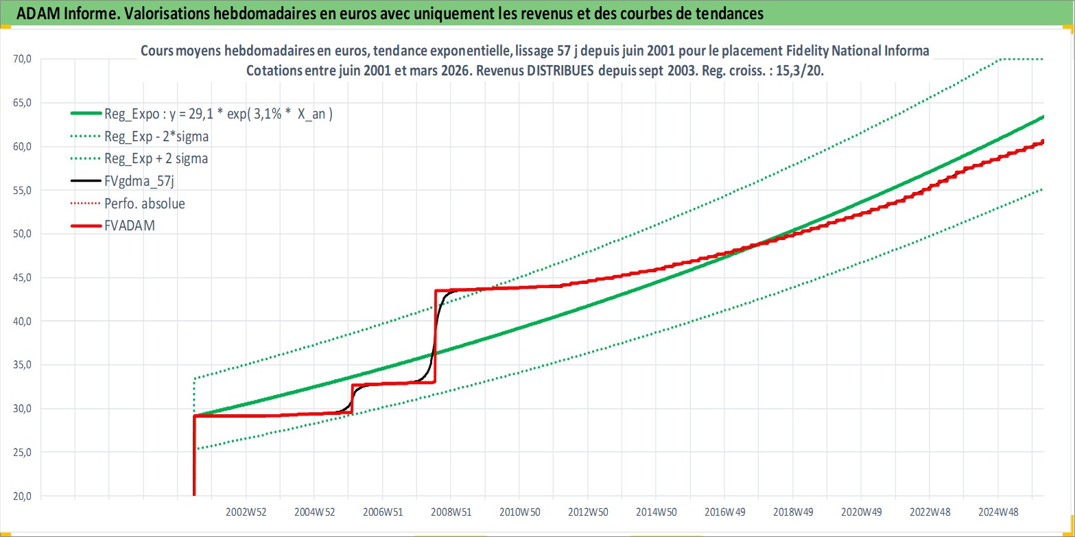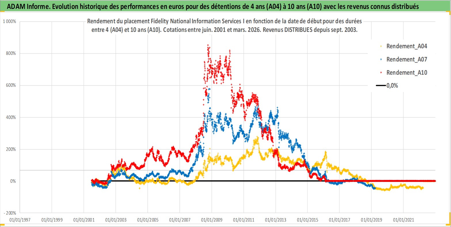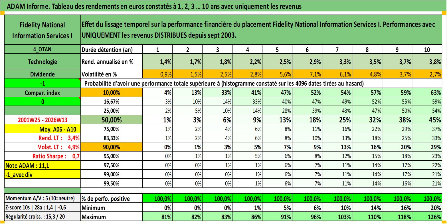 Site dédié aux investisseursPage dédiée sur site financeAnalyse des valorisations hebdomadaires de l'action Fidelity National Information Services I. Cet actif est cote en USD. Les valorisations sont en contrevaleur EURO et couvrent les semaines 2001W25 a 2026W13. Les revenus de cet actif financier sont pris en compte depuis la semaine 2003W40. La note globale ESG de cet actif est estimee a 11.0 (apres rebasage entre 0 et 20).