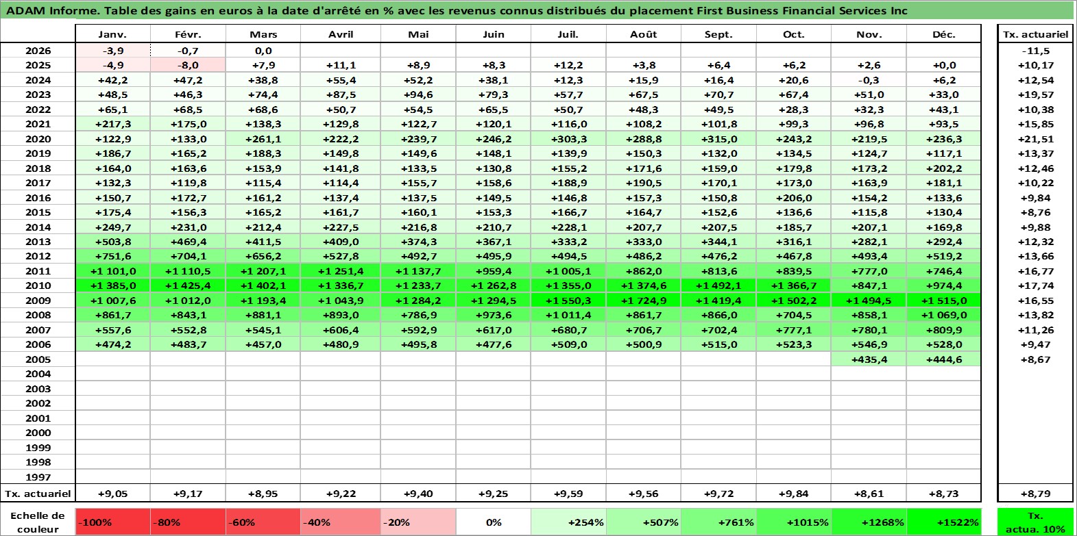 Dernière perfo 10 ans en %
