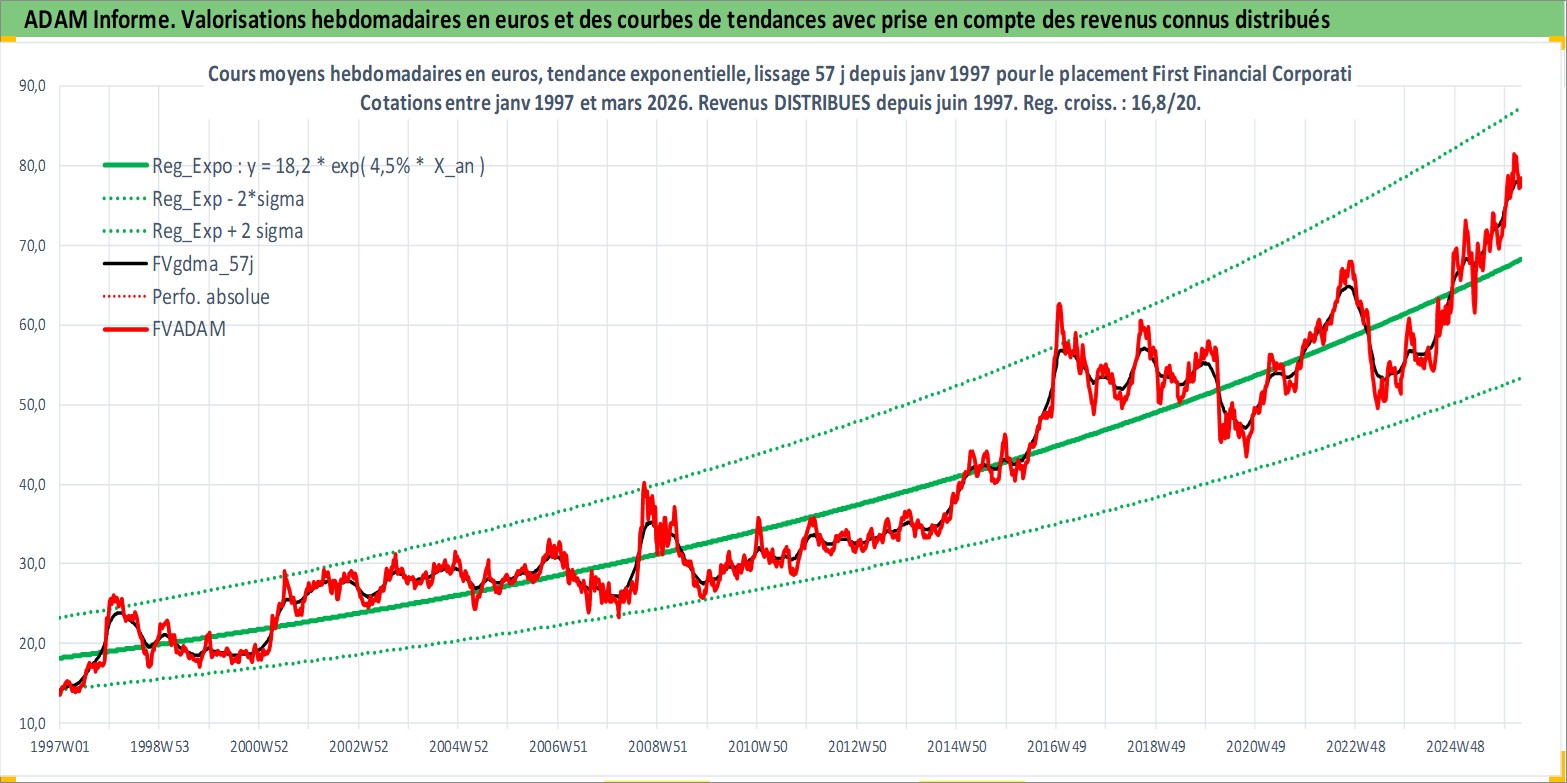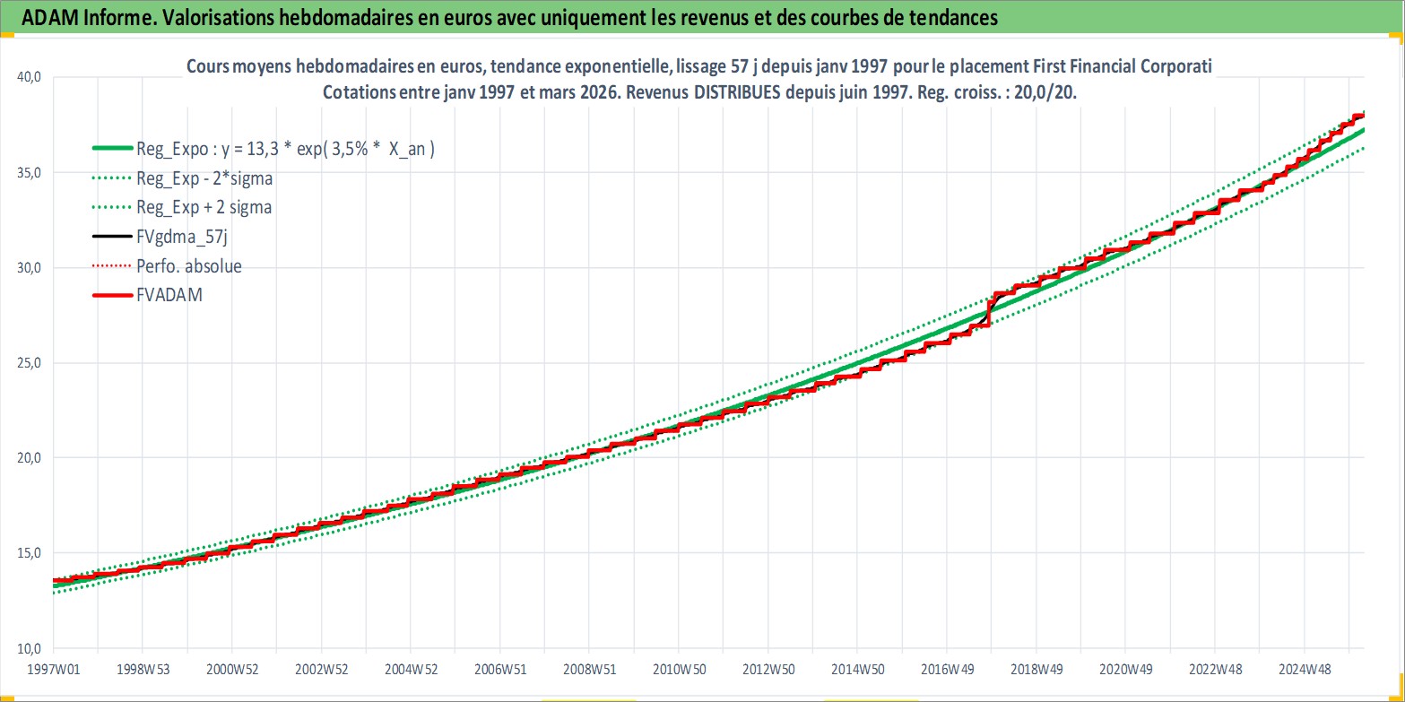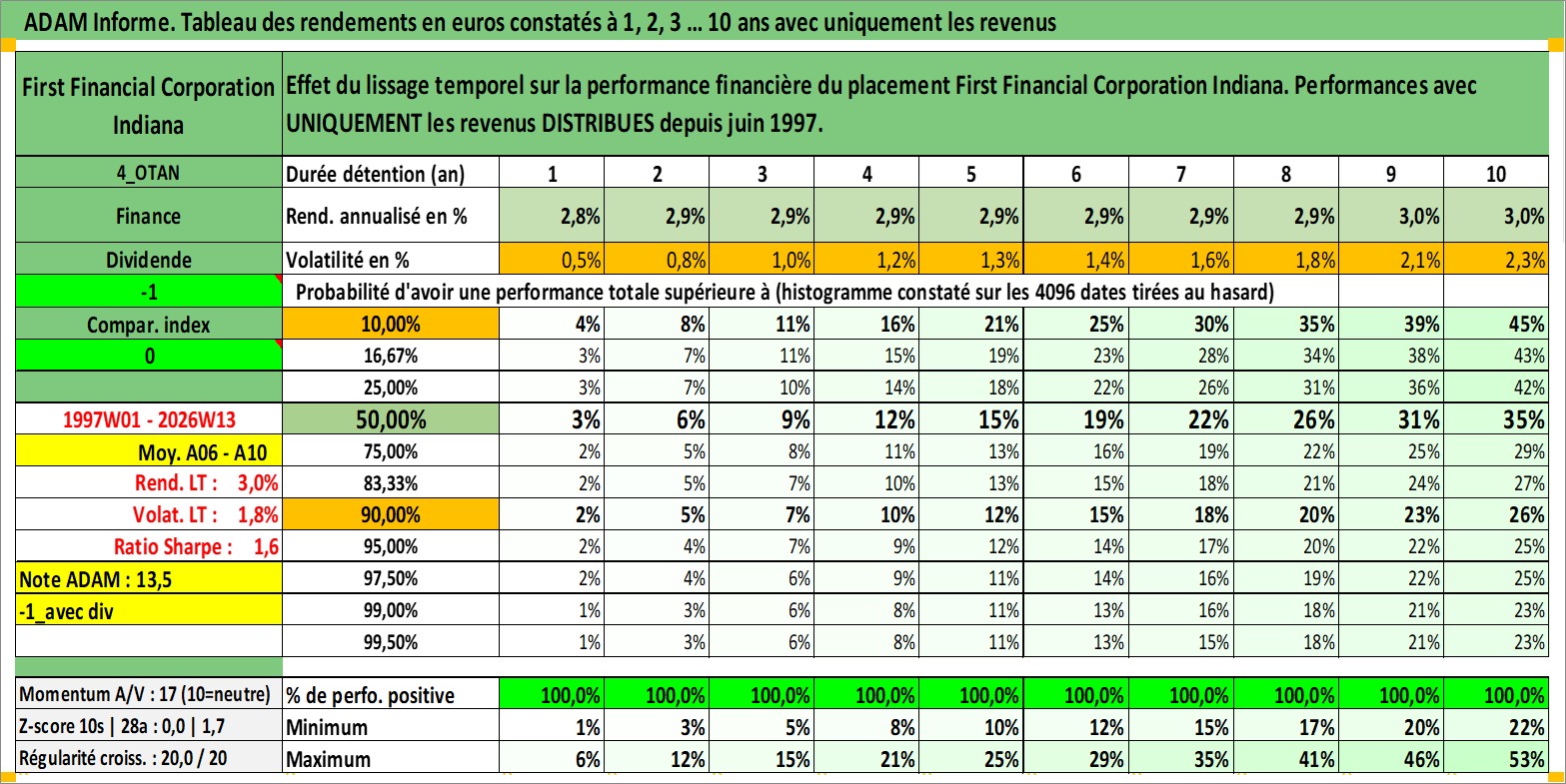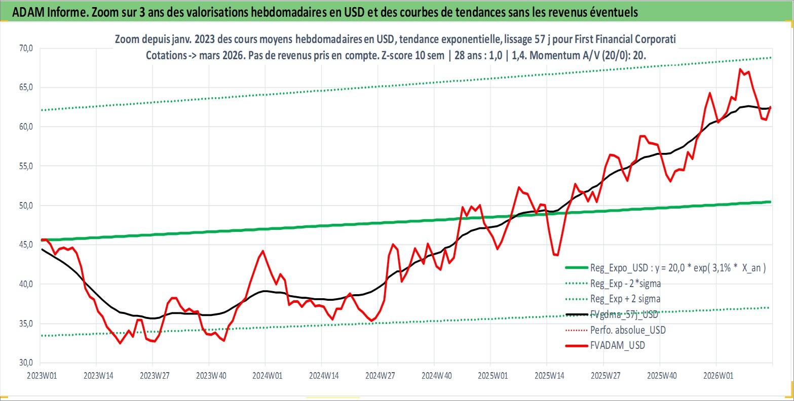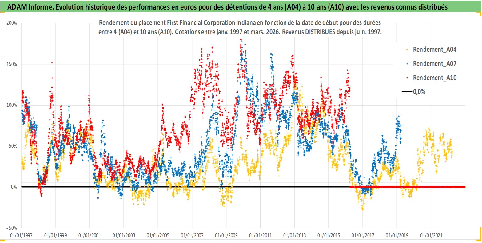 Site dédié aux investisseursPage dédiée sur site financeAnalyse des valorisations hebdomadaires de l'action First Financial Corporation Indiana. Cet actif est cote en USD. Les valorisations sont en contrevaleur EURO et couvrent les semaines 1997W01 a 2026W13. Les revenus de cet actif financier sont pris en compte depuis la semaine 1997W24. La note ESG de cet actif n'est pas connue.