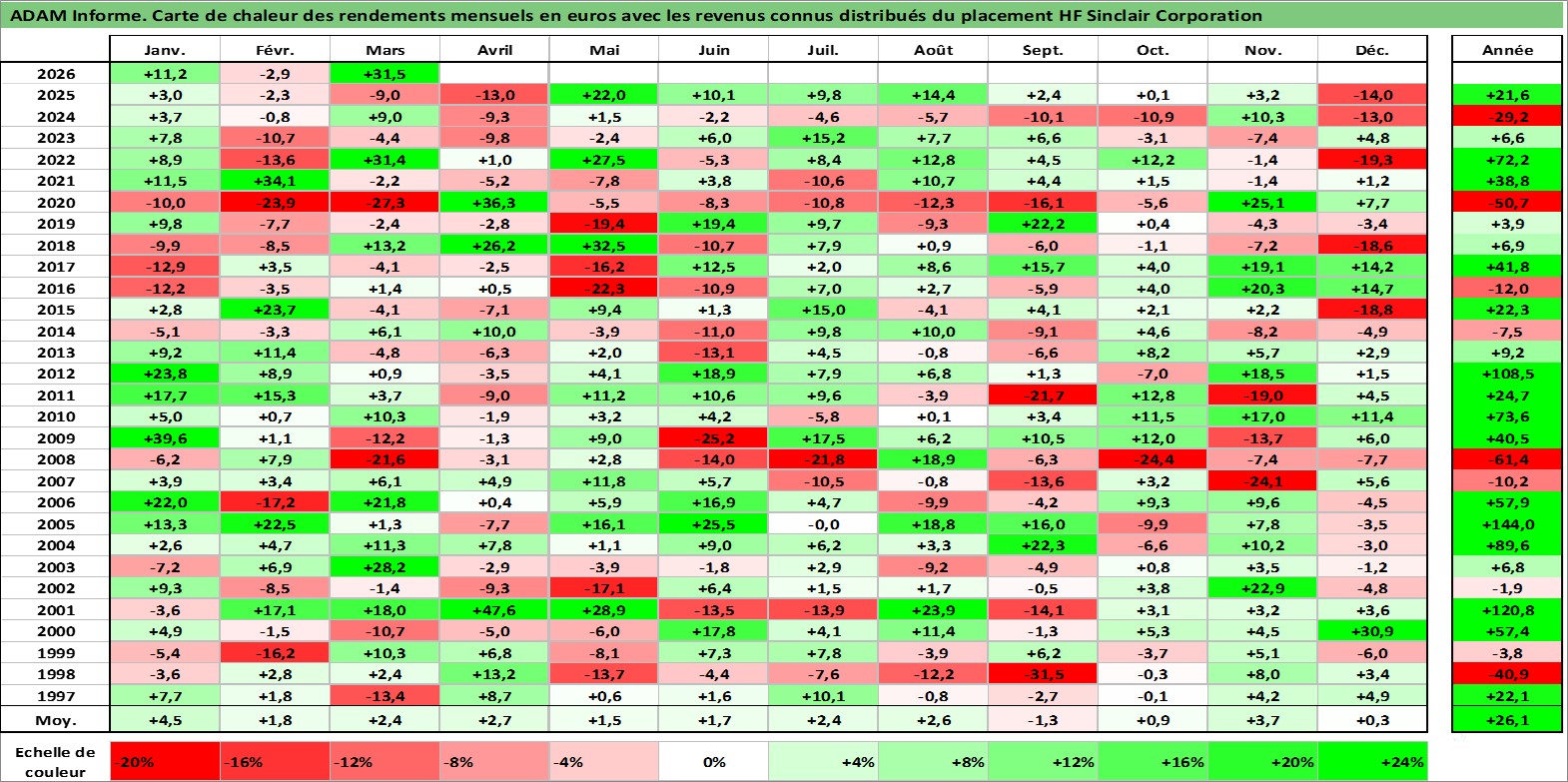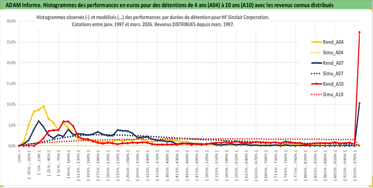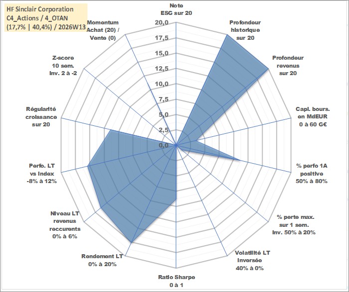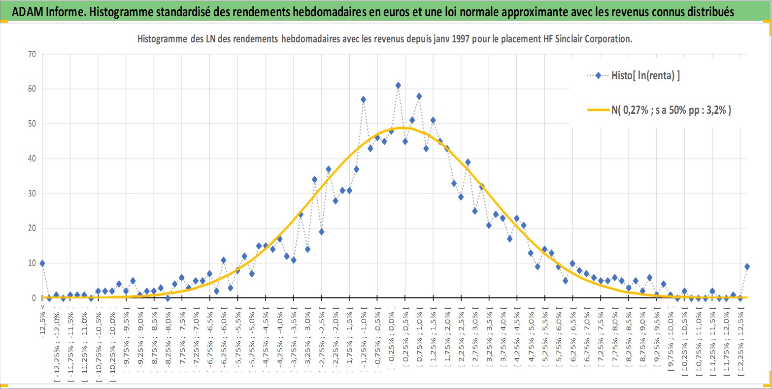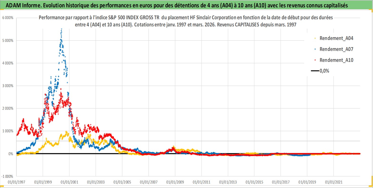 Site dédié aux investisseursPage dédiée sur site financeAnalyse des valorisations hebdomadaires de l'action HF Sinclair Corporation. Cet actif est cote en USD. Les valorisations sont en contrevaleur EURO et couvrent les semaines 1997W01 a 2026W13. Les revenus de cet actif financier sont pris en compte depuis la semaine 1997W12. La note ESG de cet actif n'est pas connue.