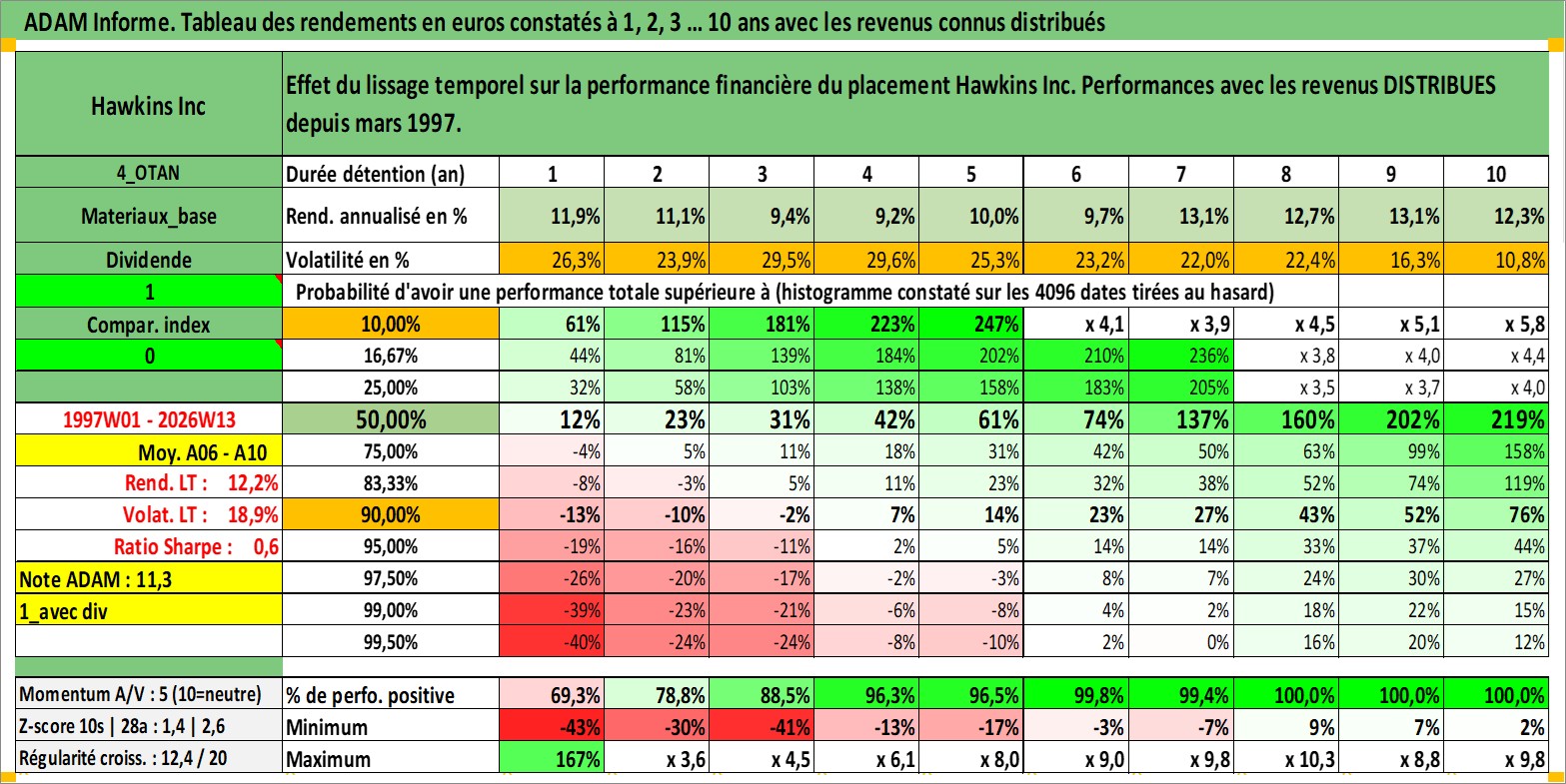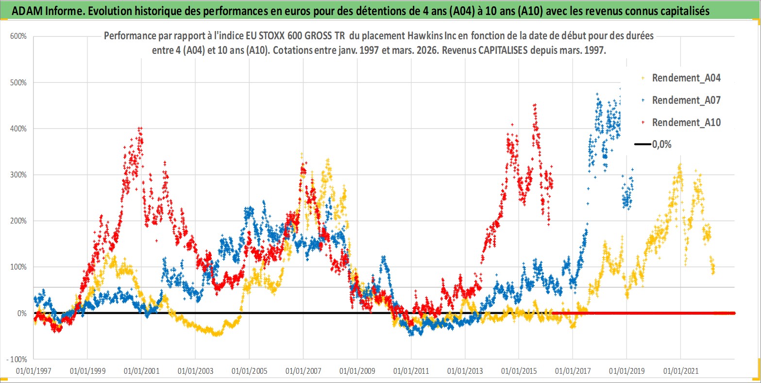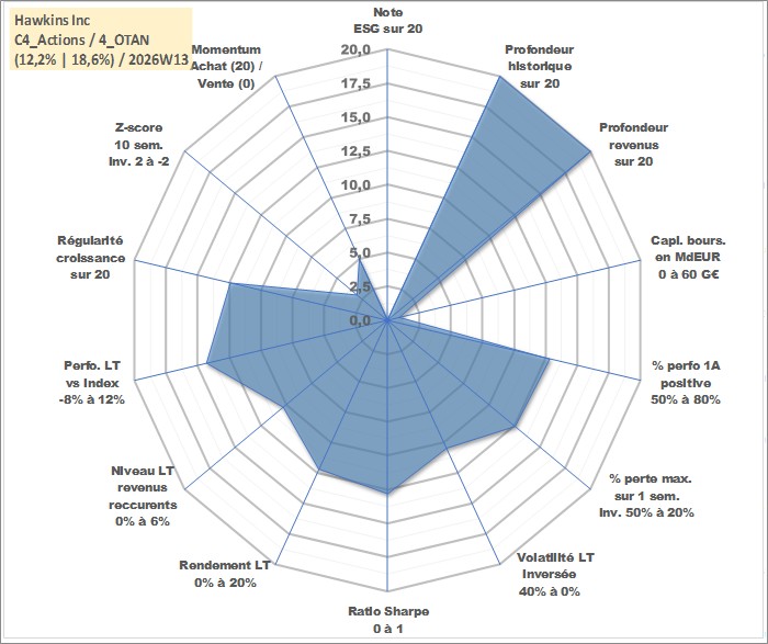 Site dédié aux investisseursPage dédiée sur site financeAnalyse des valorisations hebdomadaires de l'action Hawkins Inc. Cet actif est cote en USD. Les valorisations sont en contrevaleur EURO et couvrent les semaines 1997W01 a 2026W13. Les revenus de cet actif financier sont pris en compte depuis la semaine 1997W13. La note ESG de cet actif n'est pas connue.