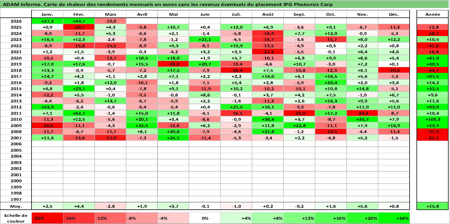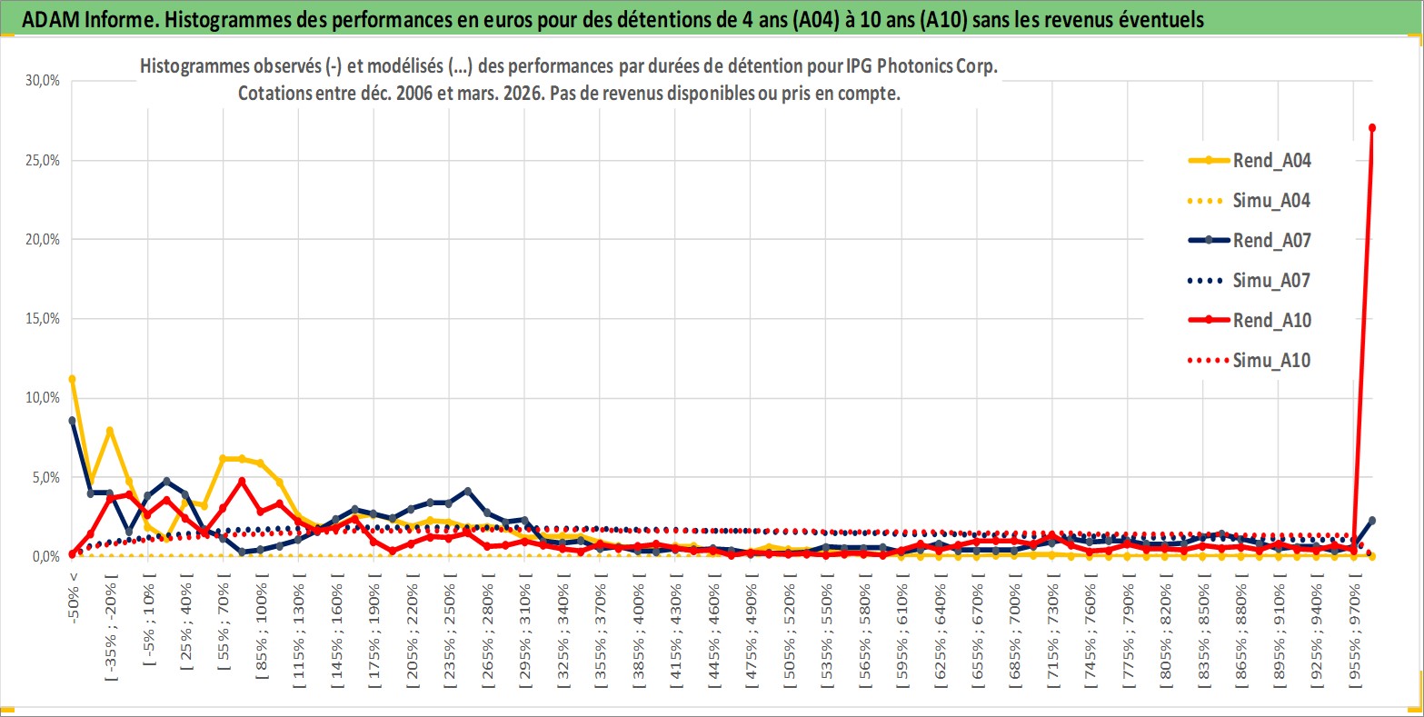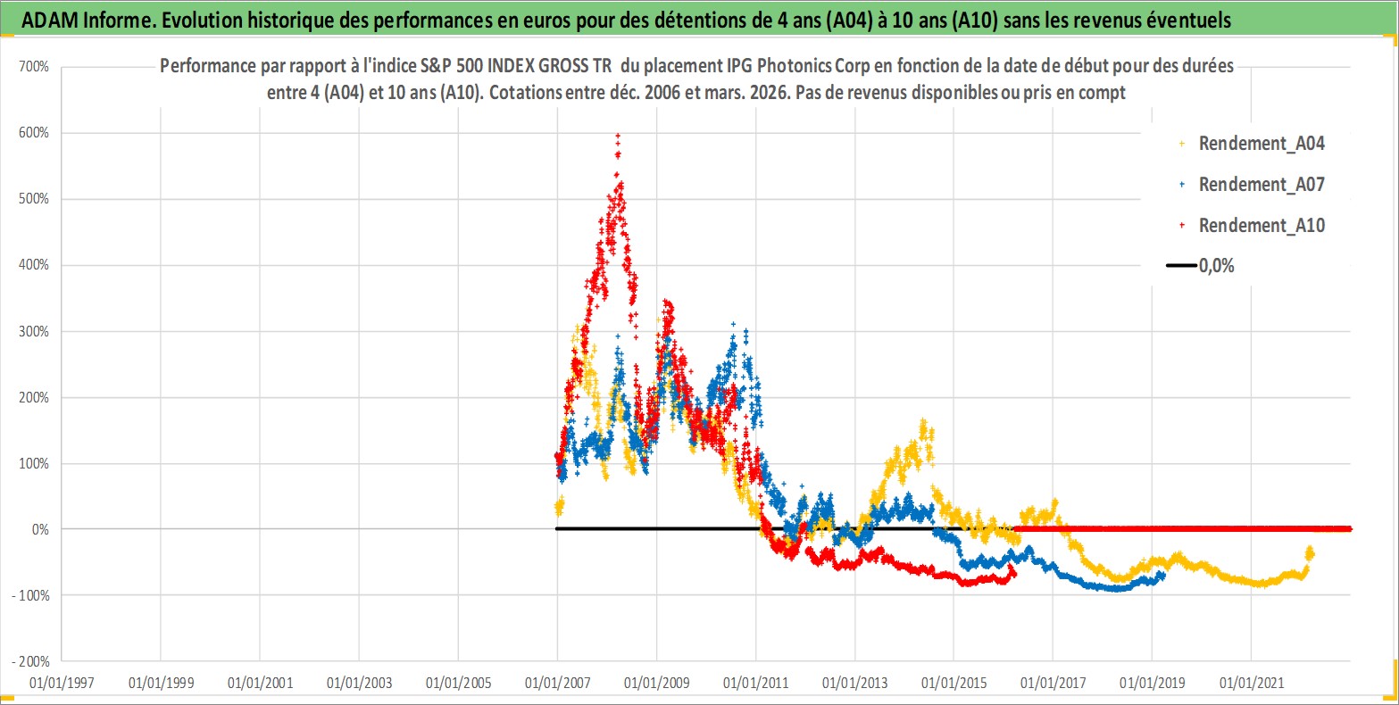 Site dédié aux investisseursPage dédiée sur site financeAnalyse des valorisations hebdomadaires de l'action IPG Photonics Corp. Cet actif est cote en USD. Les valorisations sont en contrevaleur EURO et couvrent les semaines 2006W50 a 2026W13. Les revenus de cet actif financier ne sont pas connus car non existants ou non disponibles sur le site Yahoo Finance. La note globale ESG de cet actif est estimee a 16.0 (apres rebasage entre 0 et 20).