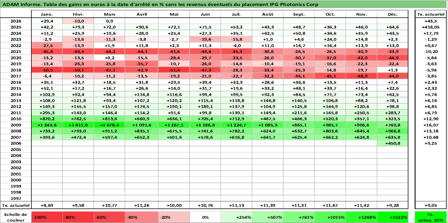 Dernière perfo 1 an en %