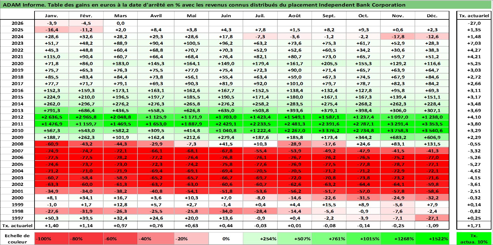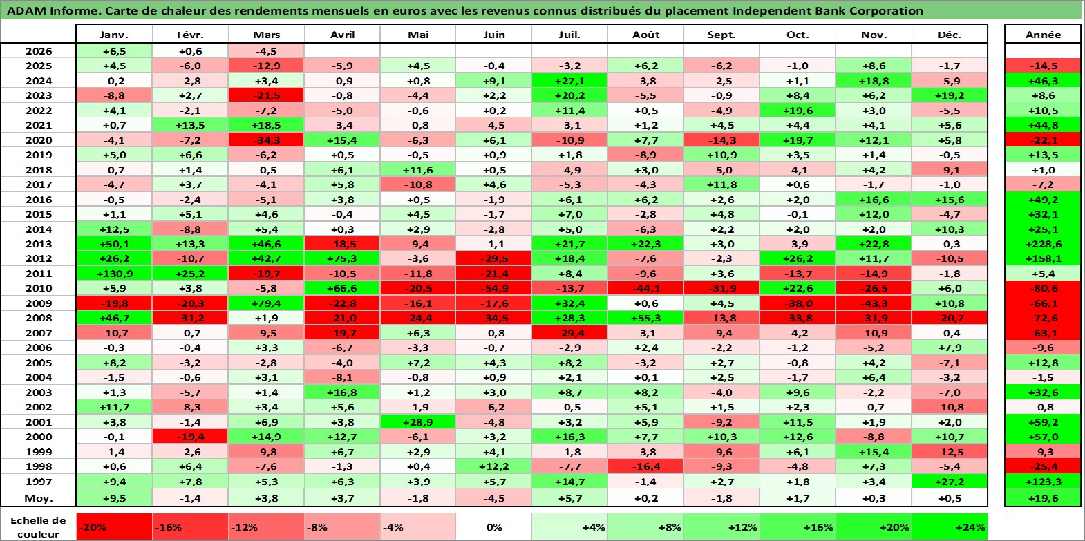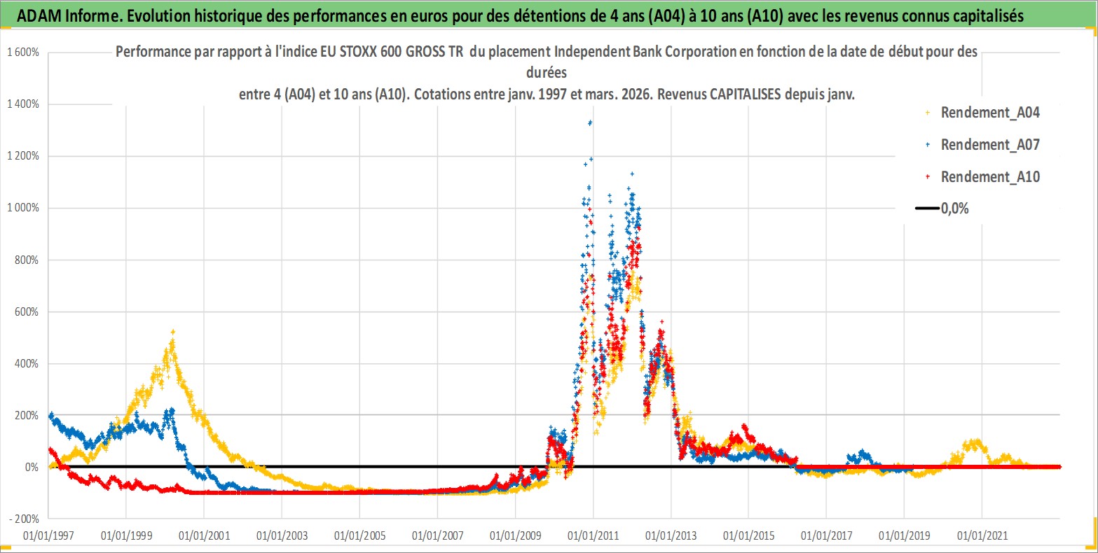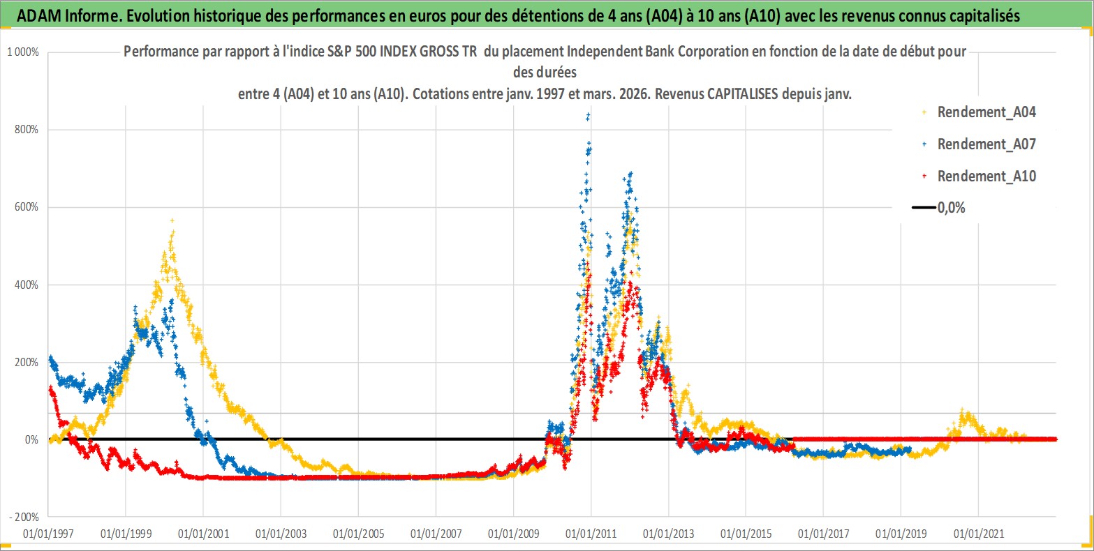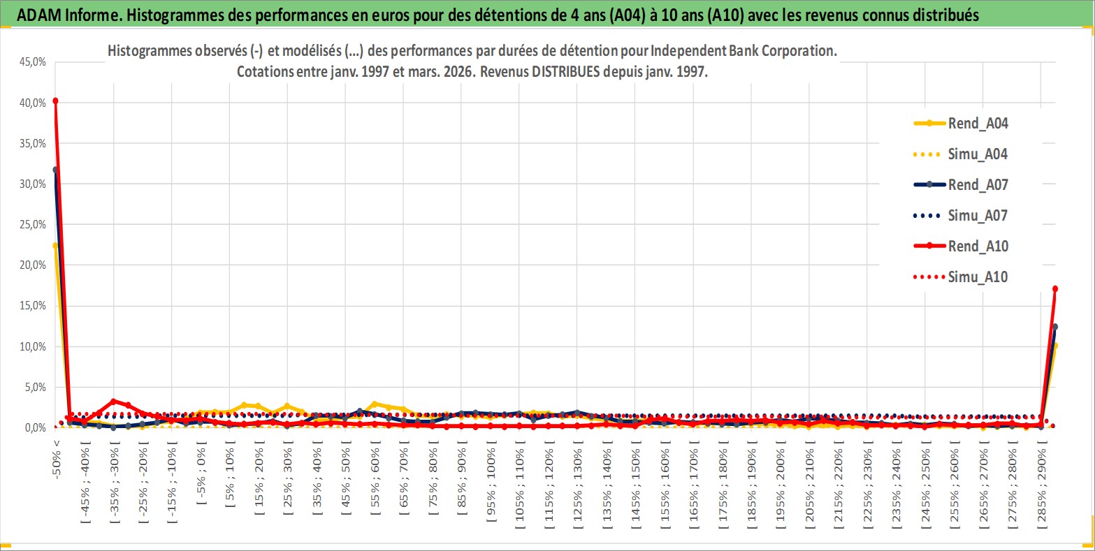 Site dédié aux investisseursPage dédiée sur site financeAnalyse des valorisations hebdomadaires de l'action Independent Bank Corporation. Cet actif est cote en USD. Les valorisations sont en contrevaleur EURO et couvrent les semaines 1997W01 a 2026W13. Les revenus de cet actif financier sont pris en compte depuis la semaine 1997W01. La note ESG de cet actif n'est pas connue.