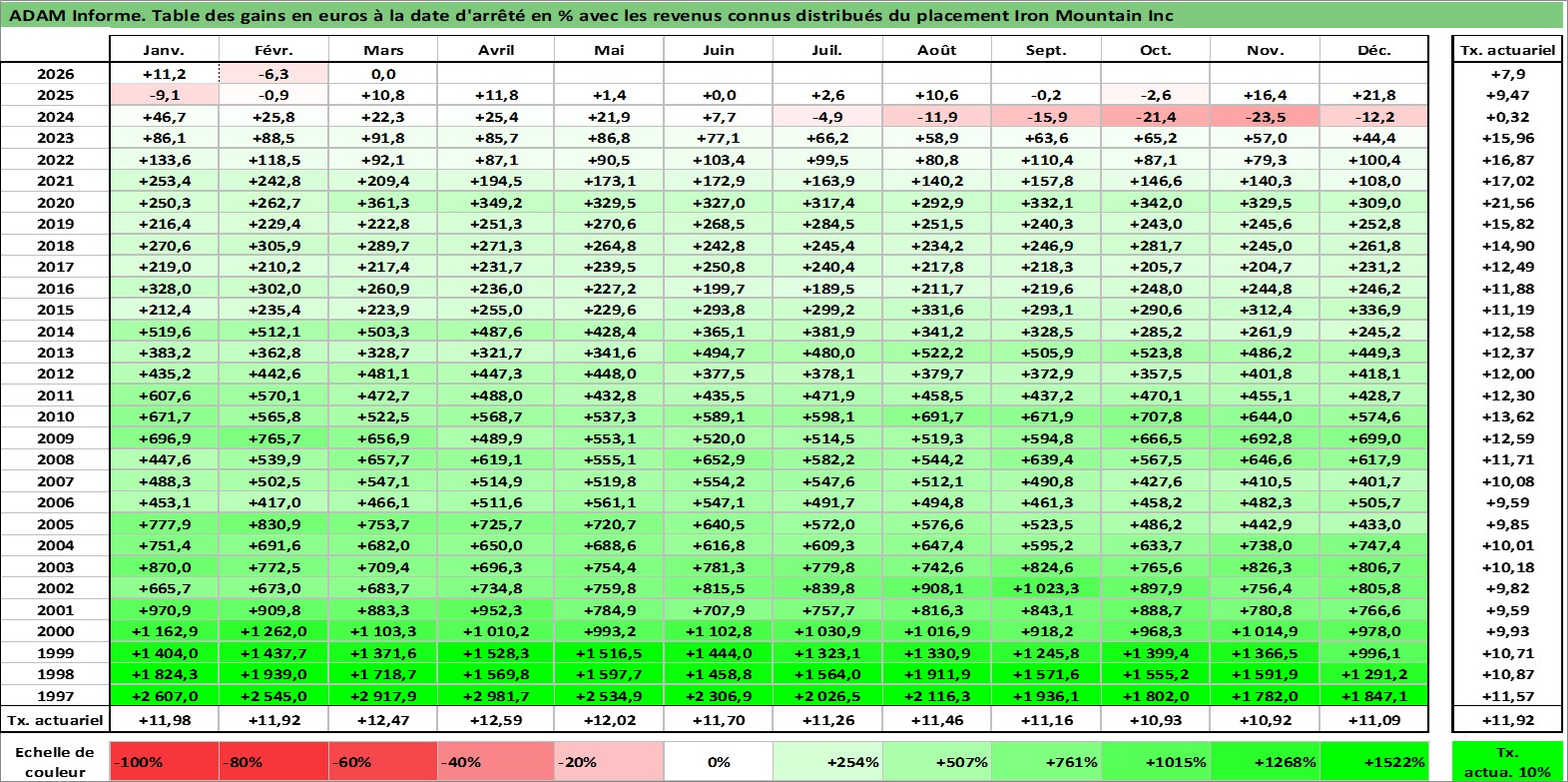 Dernière perfo 10 ans en %