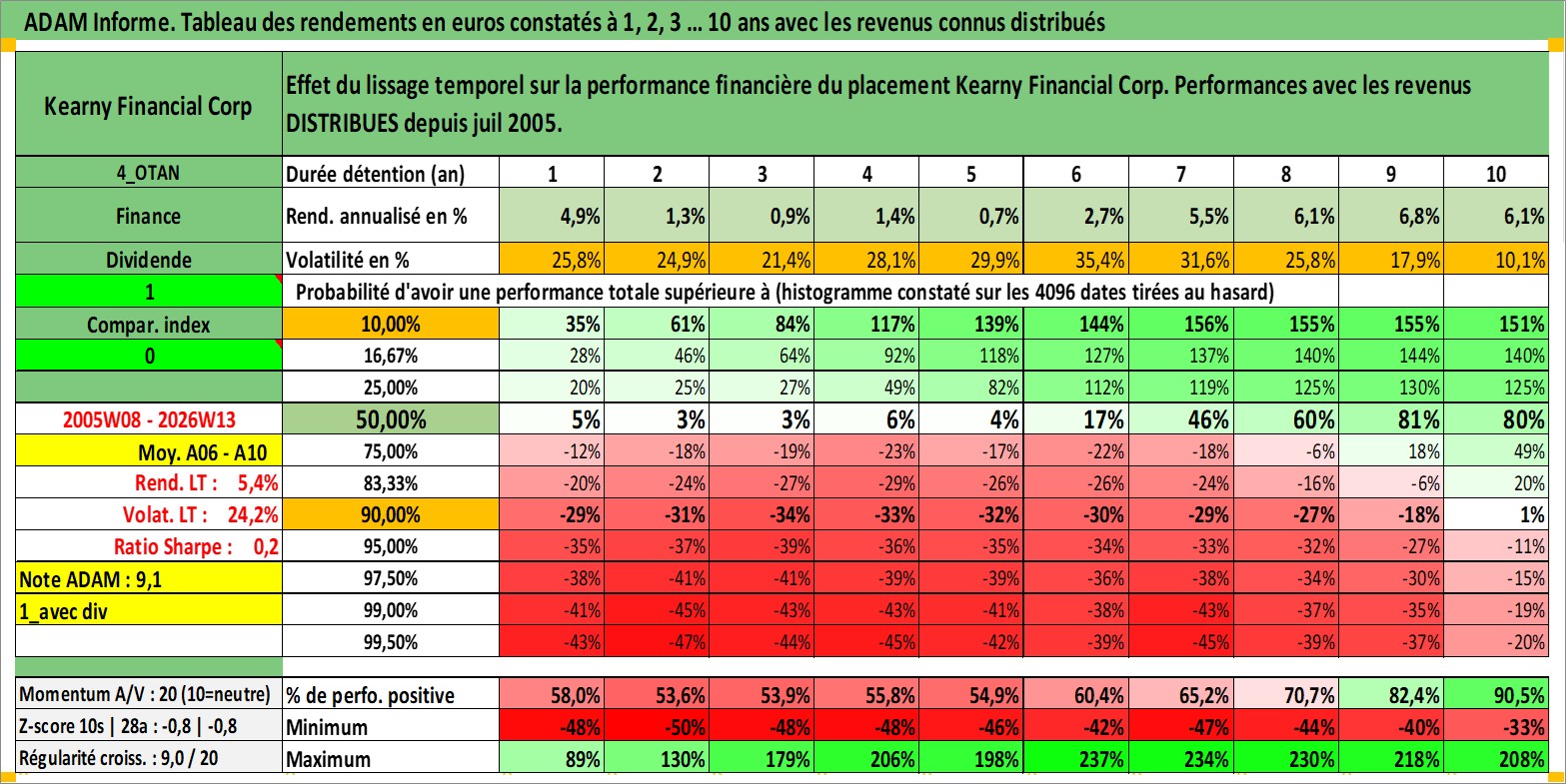 Site dédié aux investisseursPage dédiée sur site financeAnalyse des valorisations hebdomadaires de l'action Kearny Financial Corp. Cet actif est cote en USD. Les valorisations sont en contrevaleur EURO et couvrent les semaines 2005W08 a 2026W13. Les revenus de cet actif financier sont pris en compte depuis la semaine 2005W28. La note ESG de cet actif n'est pas connue.