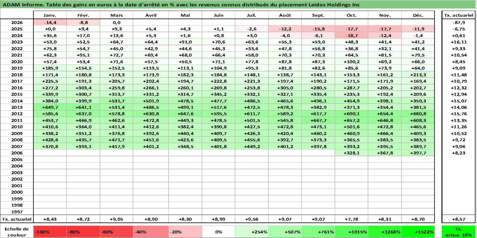 Rendement LT %