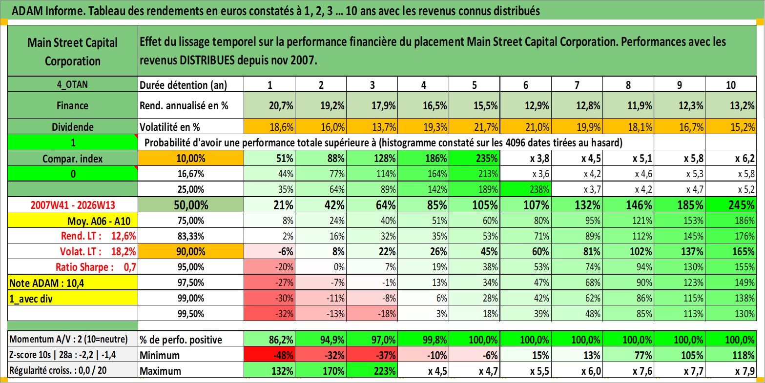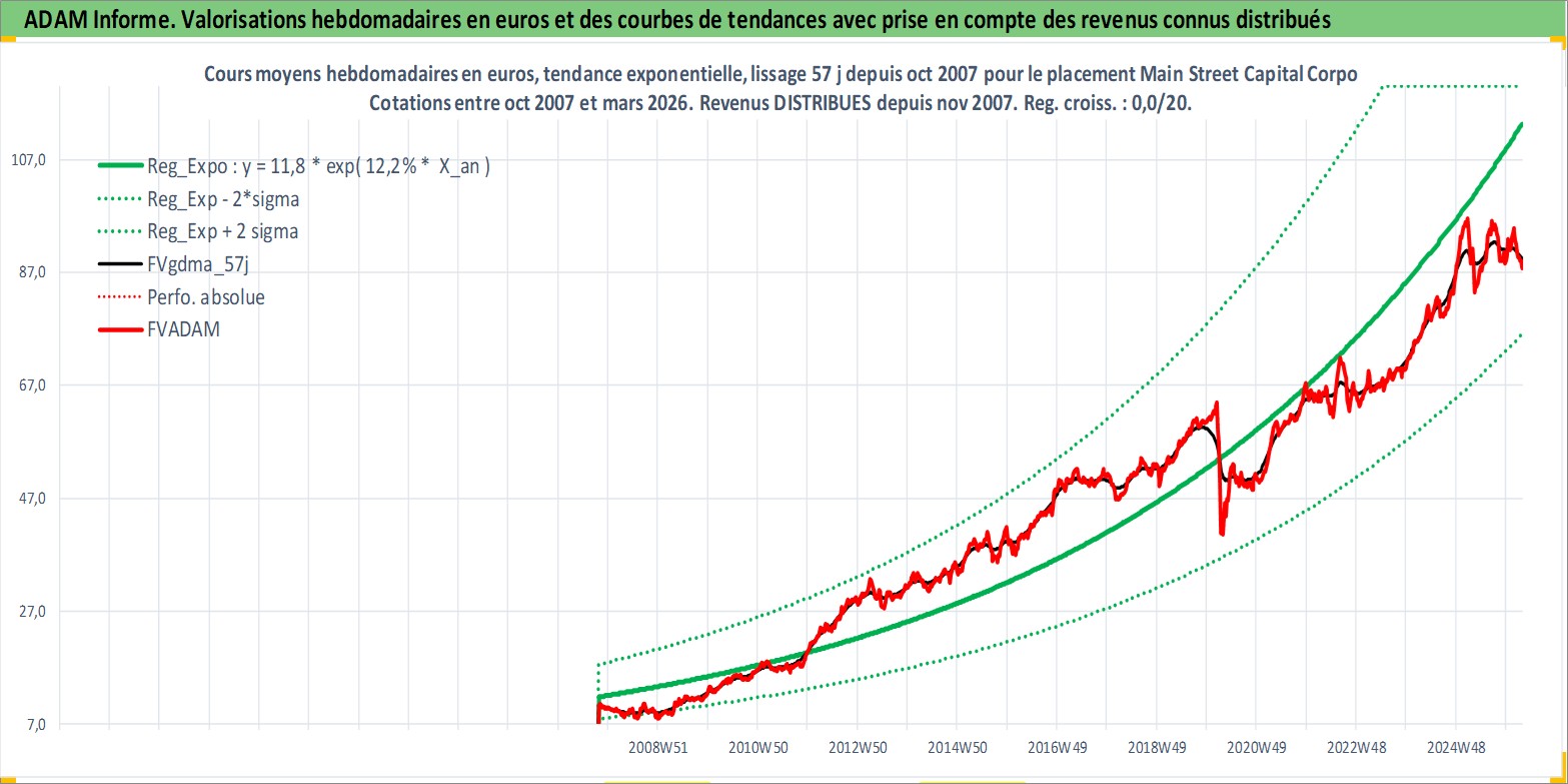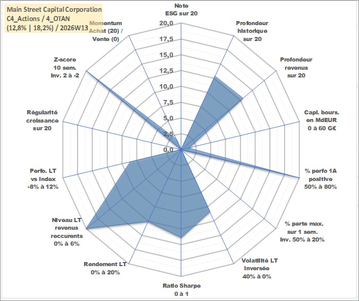Site dédié aux investisseursPage dédiée sur site financeAnalyse des valorisations hebdomadaires de l'action Main Street Capital Corporation. Cet actif est cote en USD. Les valorisations sont en contrevaleur EURO et couvrent les semaines 2007W41 a 2026W13. Les revenus de cet actif financier sont pris en compte depuis la semaine 2007W46. La note ESG de cet actif n'est pas connue.