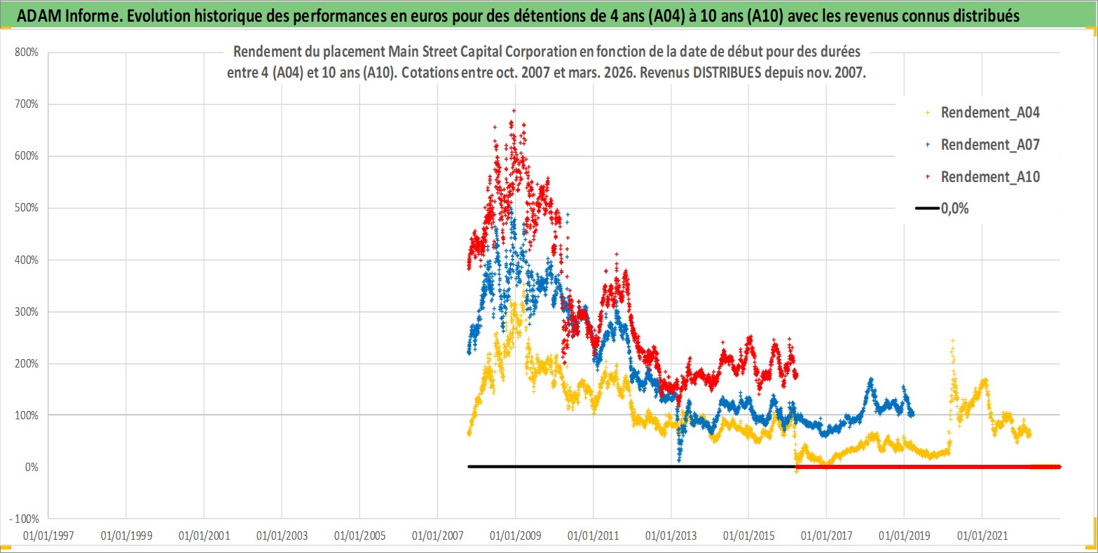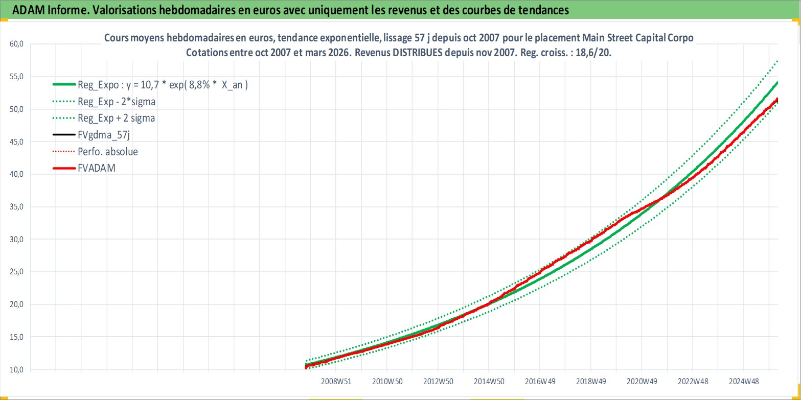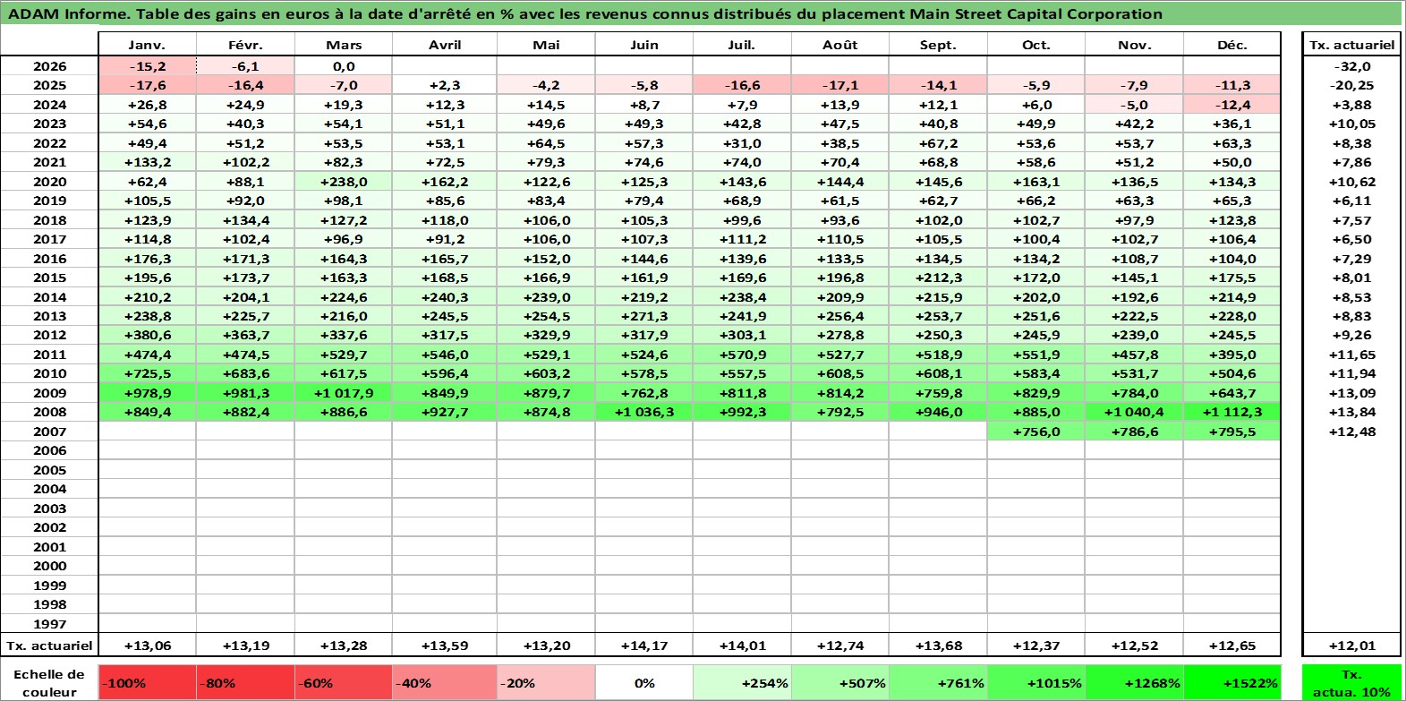 Site dédié aux investisseursPage dédiée sur site financeAnalyse des valorisations hebdomadaires de l'action Main Street Capital Corporation. Cet actif est cote en USD. Les valorisations sont en contrevaleur EURO et couvrent les semaines 2007W41 a 2026W13. Les revenus de cet actif financier sont pris en compte depuis la semaine 2007W46. La note ESG de cet actif n'est pas connue.