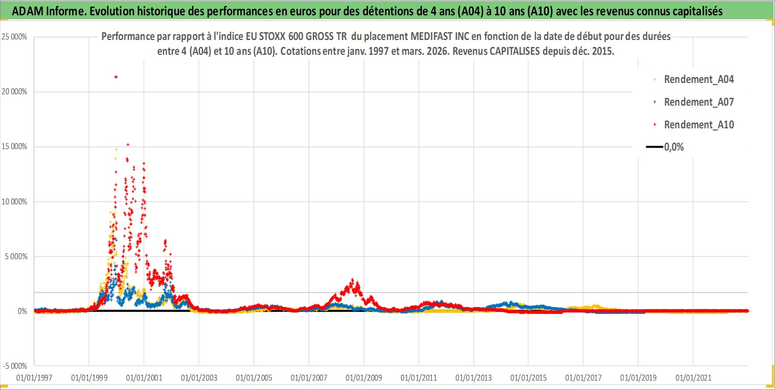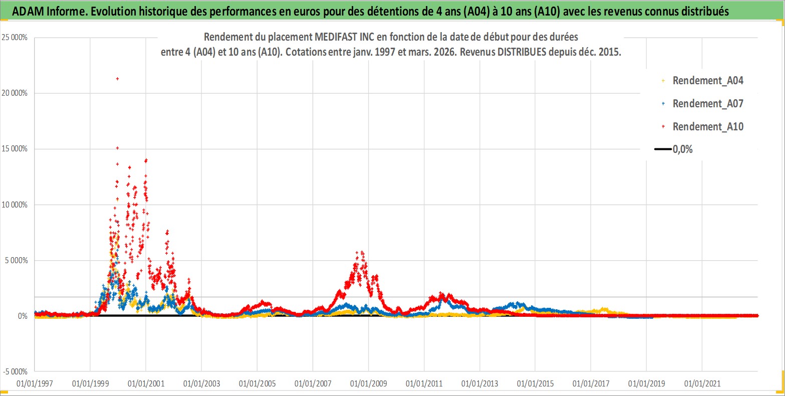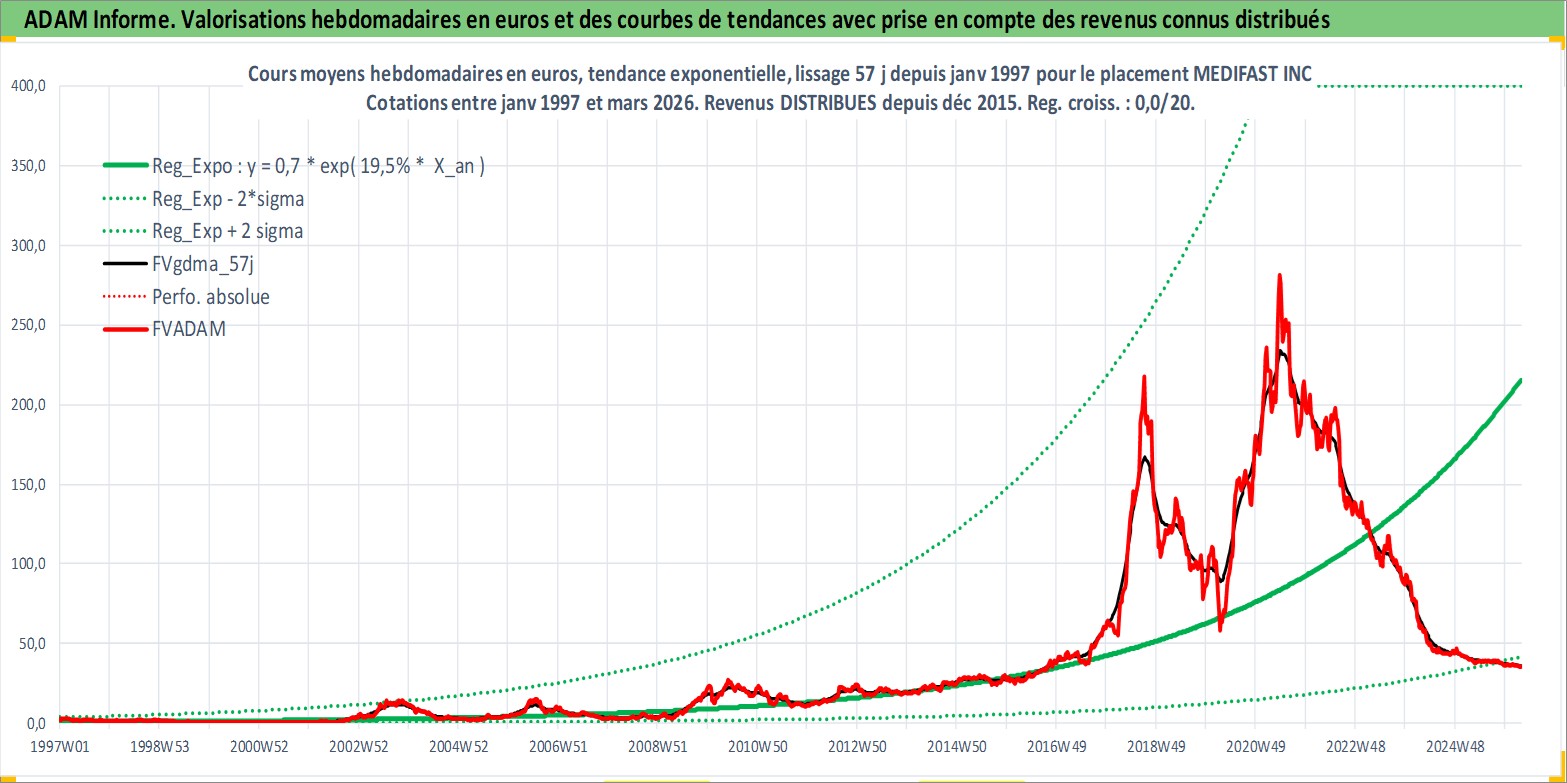 Site dédié aux investisseursPage dédiée sur site financeAnalyse des valorisations hebdomadaires de l'action MEDIFAST INC. Cet actif est cote en USD. Les valorisations sont en contrevaleur EURO et couvrent les semaines 1997W01 a 2026W13. Les revenus de cet actif financier sont pris en compte depuis la semaine 2015W52. La note ESG de cet actif n'est pas connue.