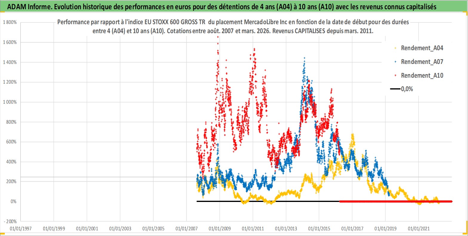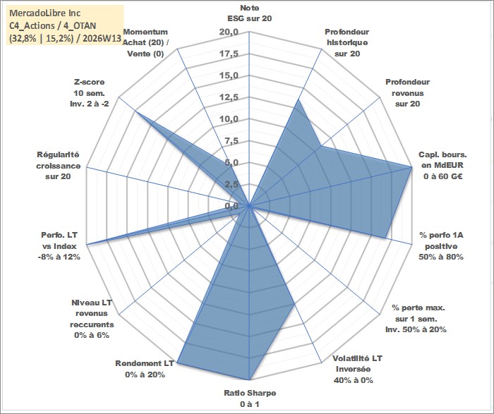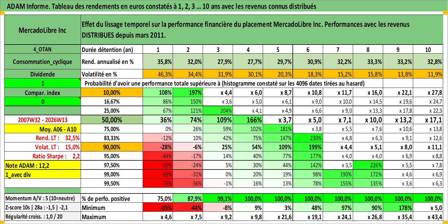 Site dédié aux investisseursPage dédiée sur site financeAnalyse des valorisations hebdomadaires de l'action MercadoLibre Inc. Cet actif est cote en USD. Les valorisations sont en contrevaleur EURO et couvrent les semaines 2007W32 a 2026W13. Les revenus de cet actif financier sont pris en compte depuis la semaine 2011W13. La note ESG de cet actif n'est pas connue.