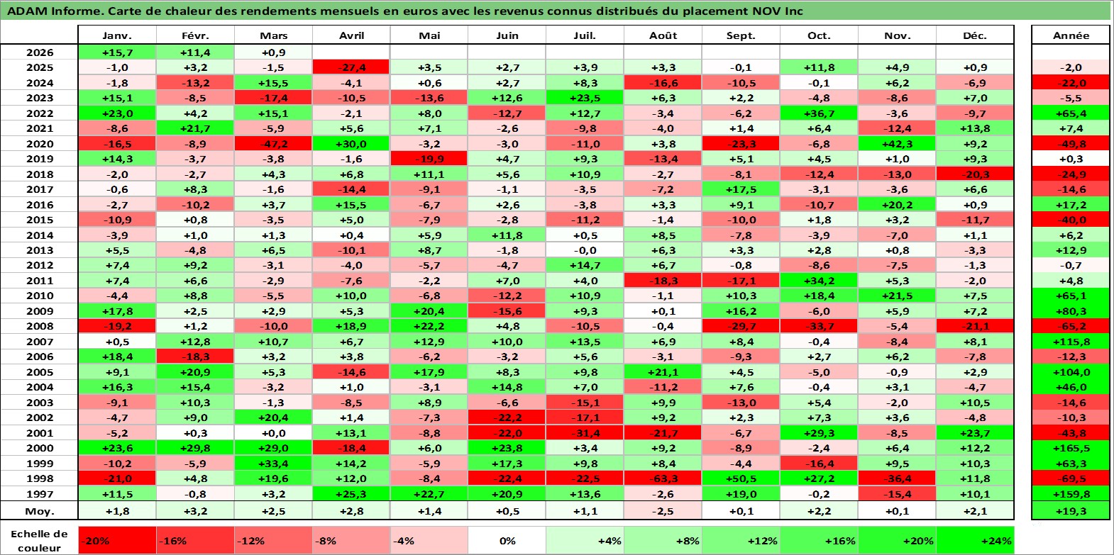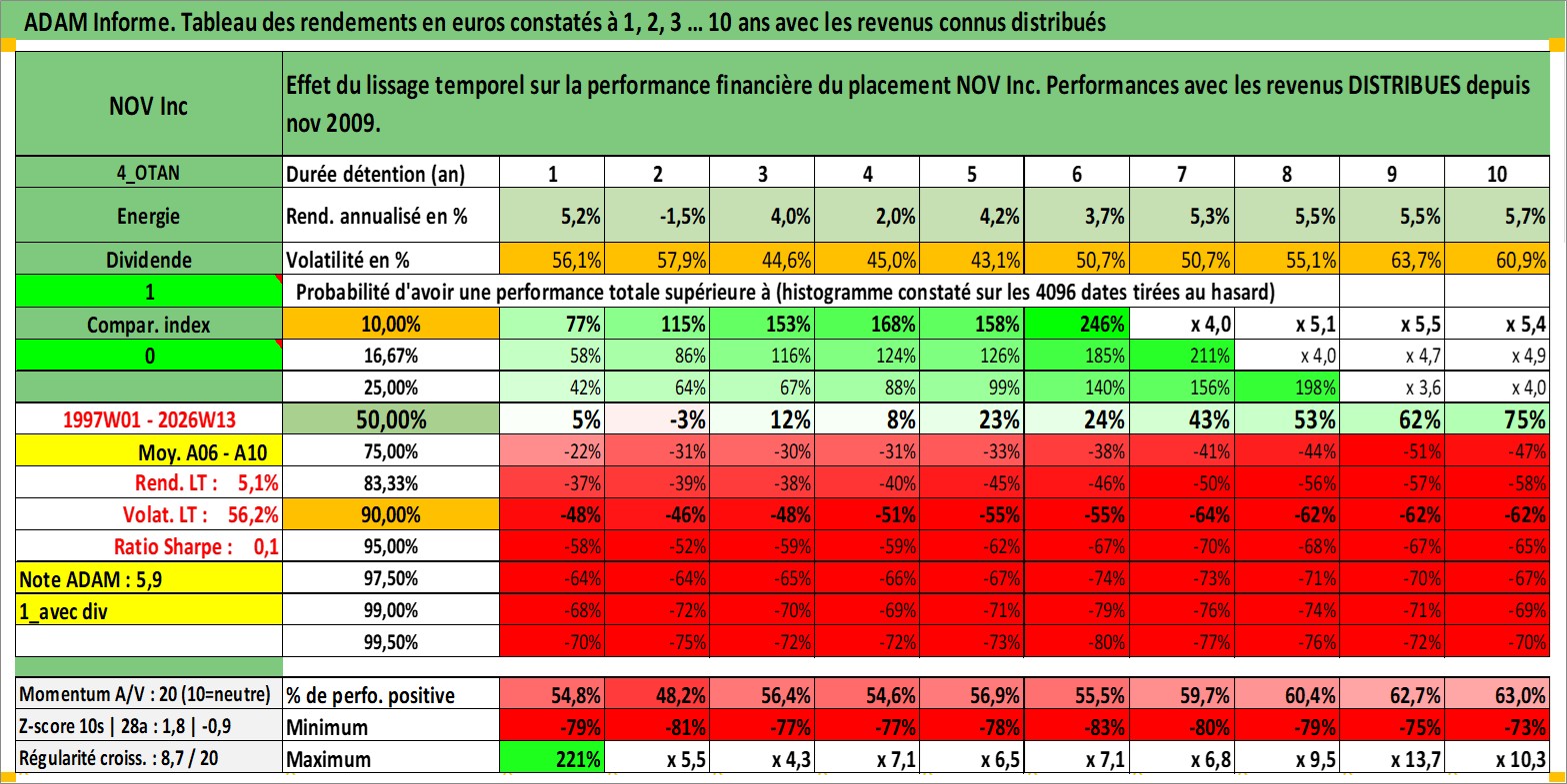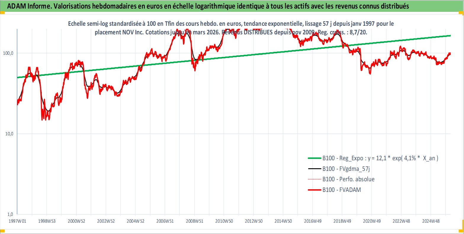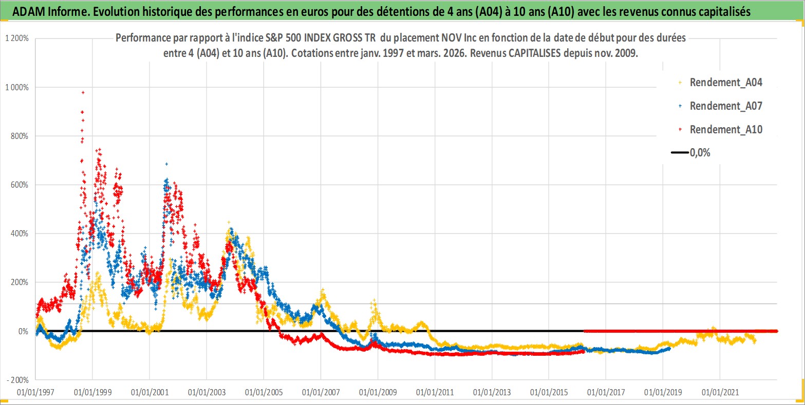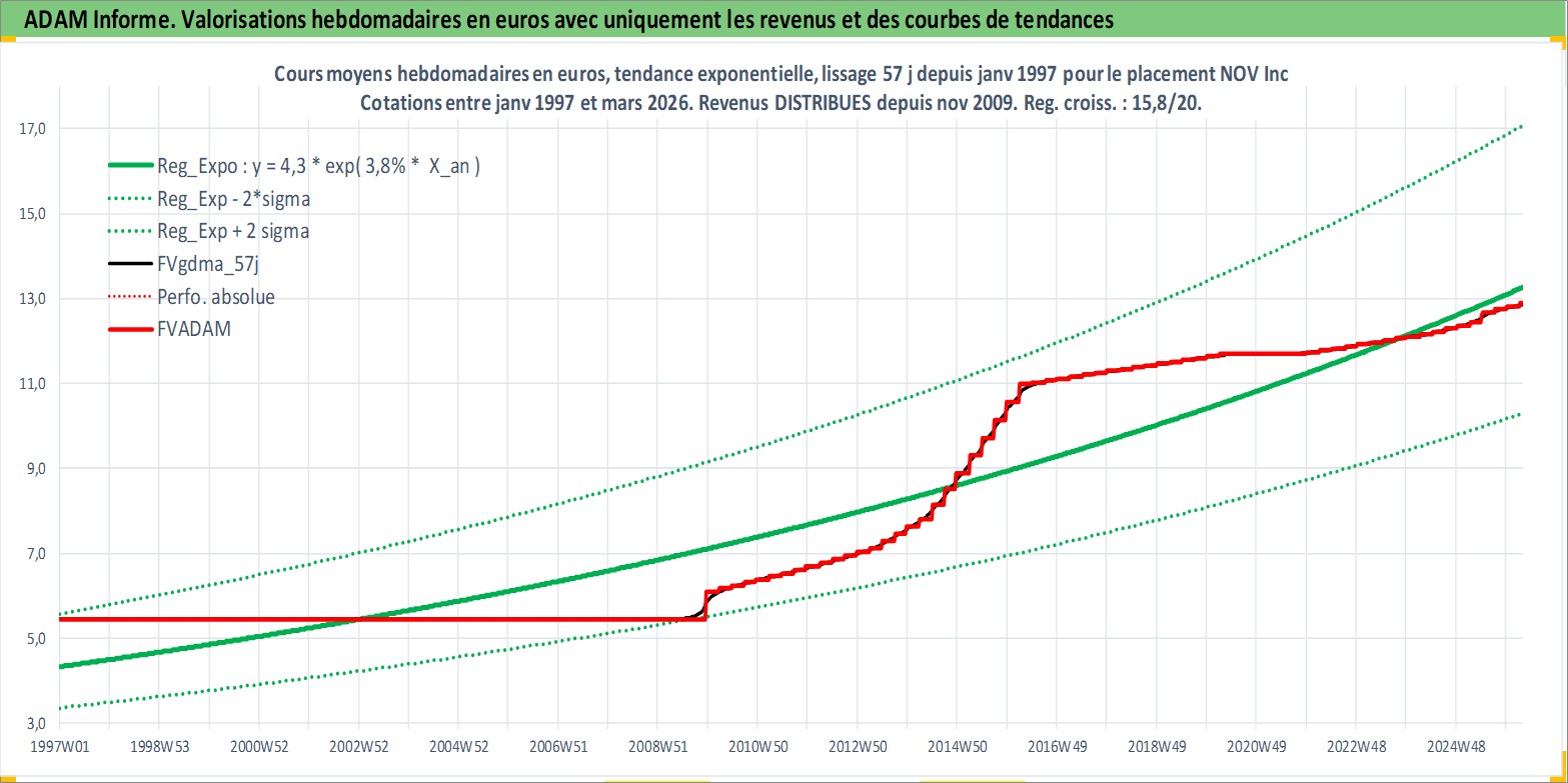 Site dédié aux investisseursPage dédiée sur site financeAnalyse des valorisations hebdomadaires de l'action NOV Inc. Cet actif est cote en USD. Les valorisations sont en contrevaleur EURO et couvrent les semaines 1997W01 a 2026W13. Les revenus de cet actif financier sont pris en compte depuis la semaine 2009W49. La note globale ESG de cet actif est estimee a 4.0 (apres rebasage entre 0 et 20).