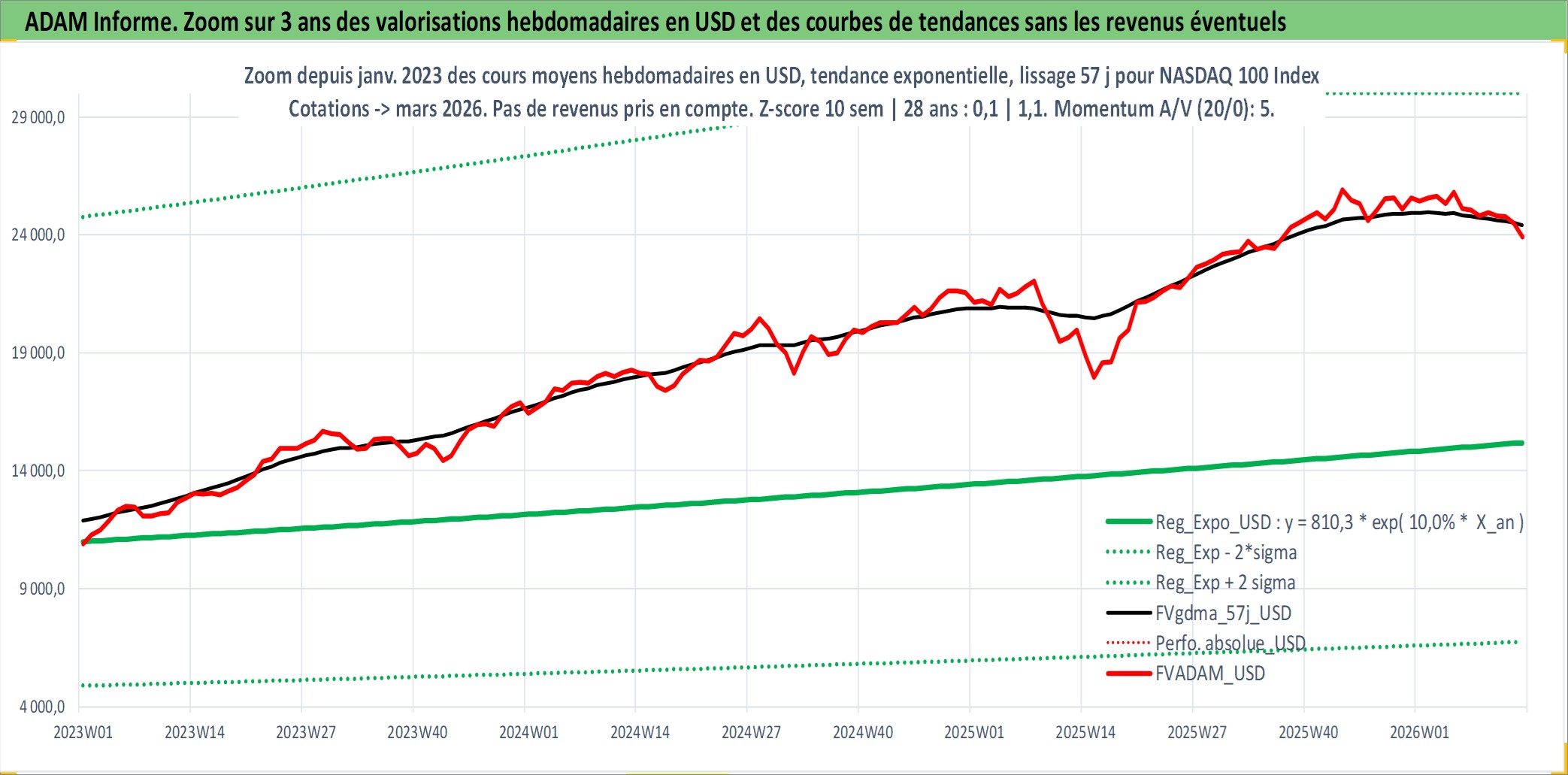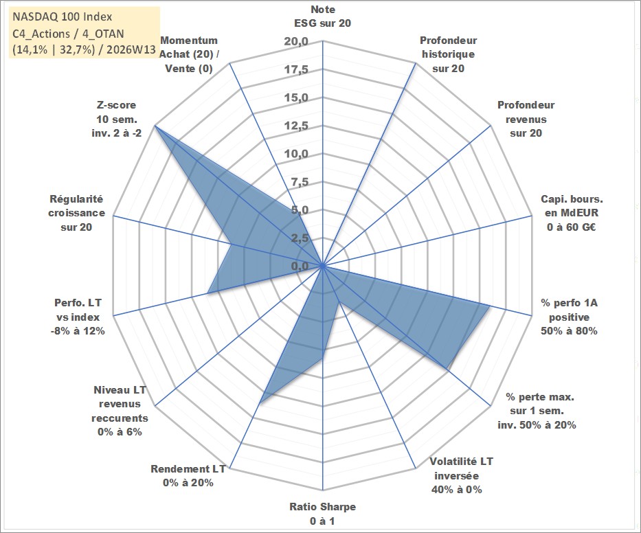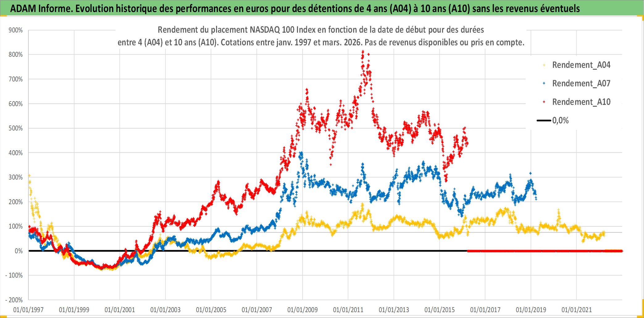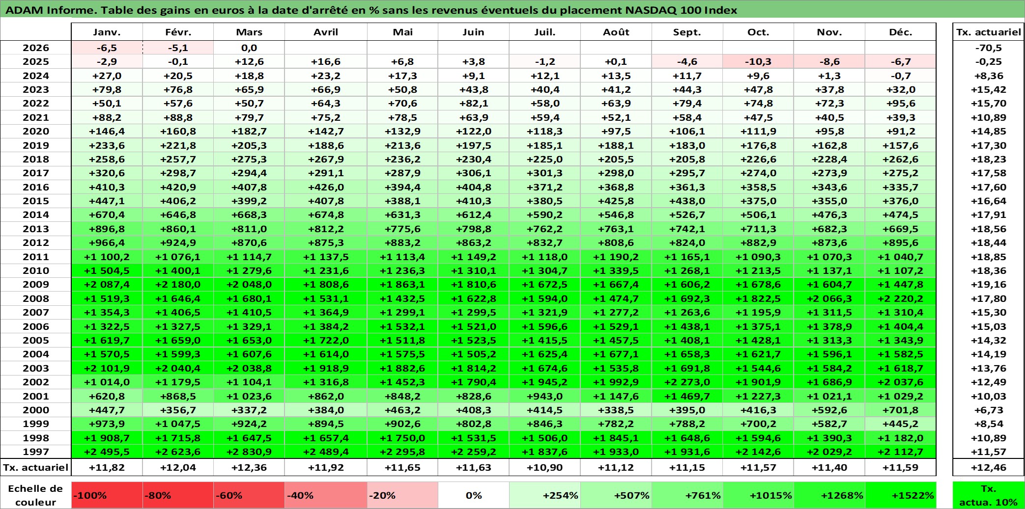 Site dédié aux investisseursPage dédiée sur site financeAnalyse des valorisations hebdomadaires de l'actif NASDAQ 100 Index. Cet actif est cote en USD. Les valorisations sont en contrevaleur EURO et couvrent les semaines 1997W01 a 2026W13. Les revenus de cet actif financier ne sont pas connus car non existants ou non disponibles sur le site Yahoo Finance. La note ESG de cet actif n'est pas connue.