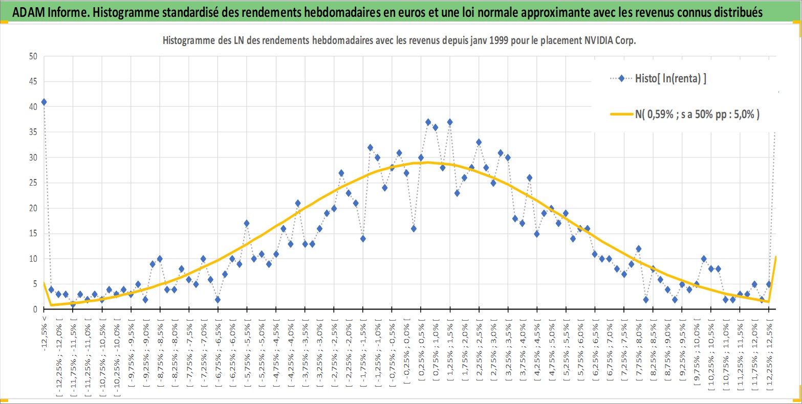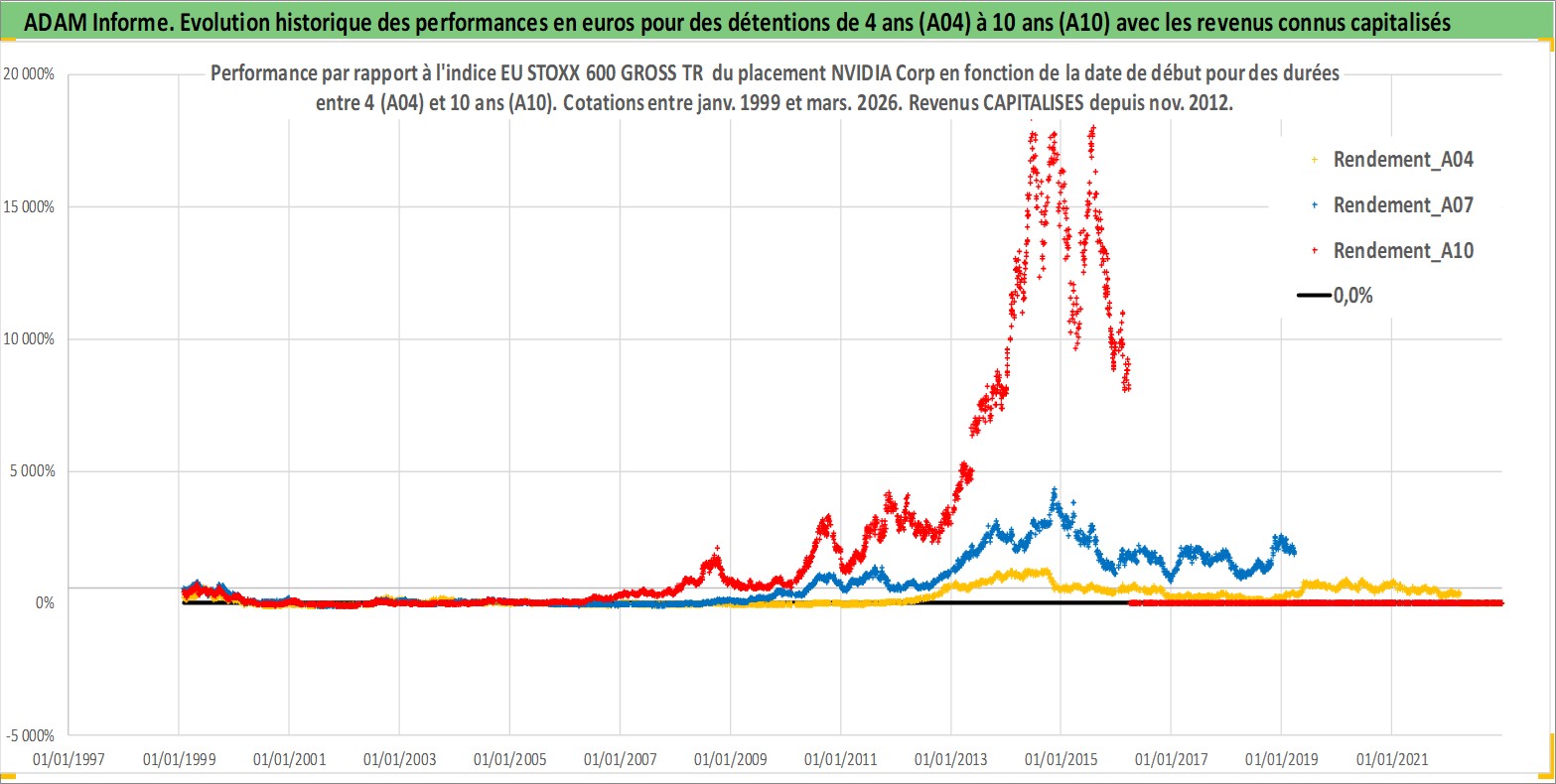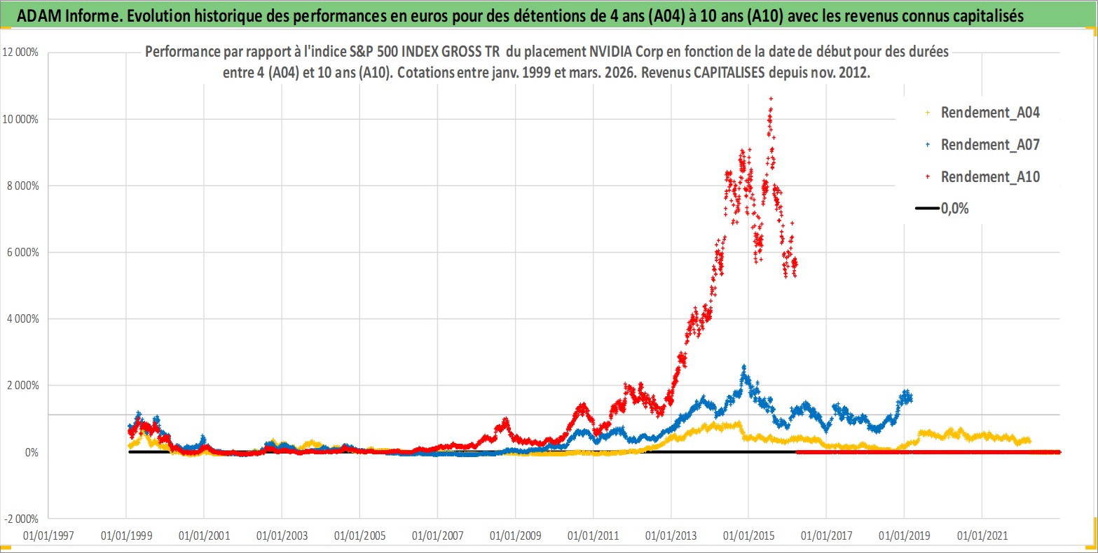 Site dédié aux investisseursPage dédiée sur site financeAnalyse des valorisations hebdomadaires de l'action NVIDIA Corp. Cet actif est cote en USD. Les valorisations sont en contrevaleur EURO et couvrent les semaines 1999W03 a 2026W13. Les revenus de cet actif financier sont pris en compte depuis la semaine 2012W47. La note globale ESG de cet actif est estimee a 15.0 (apres rebasage entre 0 et 20).