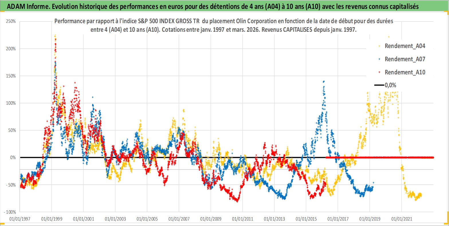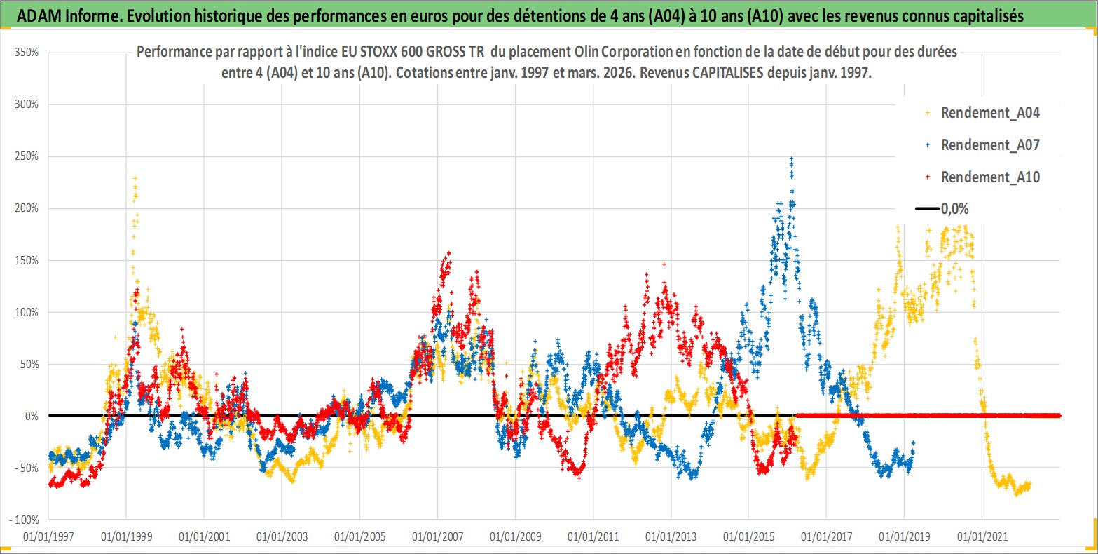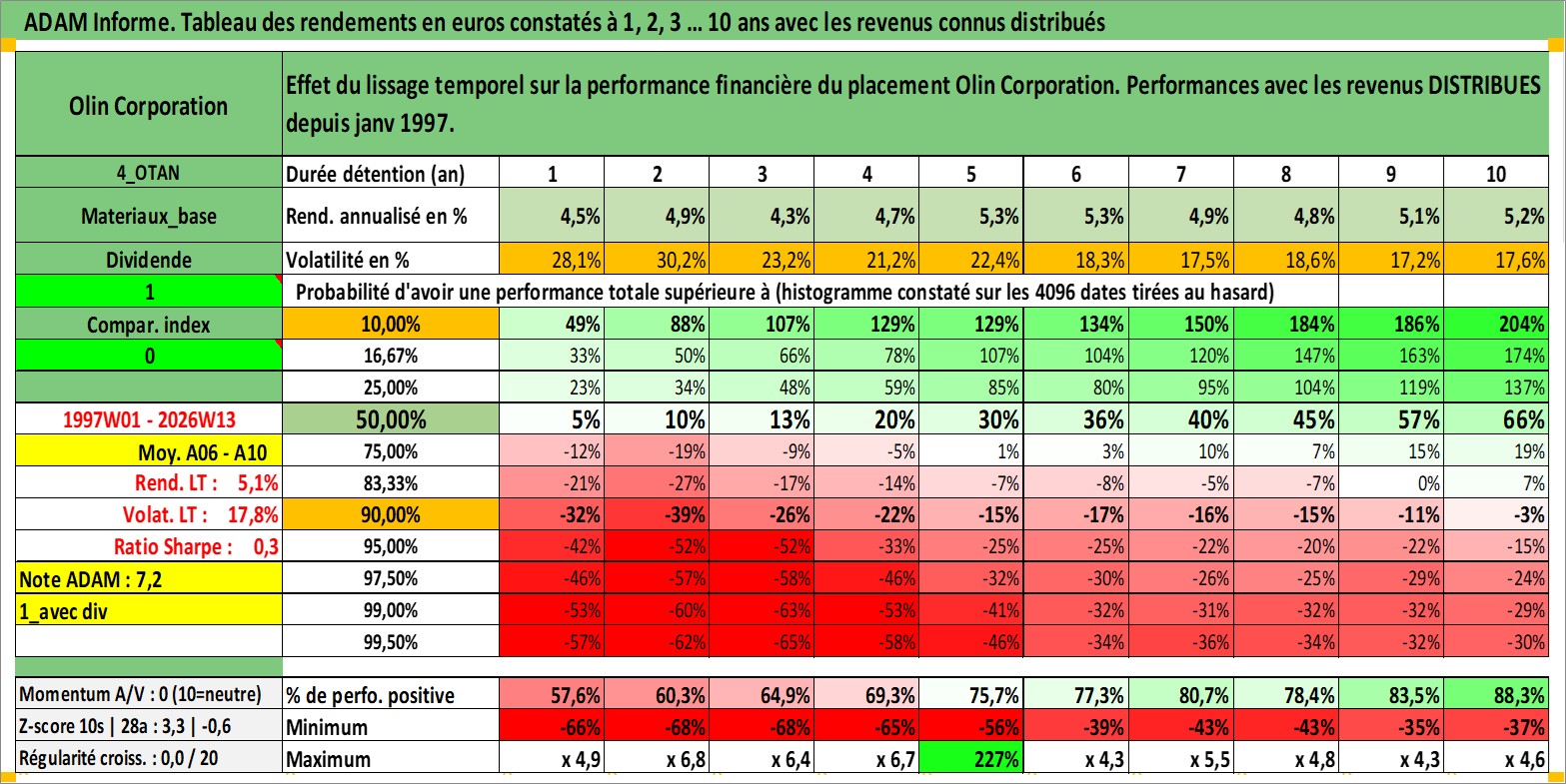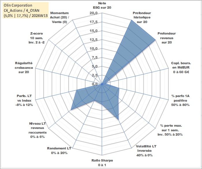 Site dédié aux investisseursPage dédiée sur site financeAnalyse des valorisations hebdomadaires de l'action Olin Corporation. Cet actif est cote en USD. Les valorisations sont en contrevaleur EURO et couvrent les semaines 1997W01 a 2026W13. Les revenus de cet actif financier sont pris en compte depuis la semaine 1997W02. La note ESG de cet actif n'est pas connue.