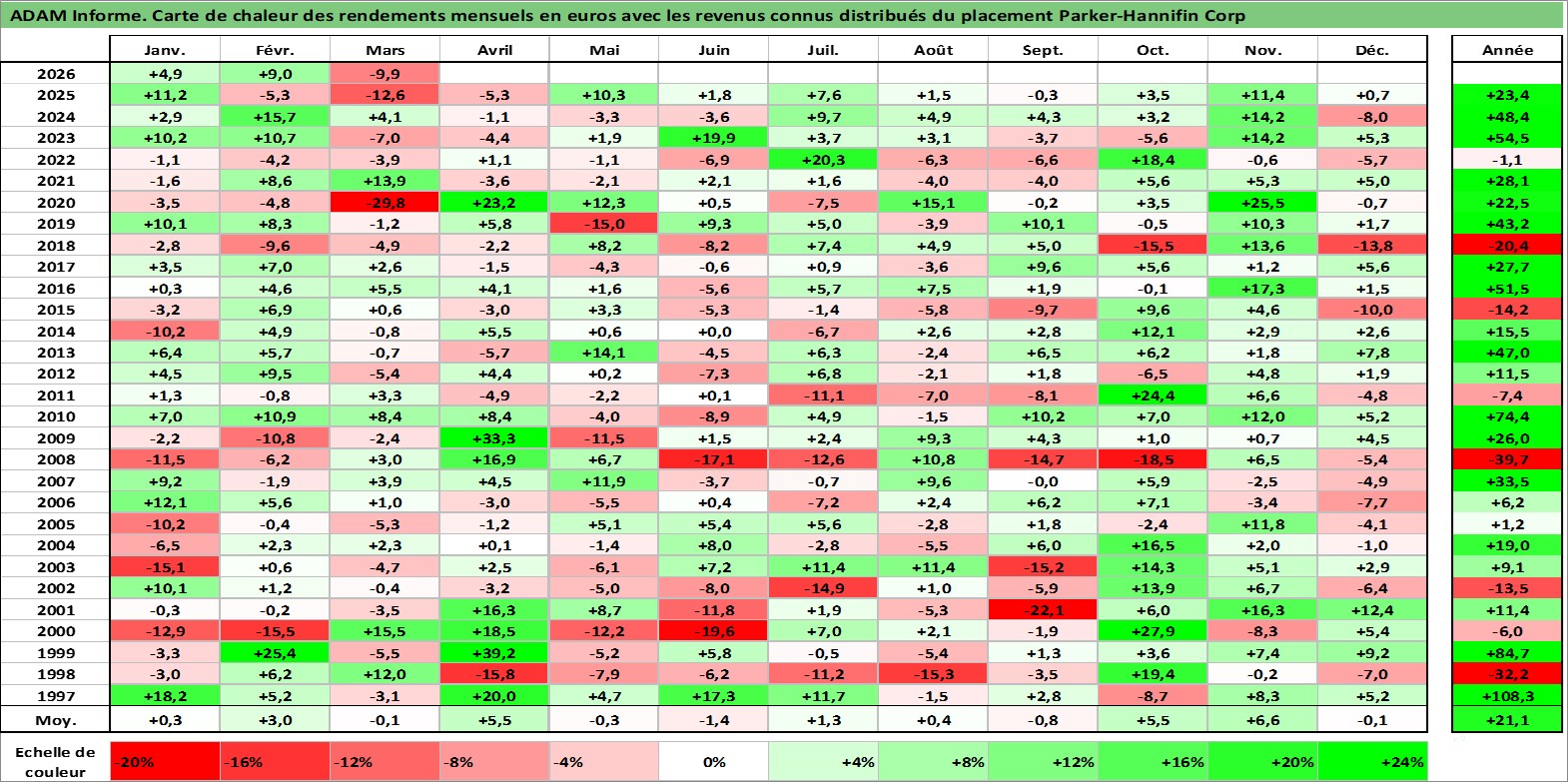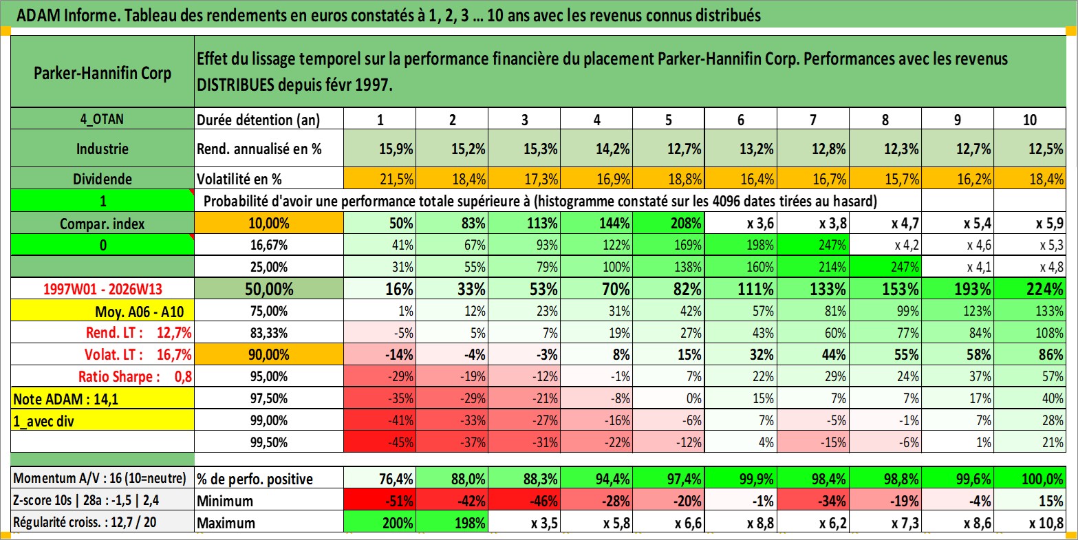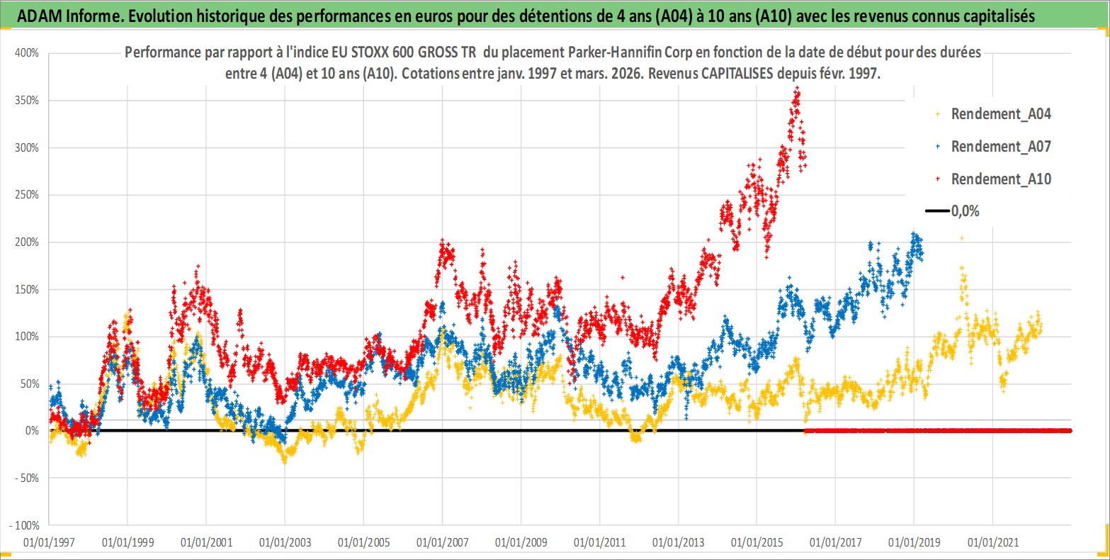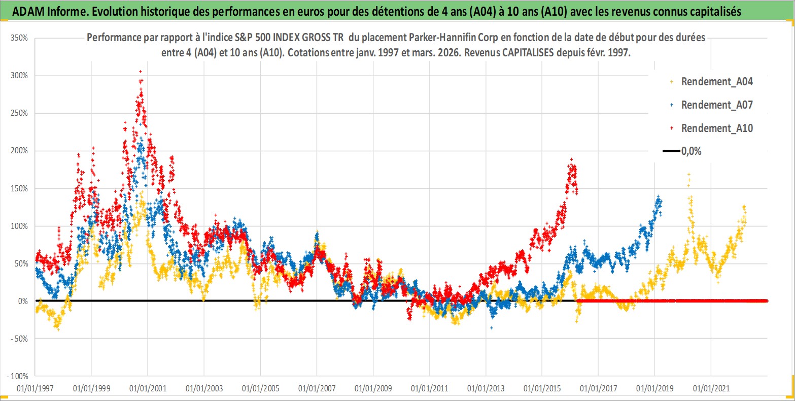 Site dédié aux investisseursPage dédiée sur site financeAnalyse des valorisations hebdomadaires de l'action Parker-Hannifin Corp. Cet actif est cote en USD. Les valorisations sont en contrevaleur EURO et couvrent les semaines 1997W01 a 2026W13. Les revenus de cet actif financier sont pris en compte depuis la semaine 1997W08. La note globale ESG de cet actif est estimee a 6.0 (apres rebasage entre 0 et 20).