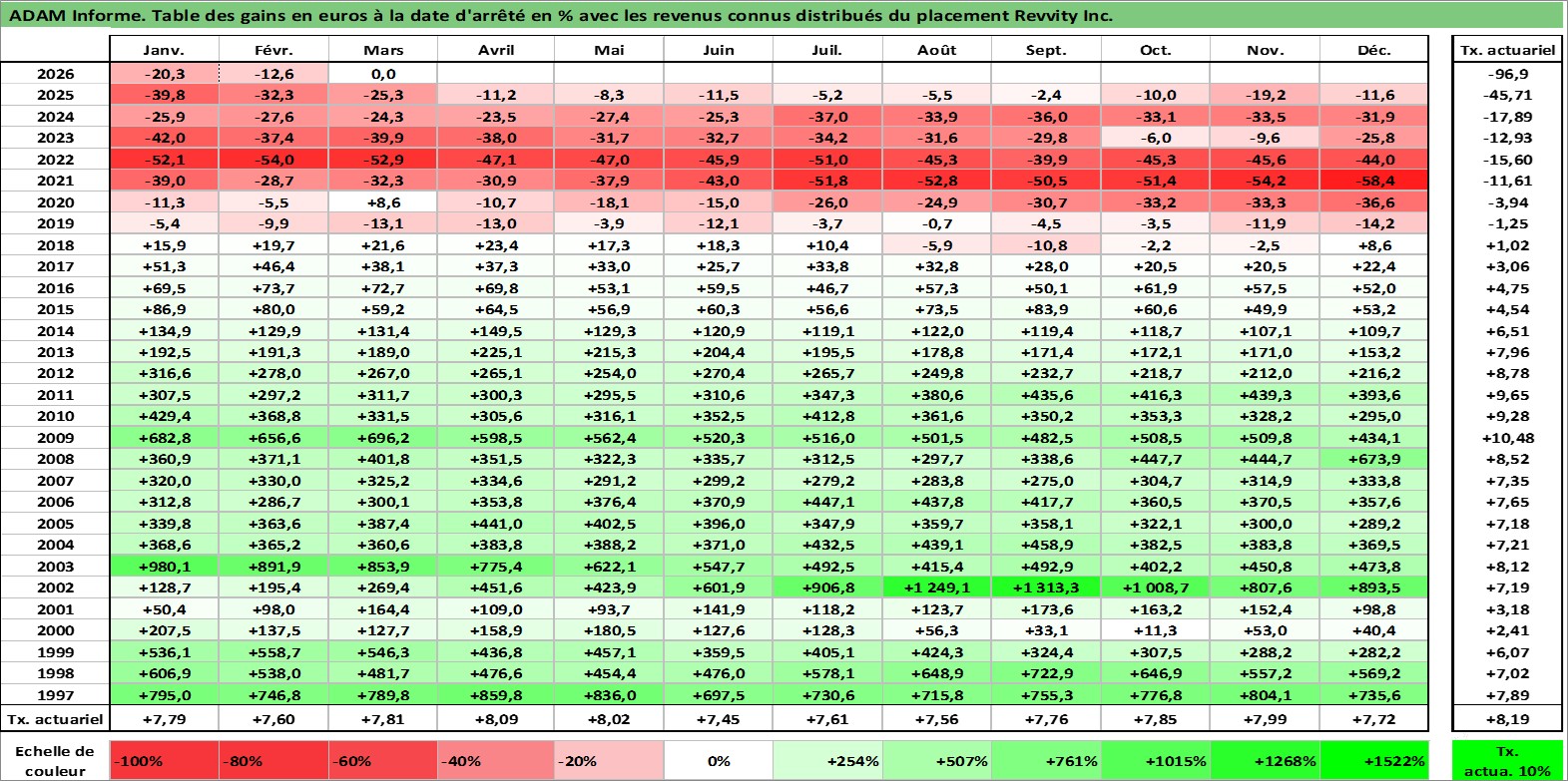 Dernière perfo 1 an en %