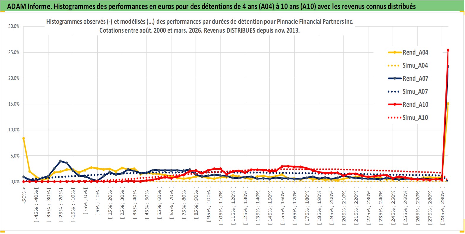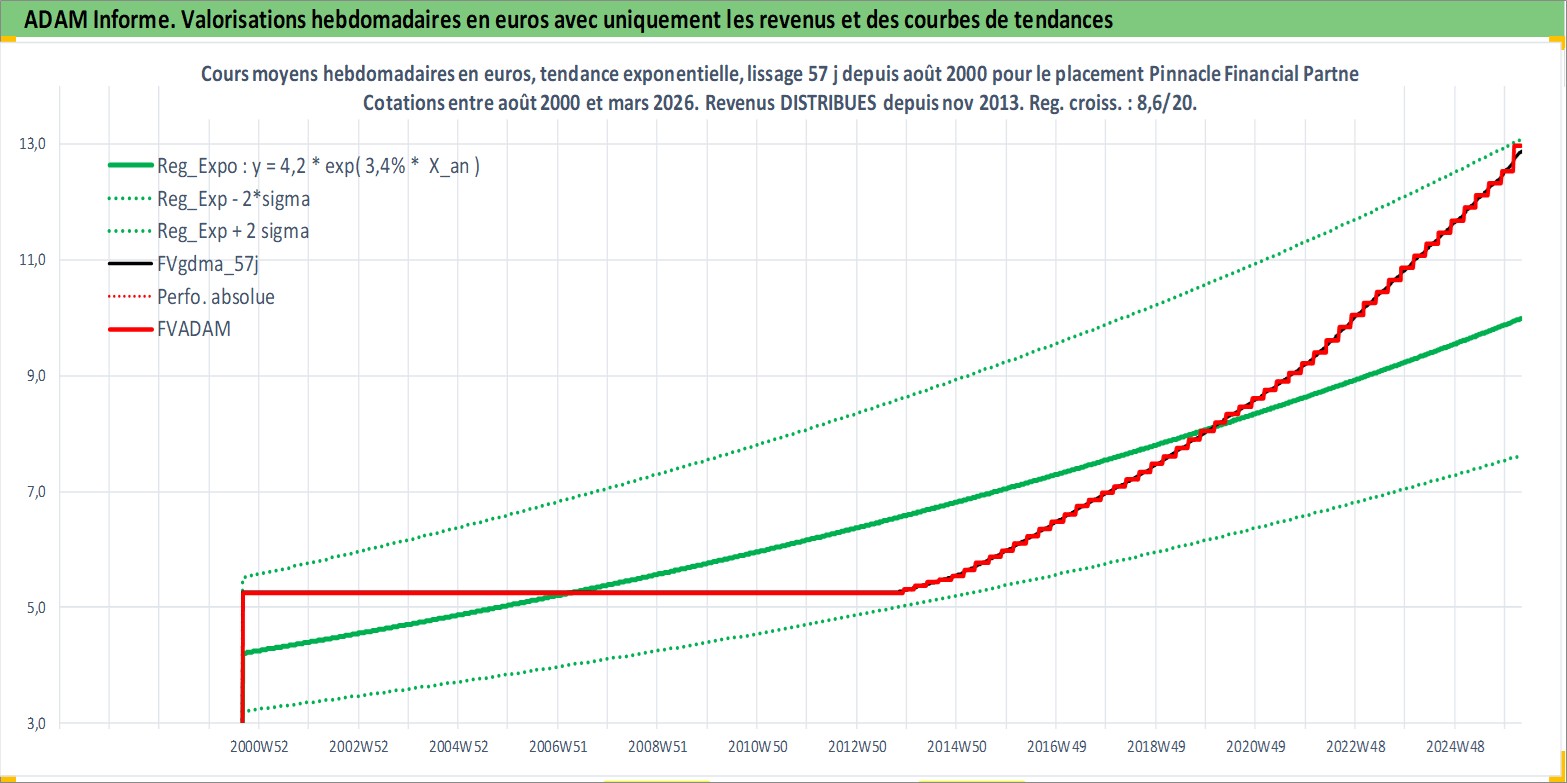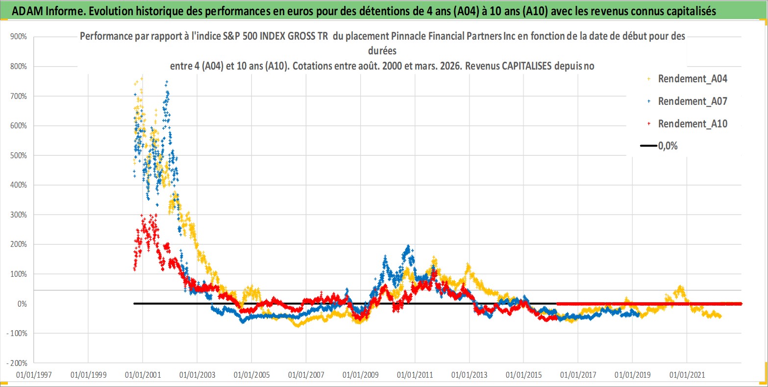 Site dédié aux investisseursPage dédiée sur site financeAnalyse des valorisations hebdomadaires de l'action Pinnacle Financial Partners Inc. Cet actif est cote en USD. Les valorisations sont en contrevaleur EURO et couvrent les semaines 2000W35 a 2026W13. Les revenus de cet actif financier sont pris en compte depuis la semaine 2013W47. La note globale ESG de cet actif est estimee a 15.0 (apres rebasage entre 0 et 20).