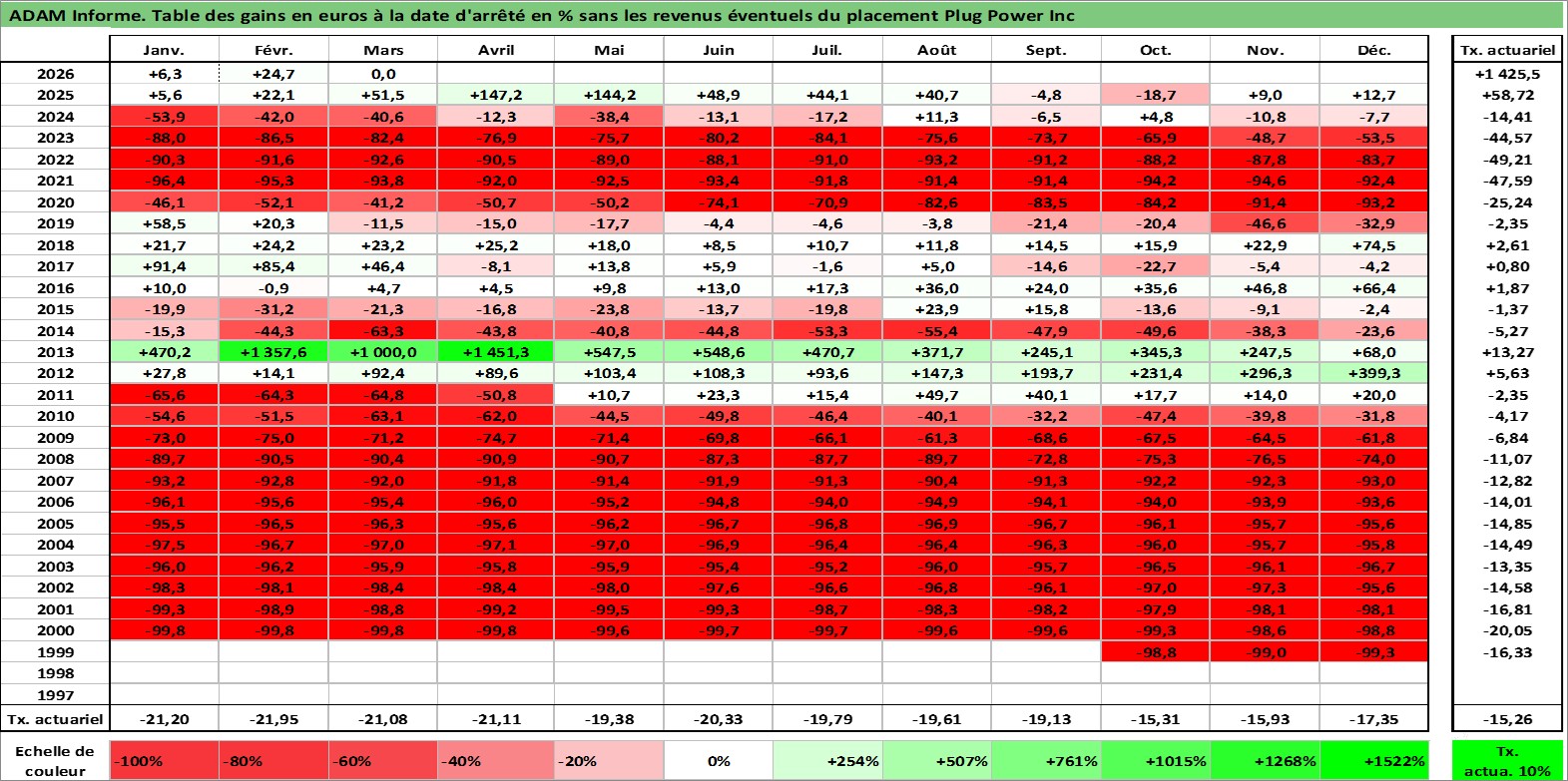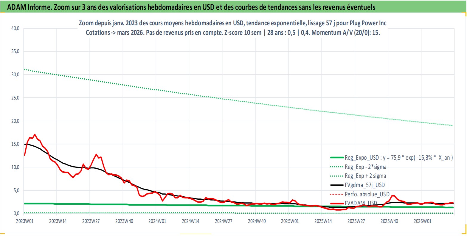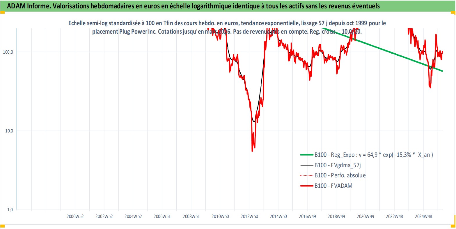 Site dédié aux investisseursPage dédiée sur site financeAnalyse des valorisations hebdomadaires de l'action Plug Power Inc. Cet actif est cote en USD. Les valorisations sont en contrevaleur EURO et couvrent les semaines 1999W43 a 2026W13. Les revenus de cet actif financier ne sont pas connus car non existants ou non disponibles sur le site Yahoo Finance. La note ESG de cet actif n'est pas connue.