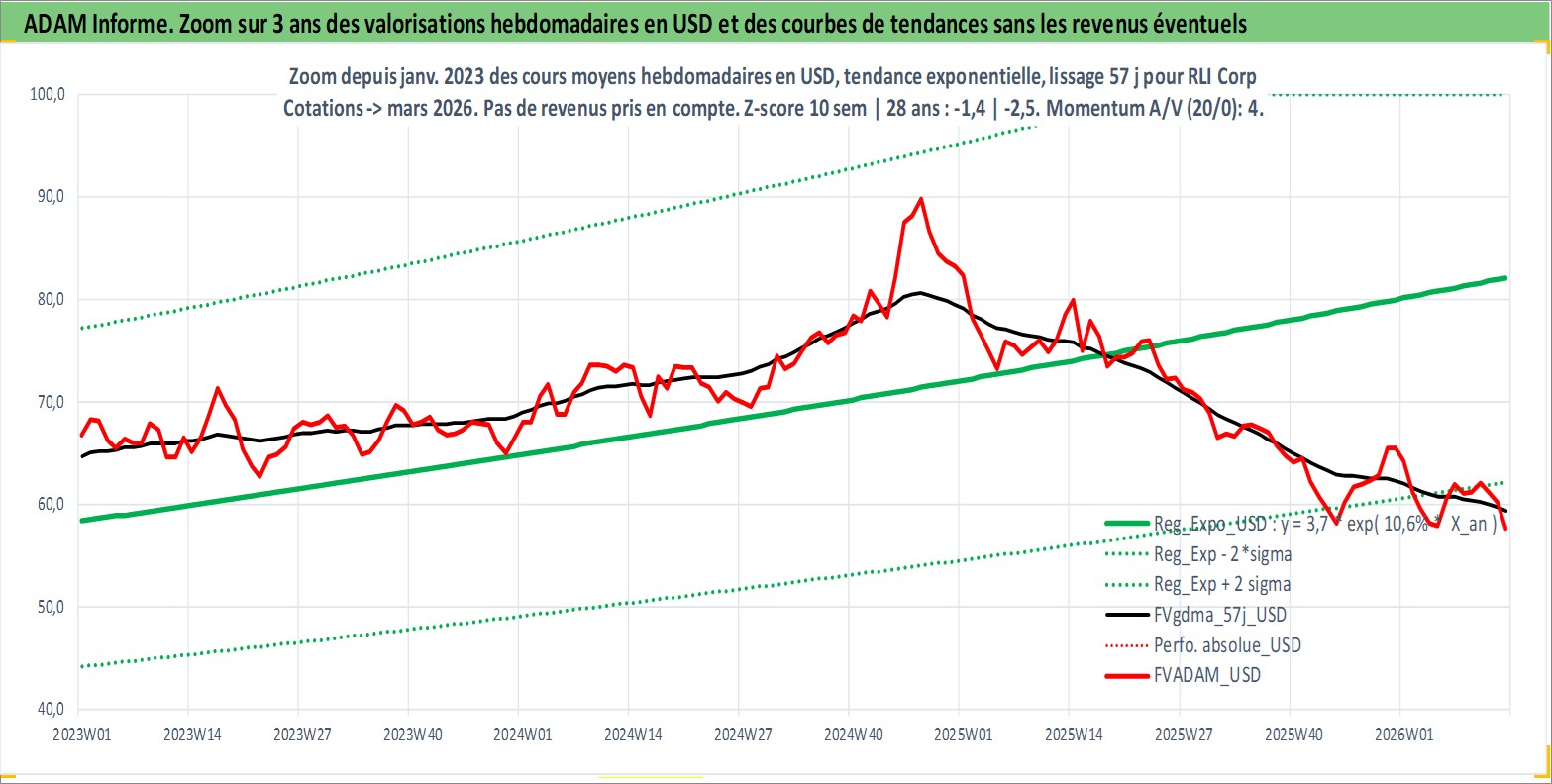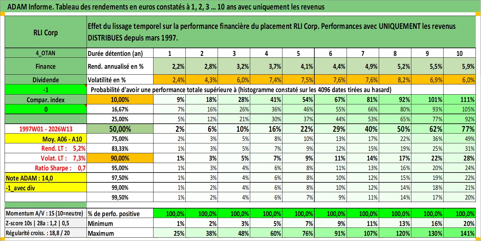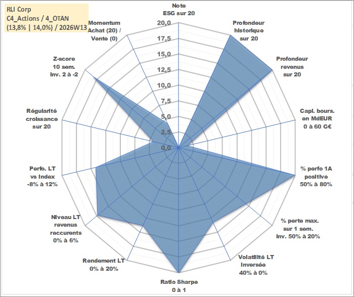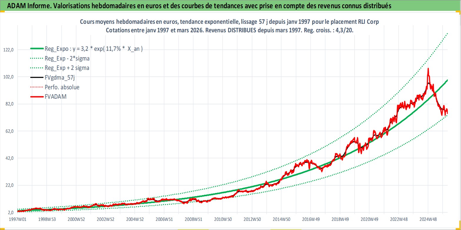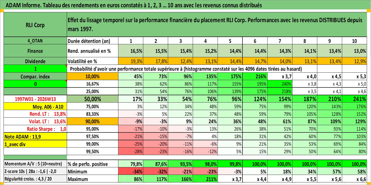 Site dédié aux investisseursPage dédiée sur site financeAnalyse des valorisations hebdomadaires de l'action RLI Corp. Cet actif est cote en USD. Les valorisations sont en contrevaleur EURO et couvrent les semaines 1997W01 a 2026W13. Les revenus de cet actif financier sont pris en compte depuis la semaine 1997W13. La note ESG de cet actif n'est pas connue.