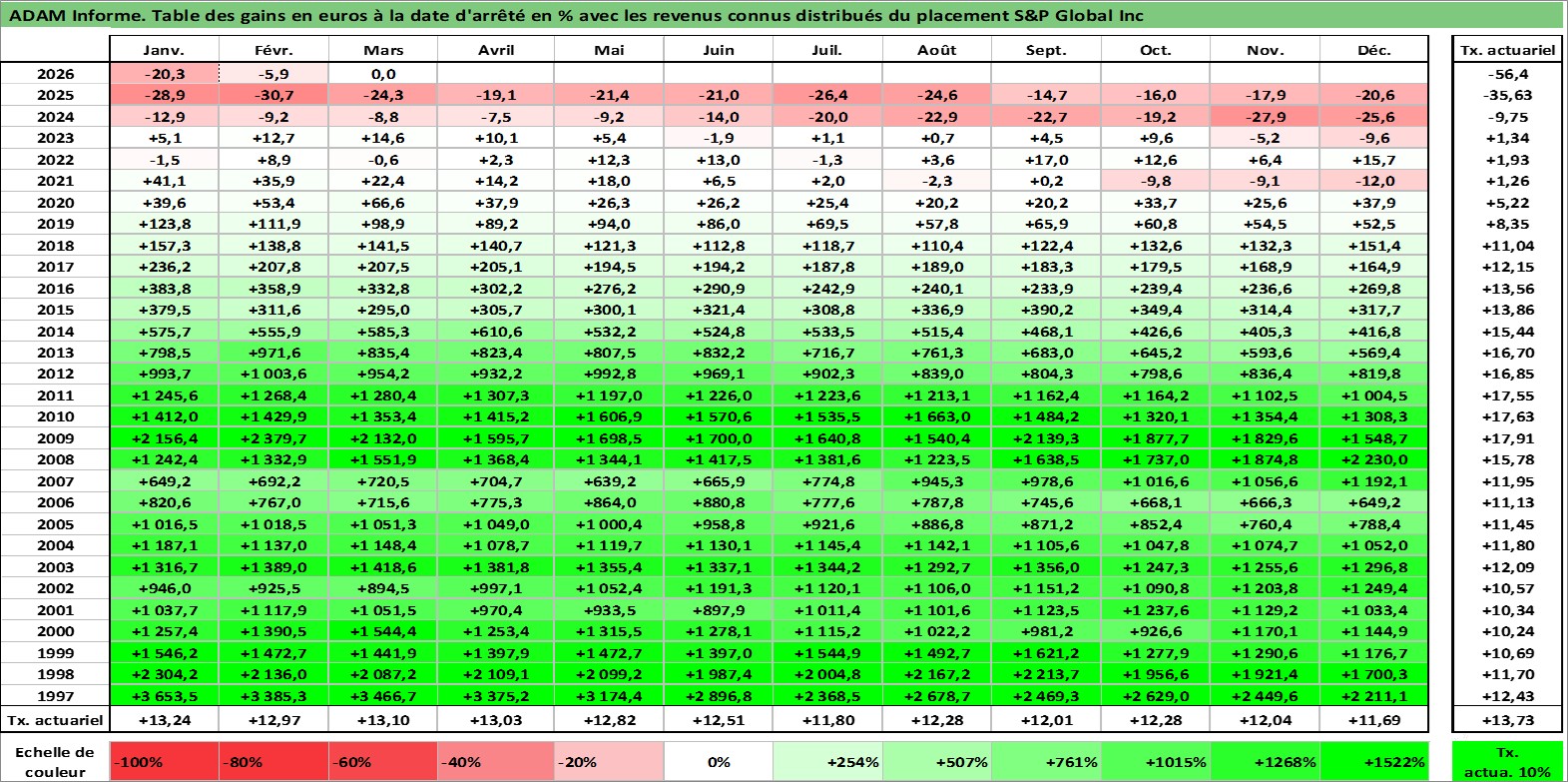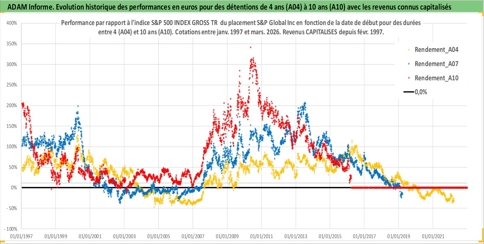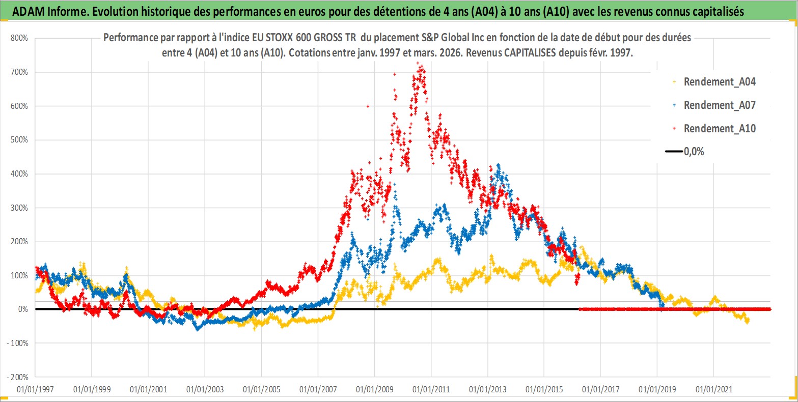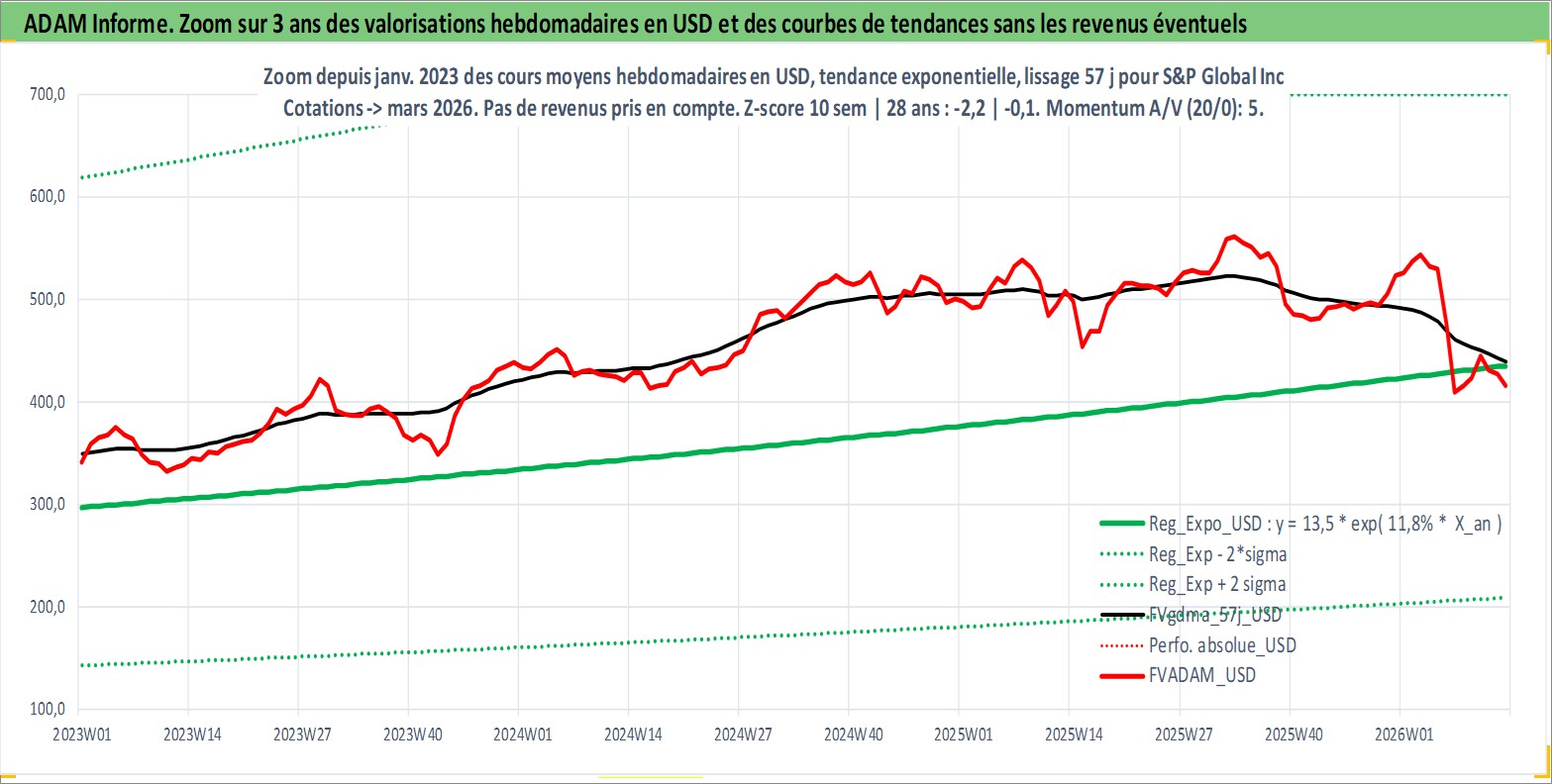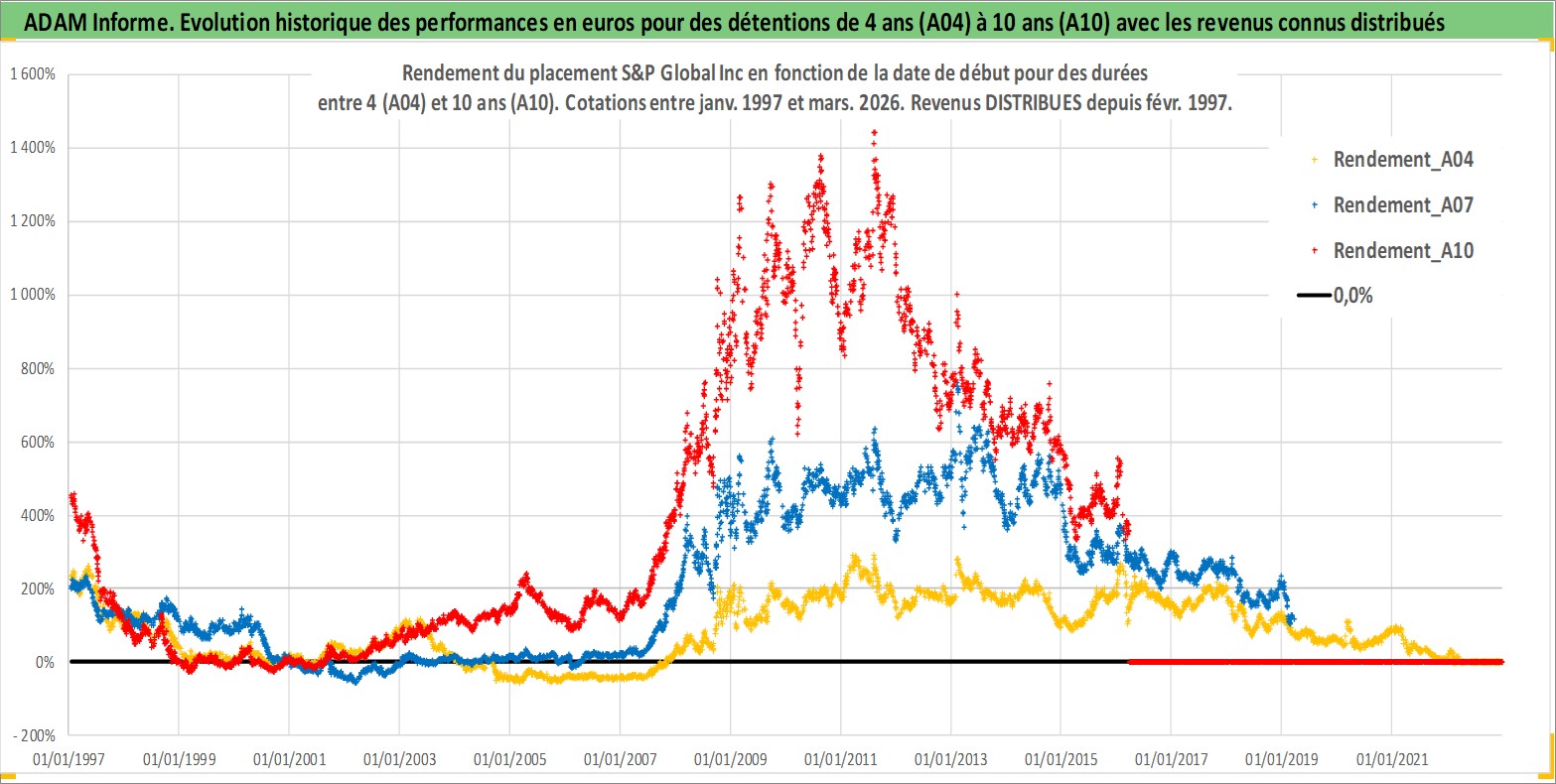 Site dédié aux investisseursPage dédiée sur site financeAnalyse des valorisations hebdomadaires de l'action S&P Global Inc. Cet actif est cote en USD. Les valorisations sont en contrevaleur EURO et couvrent les semaines 1997W01 a 2026W13. Les revenus de cet actif financier sont pris en compte depuis la semaine 1997W09. La note globale ESG de cet actif est estimee a 14.0 (apres rebasage entre 0 et 20).