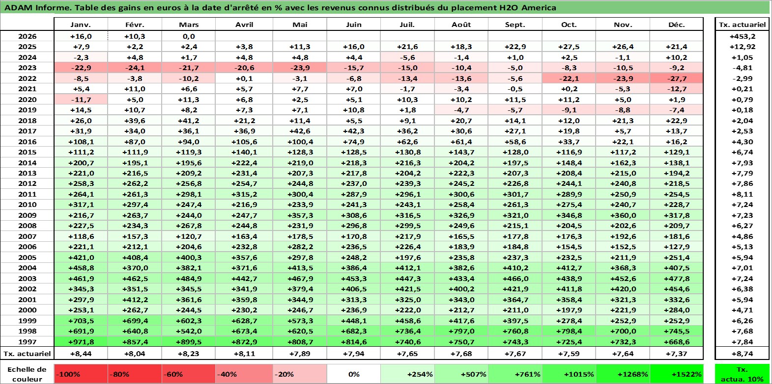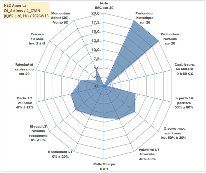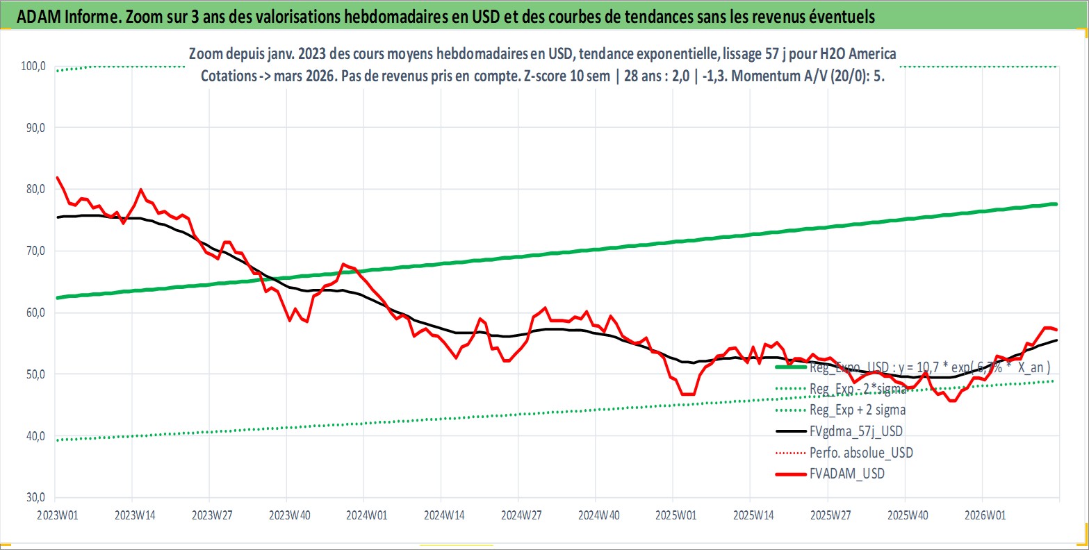 Site dédié aux investisseursPage dédiée sur site financeAnalyse des valorisations hebdomadaires de l'action H2O America. Cet actif est cote en USD. Les valorisations sont en contrevaleur EURO et couvrent les semaines 1997W01 a 2026W13. Les revenus de cet actif financier sont pris en compte depuis la semaine 1997W05. La note ESG de cet actif n'est pas connue.
