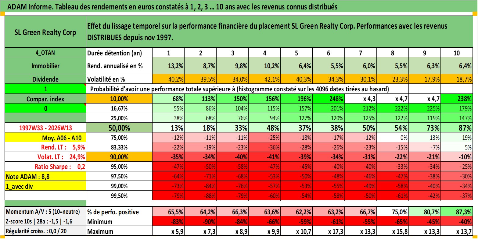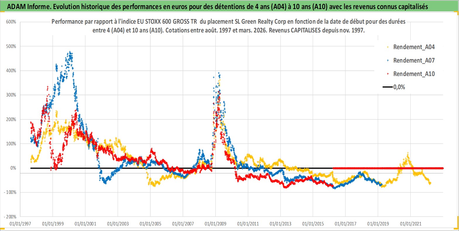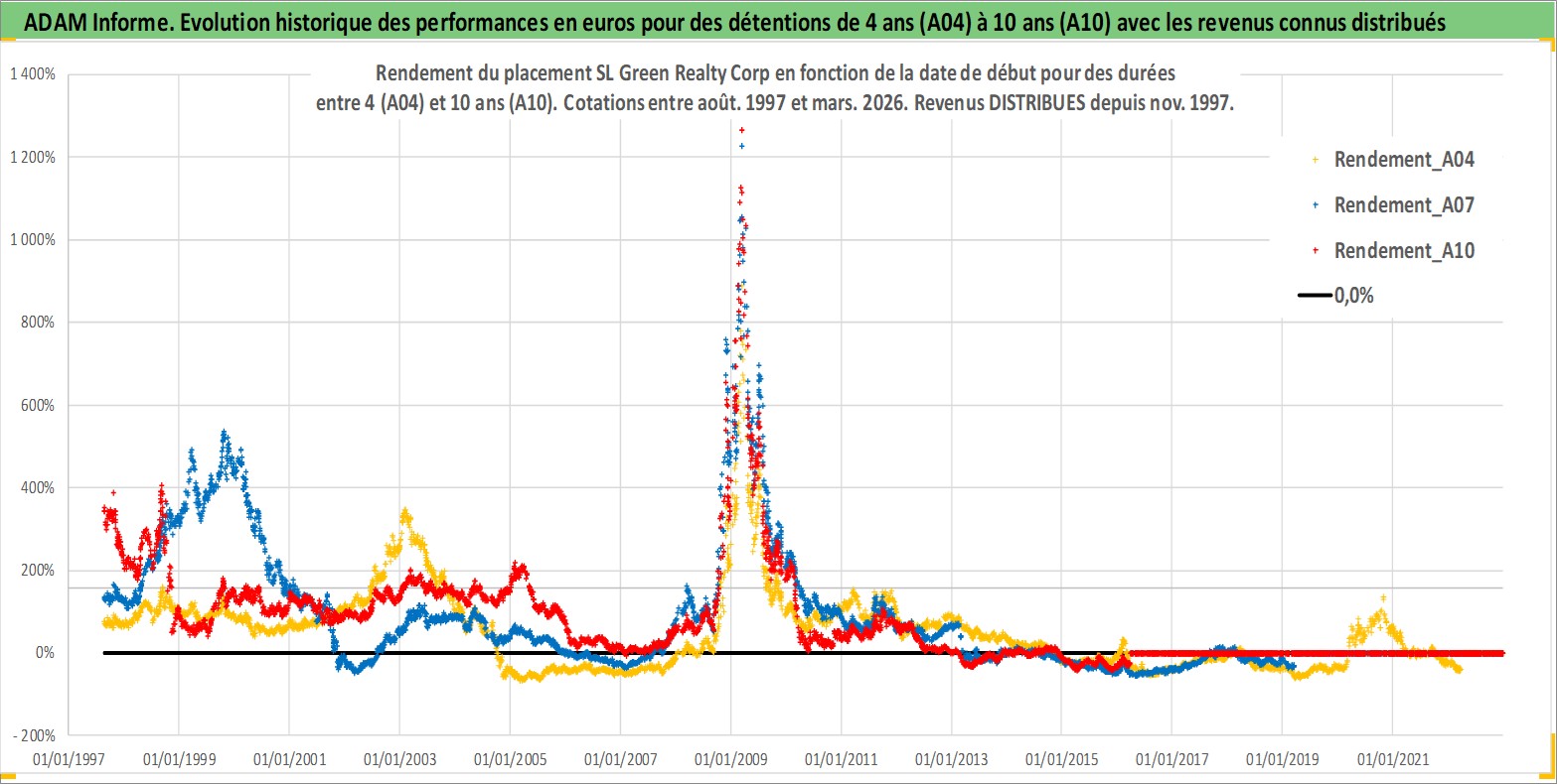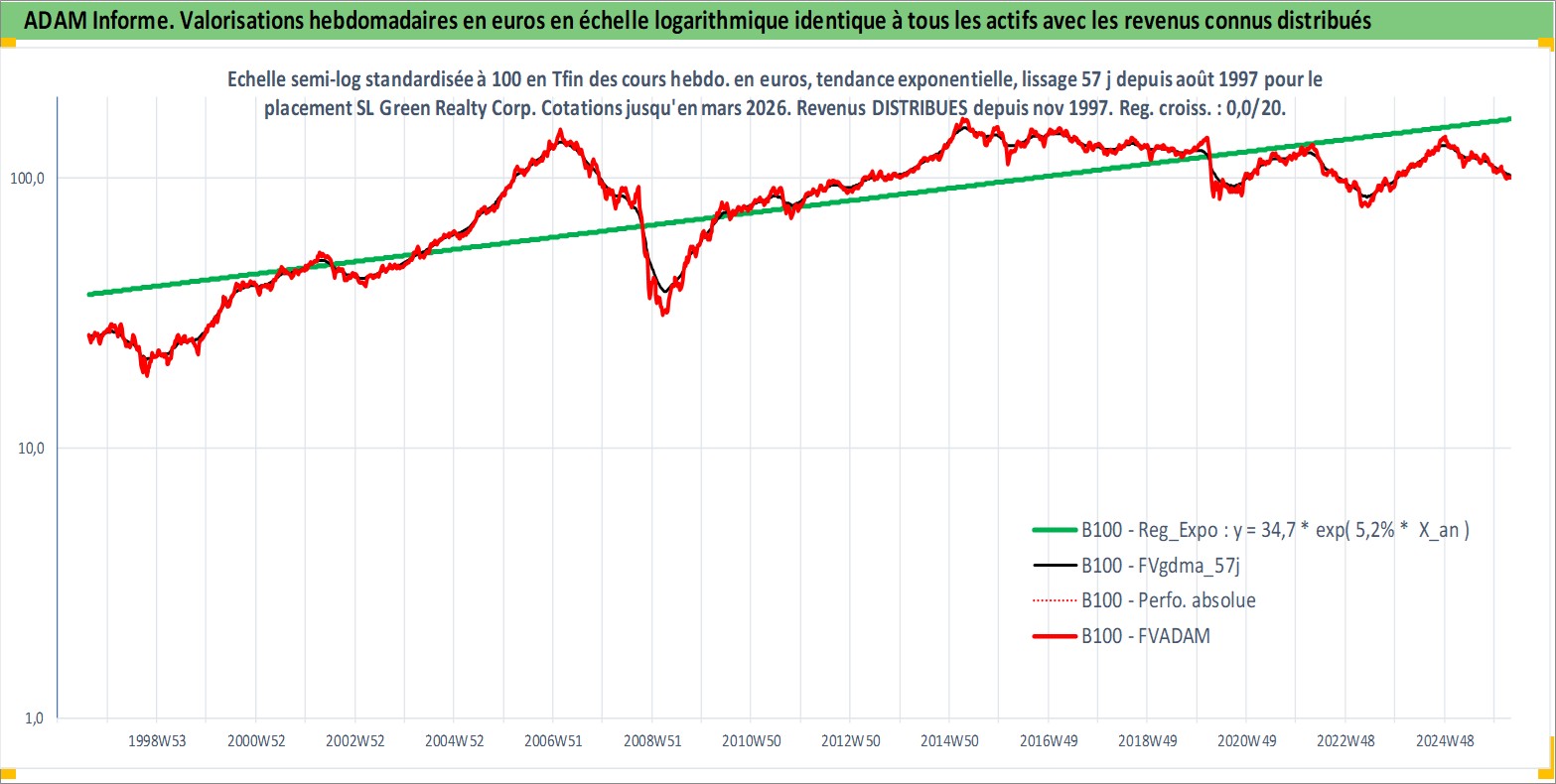 Site dédié aux investisseursPage dédiée sur site financeAnalyse des valorisations hebdomadaires de l'action SL Green Realty Corp. Cet actif est cote en USD. Les valorisations sont en contrevaleur EURO et couvrent les semaines 1997W33 a 2026W13. Les revenus de cet actif financier sont pris en compte depuis la semaine 1997W46. La note globale ESG de cet actif est estimee a 15.0 (apres rebasage entre 0 et 20).
