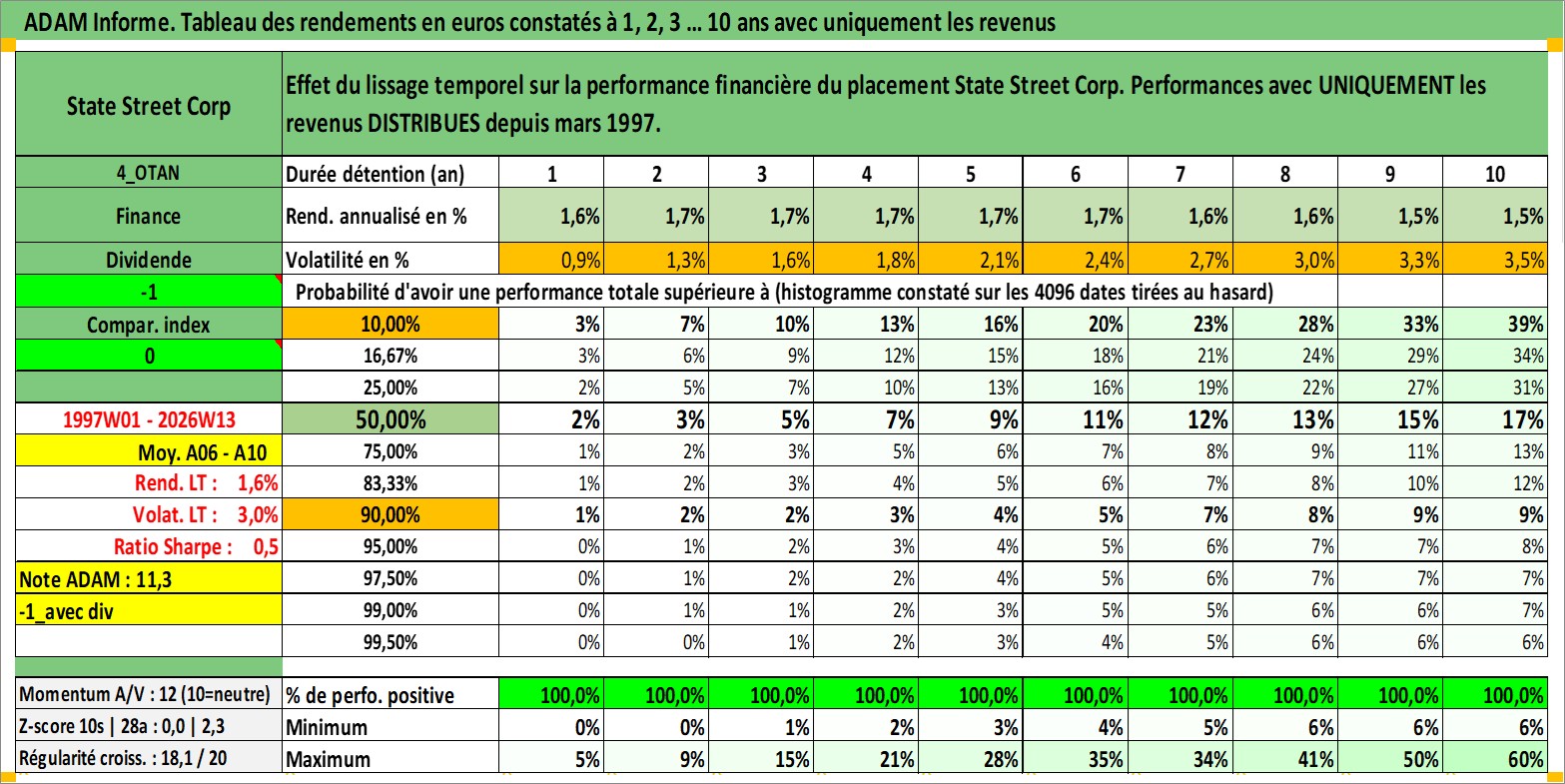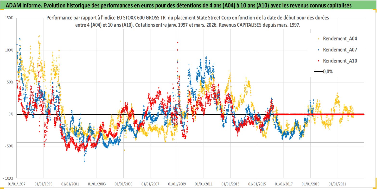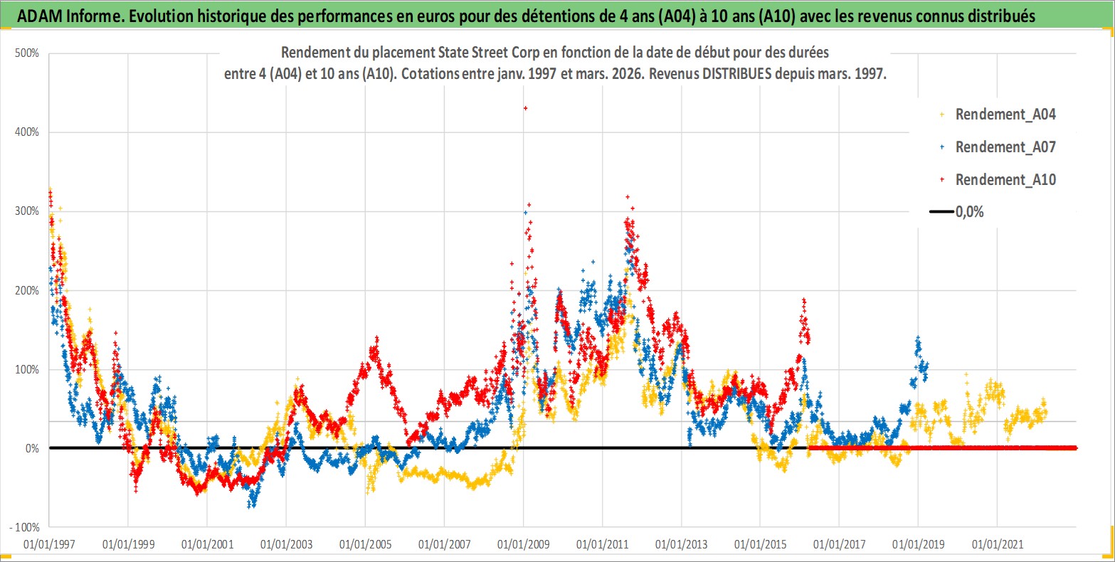 Site dédié aux investisseursPage dédiée sur site financeAnalyse des valorisations hebdomadaires de l'action State Street Corp. Cet actif est cote en USD. Les valorisations sont en contrevaleur EURO et couvrent les semaines 1997W01 a 2026W13. Les revenus de cet actif financier sont pris en compte depuis la semaine 1997W13. La note globale ESG de cet actif est estimee a 9.0 (apres rebasage entre 0 et 20).