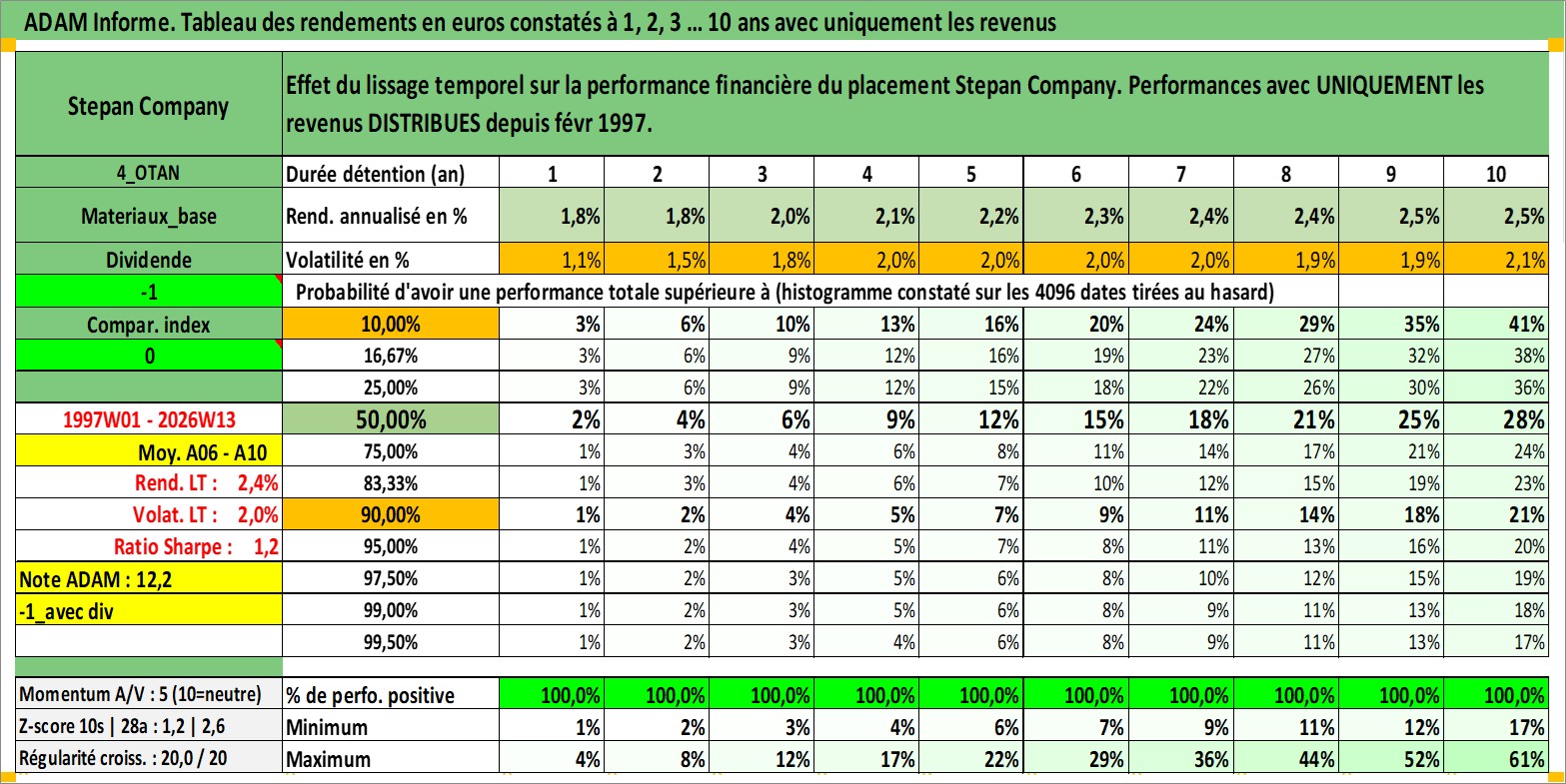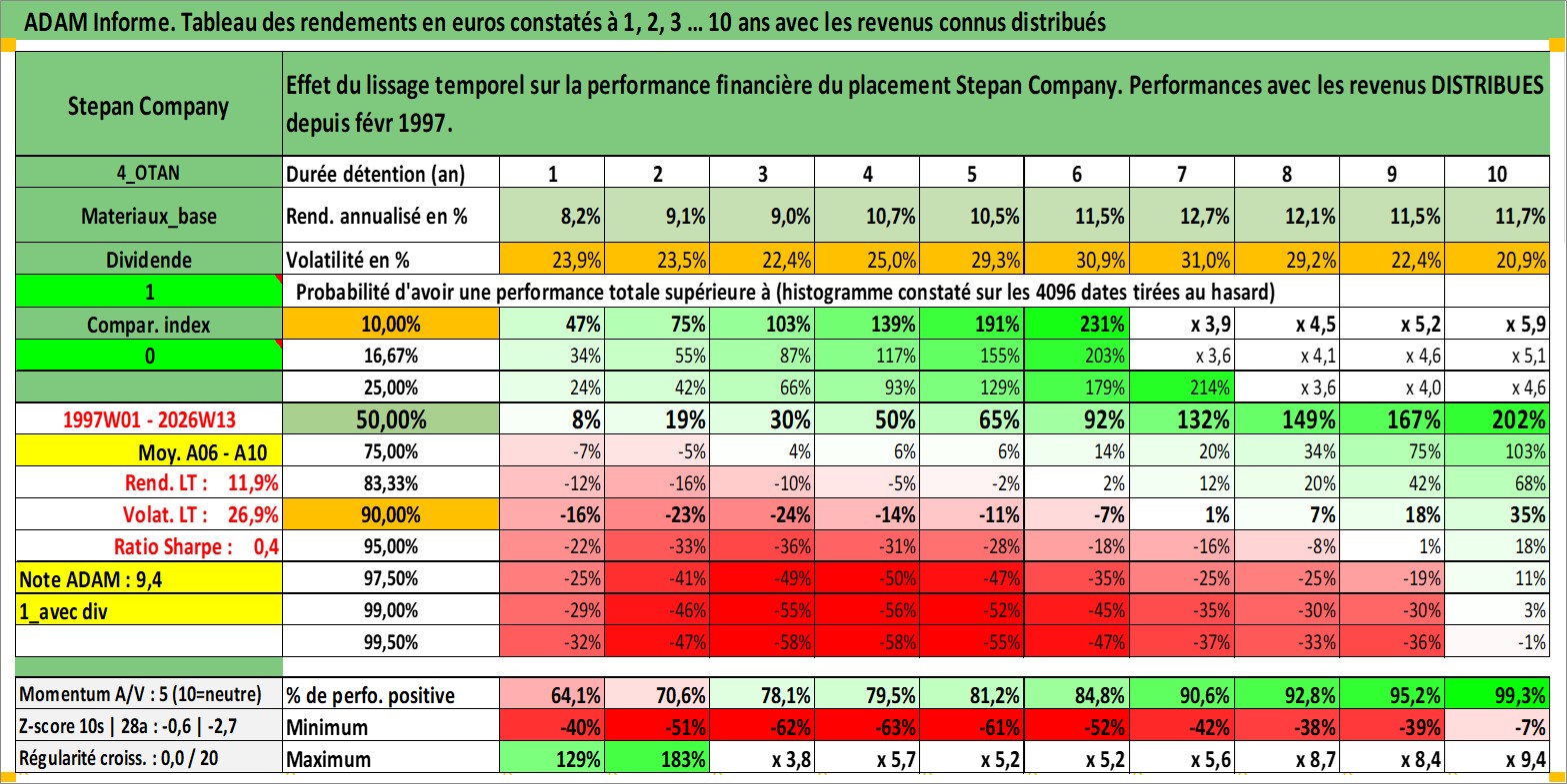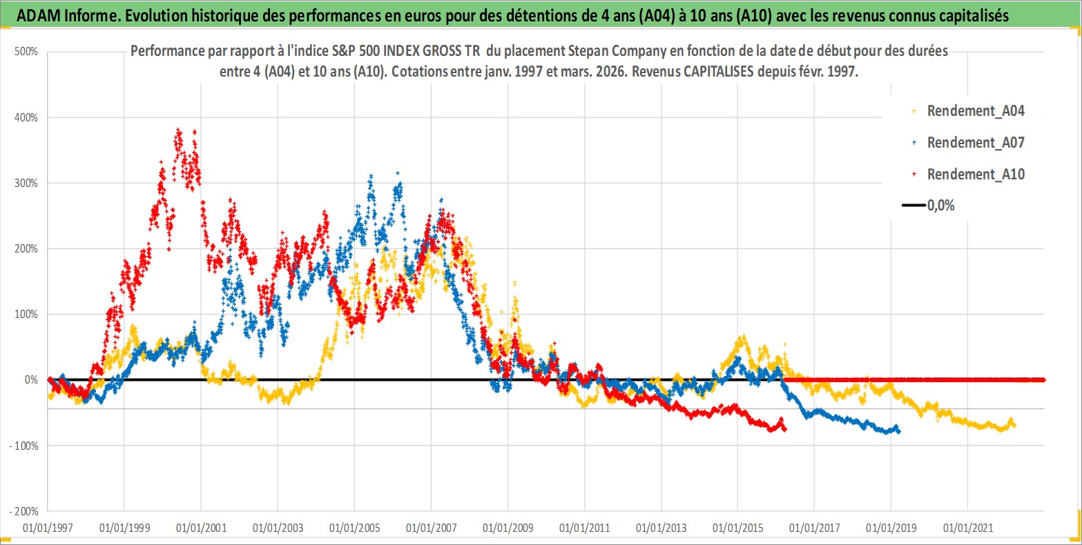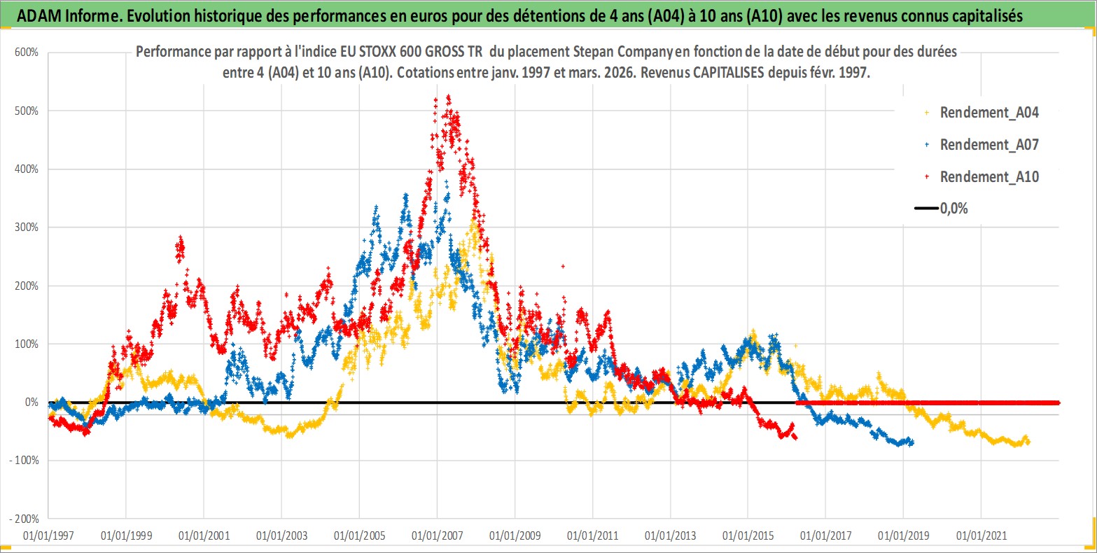 Site dédié aux investisseursPage dédiée sur site financeAnalyse des valorisations hebdomadaires de l'action Stepan Company. Cet actif est cote en USD. Les valorisations sont en contrevaleur EURO et couvrent les semaines 1997W01 a 2026W13. Les revenus de cet actif financier sont pris en compte depuis la semaine 1997W09. La note ESG de cet actif n'est pas connue.