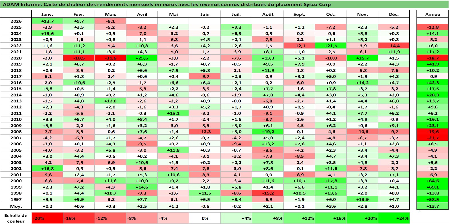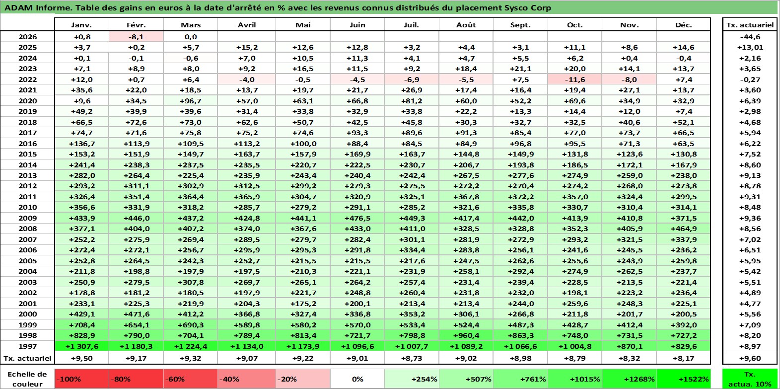 Dernière perfo 1 an en %