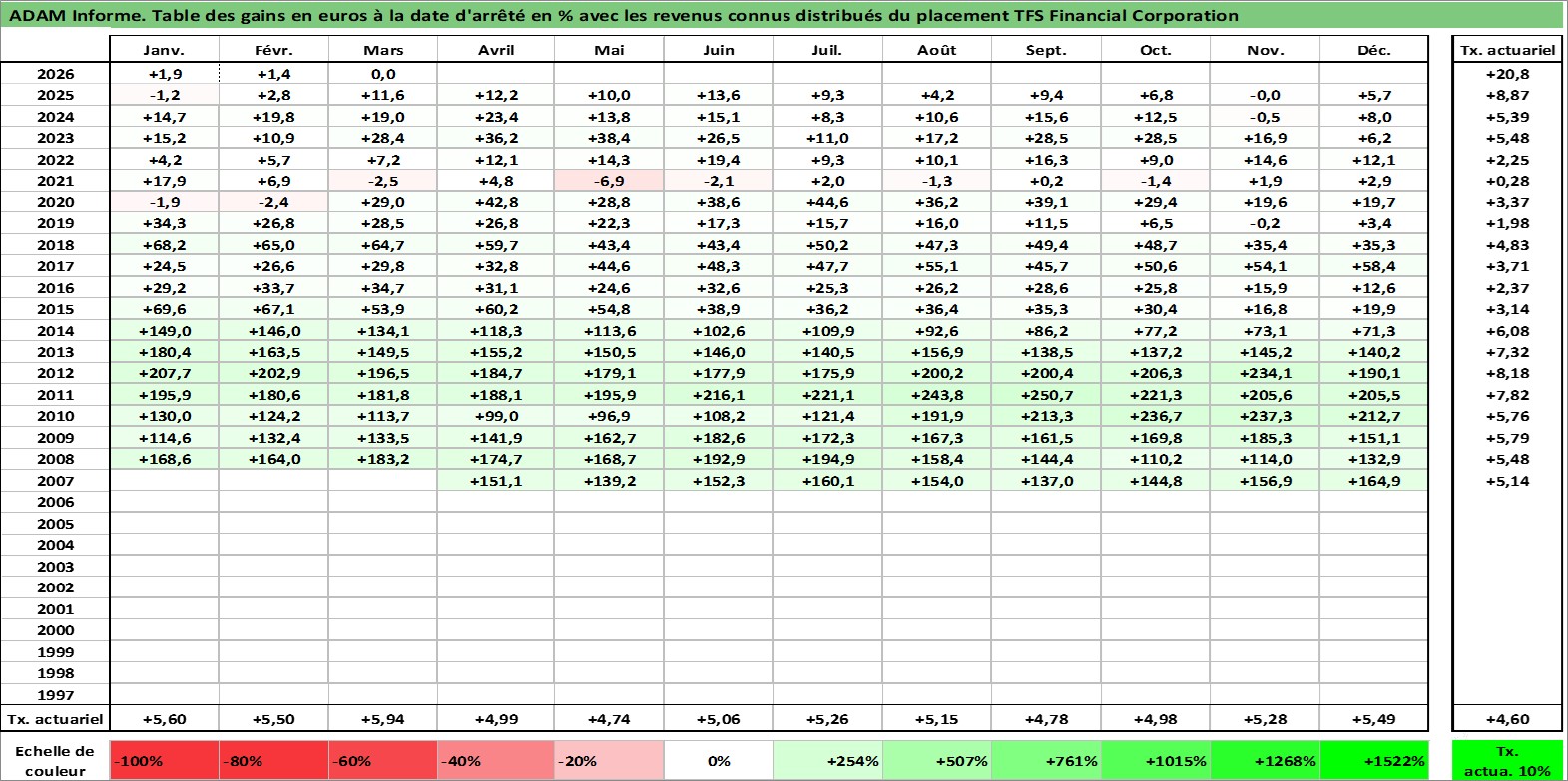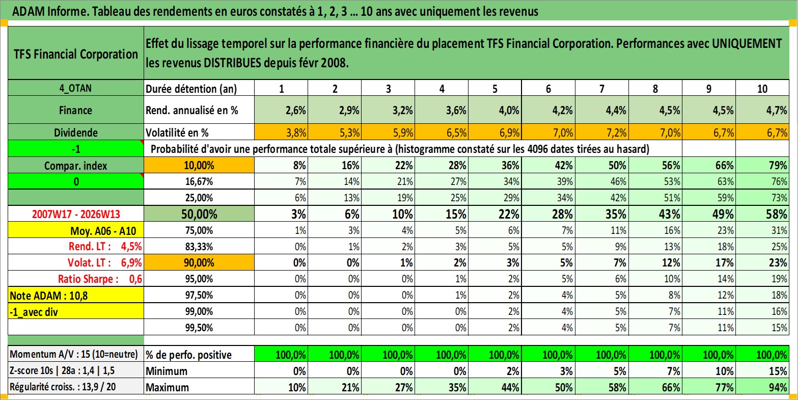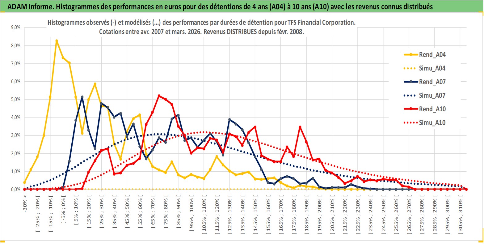 Site dédié aux investisseursPage dédiée sur site financeAnalyse des valorisations hebdomadaires de l'action TFS Financial Corporation. Cet actif est cote en USD. Les valorisations sont en contrevaleur EURO et couvrent les semaines 2007W17 a 2026W13. Les revenus de cet actif financier sont pris en compte depuis la semaine 2008W08. La note ESG de cet actif n'est pas connue.