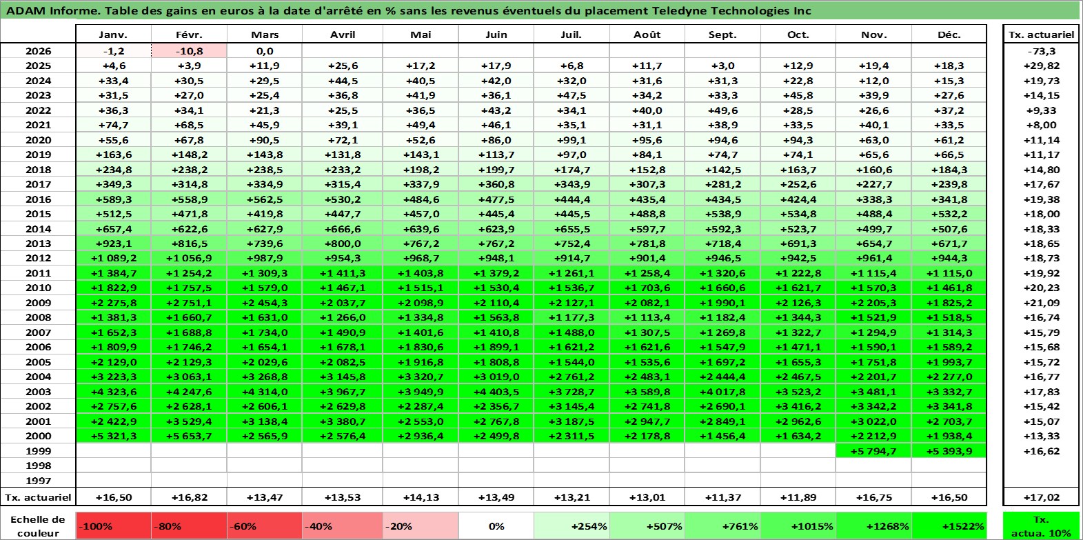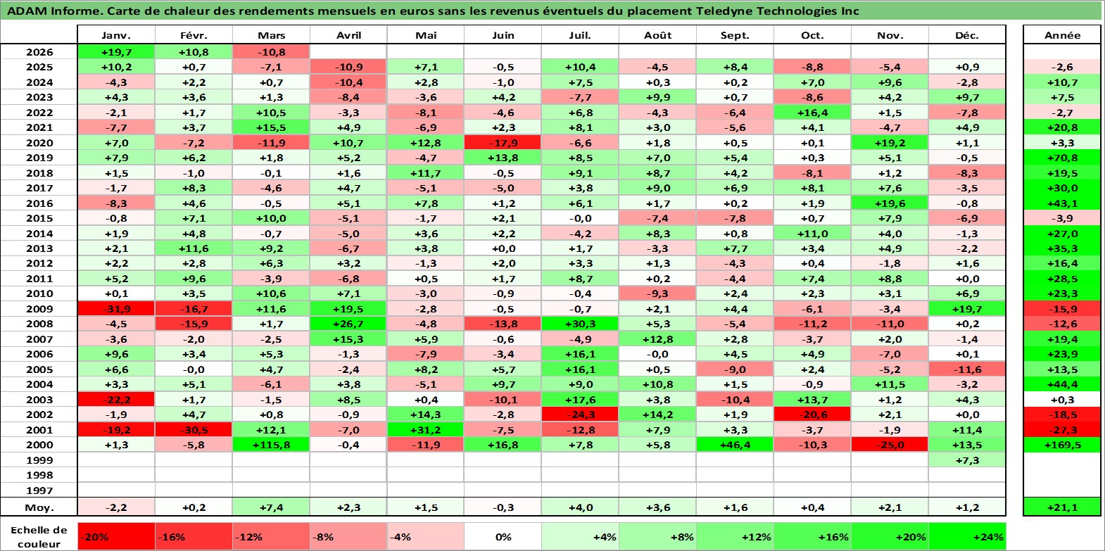 Site dédié aux investisseursPage dédiée sur site financeAnalyse des valorisations hebdomadaires de l'action Teledyne Technologies Inc. Cet actif est cote en USD. Les valorisations sont en contrevaleur EURO et couvrent les semaines 1999W47 a 2026W13. Les revenus de cet actif financier ne sont pas connus car non existants ou non disponibles sur le site Yahoo Finance. La note ESG de cet actif n'est pas connue.