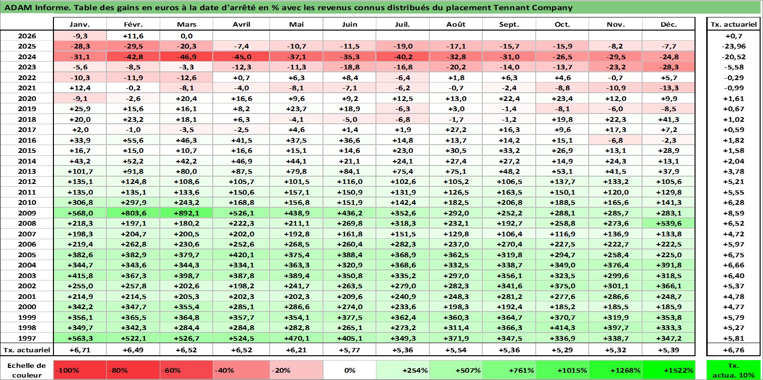 Dernière perfo 10 ans en %