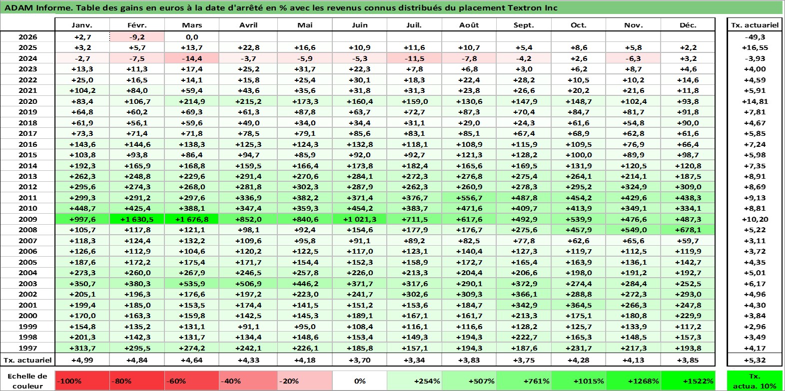 Dernière perfo 10 ans en %