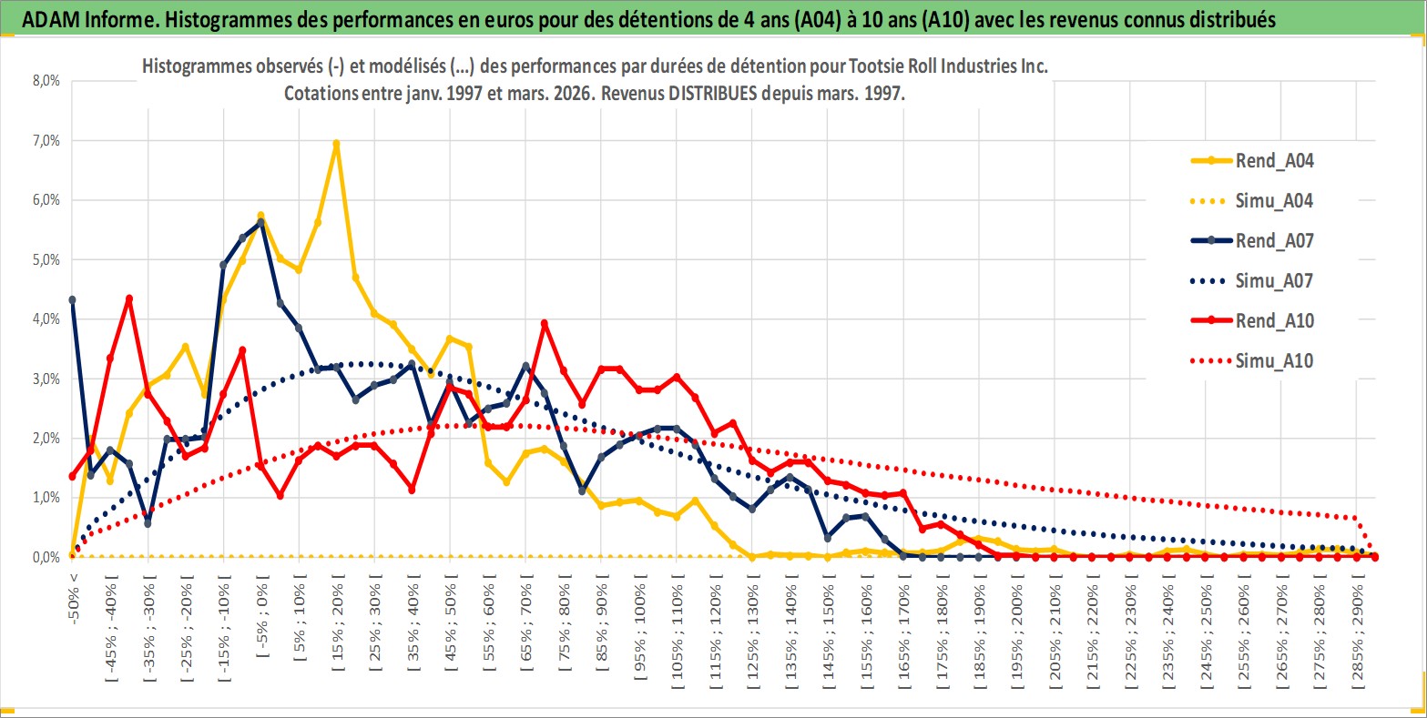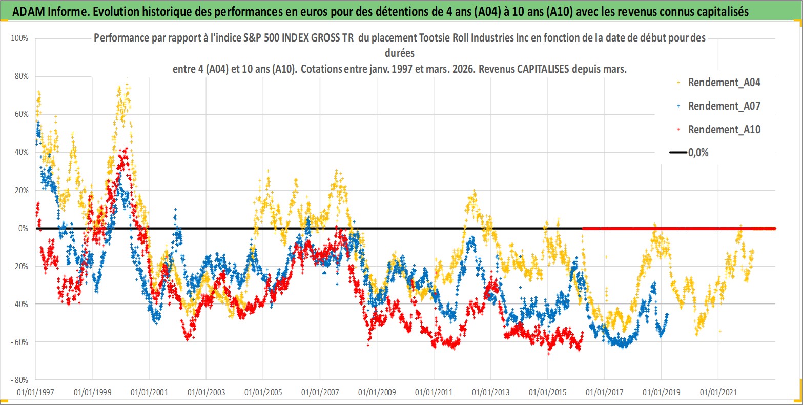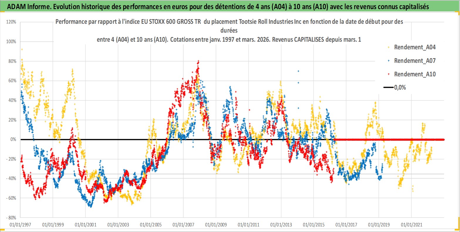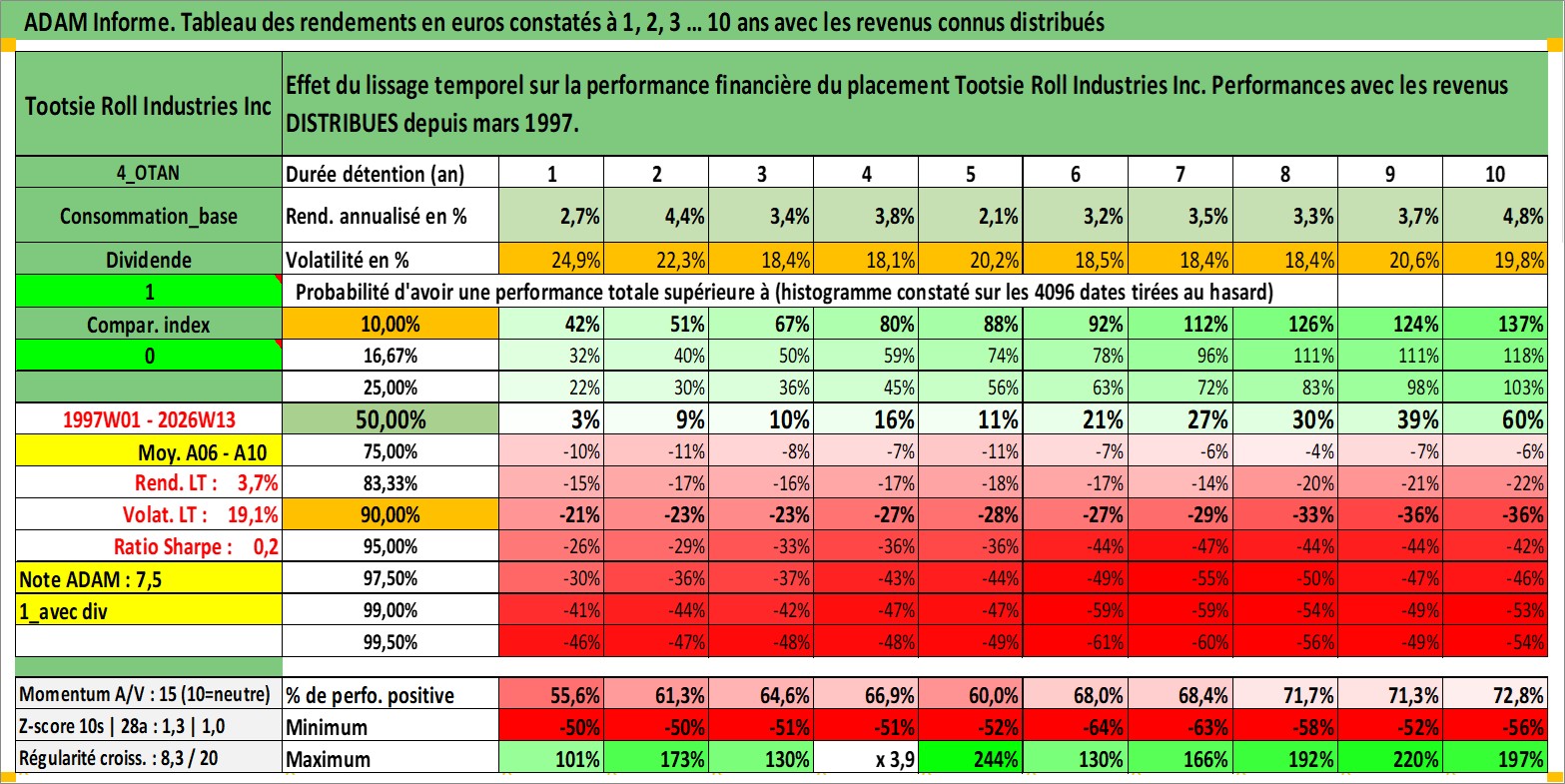 Site dédié aux investisseursPage dédiée sur site financeAnalyse des valorisations hebdomadaires de l'action Tootsie Roll Industries Inc. Cet actif est cote en USD. Les valorisations sont en contrevaleur EURO et couvrent les semaines 1997W01 a 2026W13. Les revenus de cet actif financier sont pris en compte depuis la semaine 1997W10. La note ESG de cet actif n'est pas connue.