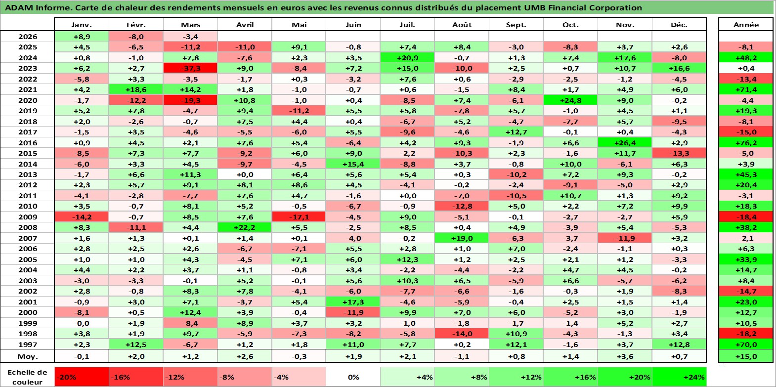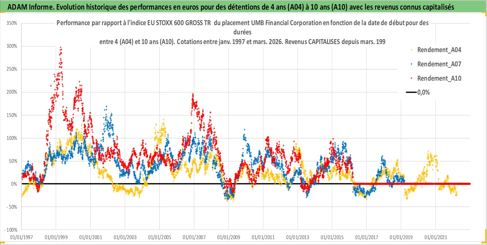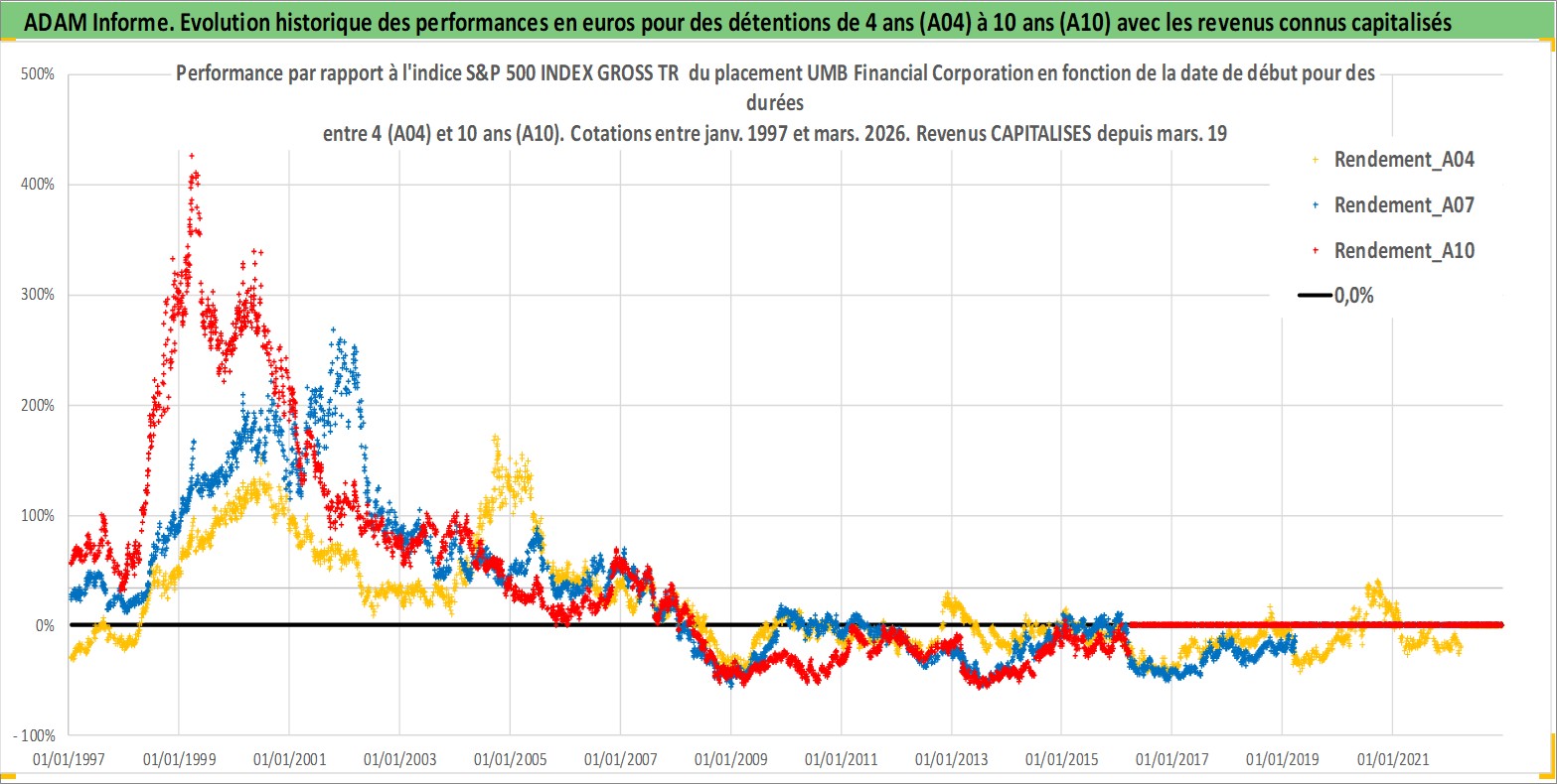 Site dédié aux investisseursPage dédiée sur site financeAnalyse des valorisations hebdomadaires de l'action UMB Financial Corporation. Cet actif est cote en USD. Les valorisations sont en contrevaleur EURO et couvrent les semaines 1997W01 a 2026W13. Les revenus de cet actif financier sont pris en compte depuis la semaine 1997W11. La note ESG de cet actif n'est pas connue.